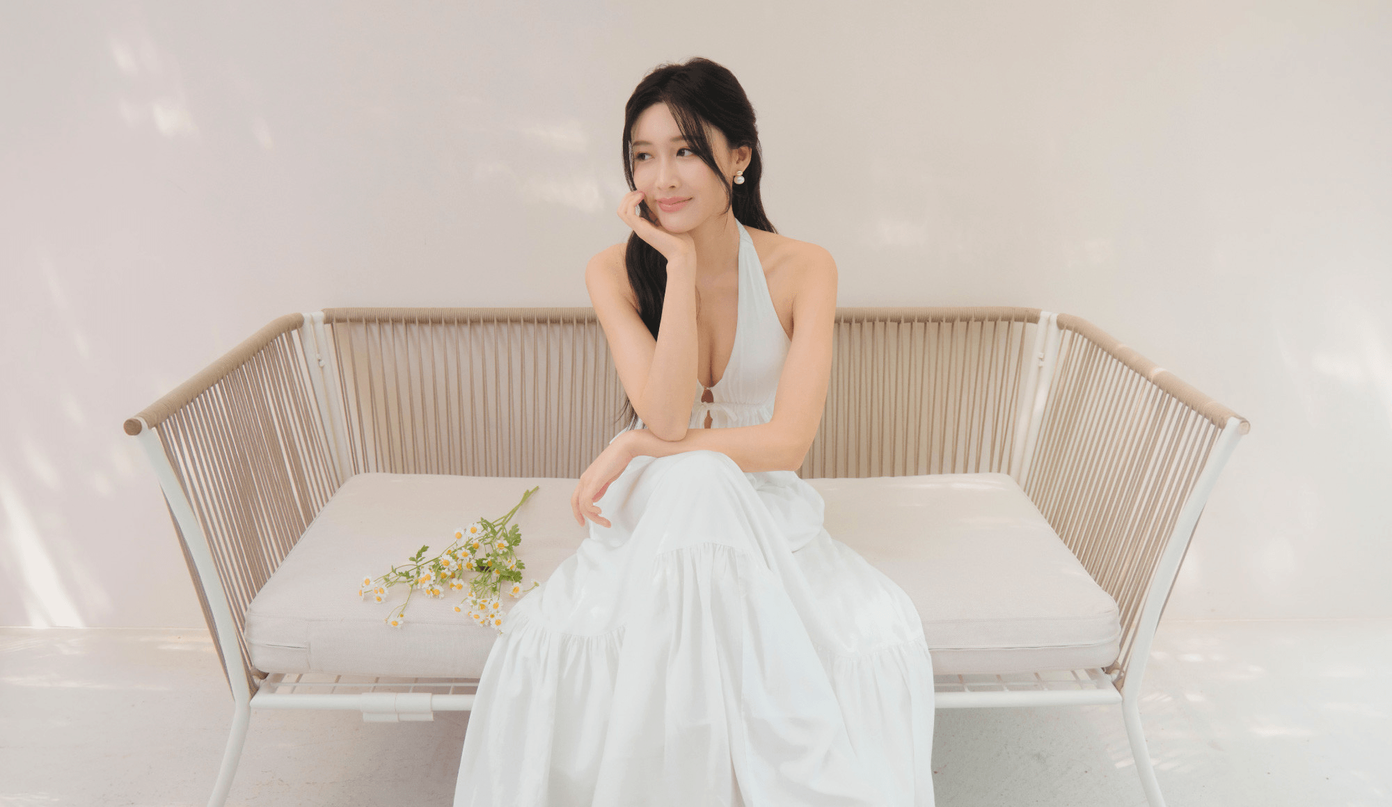 方領綁帶假兩件Bra Dress-奶白