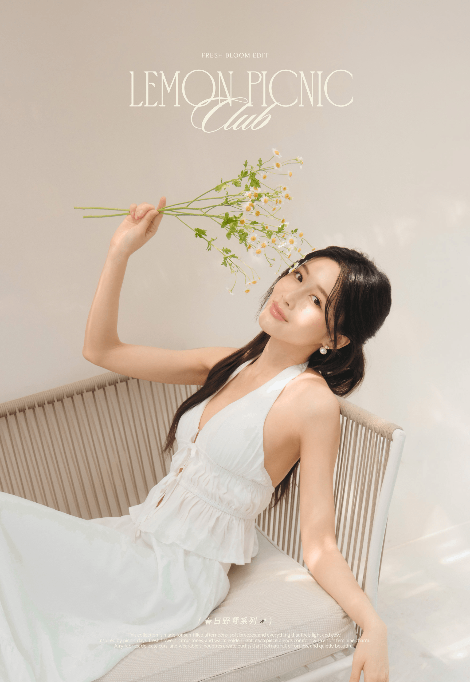 法式碎花假兩件Bra Top-奶黃