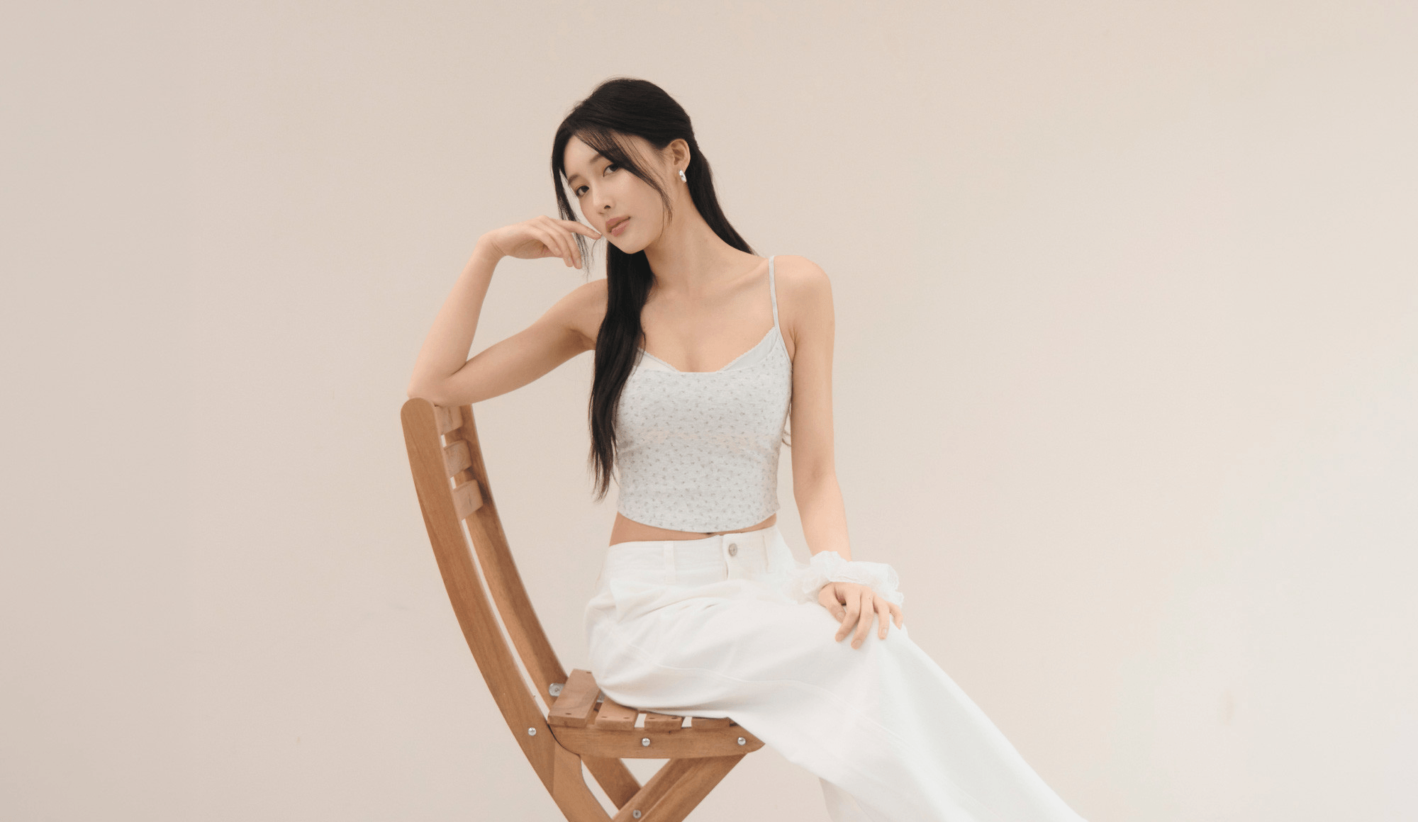 法式削肩抽皺Bra Top-奶白