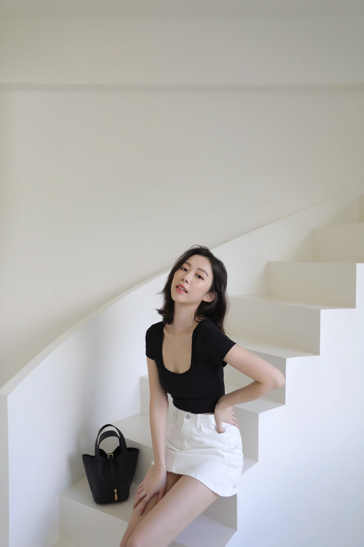 Sabrina 161cm/45kg 肩寬37.5cm 腰全圍62cm 臀全圍86cm 70B 著XS