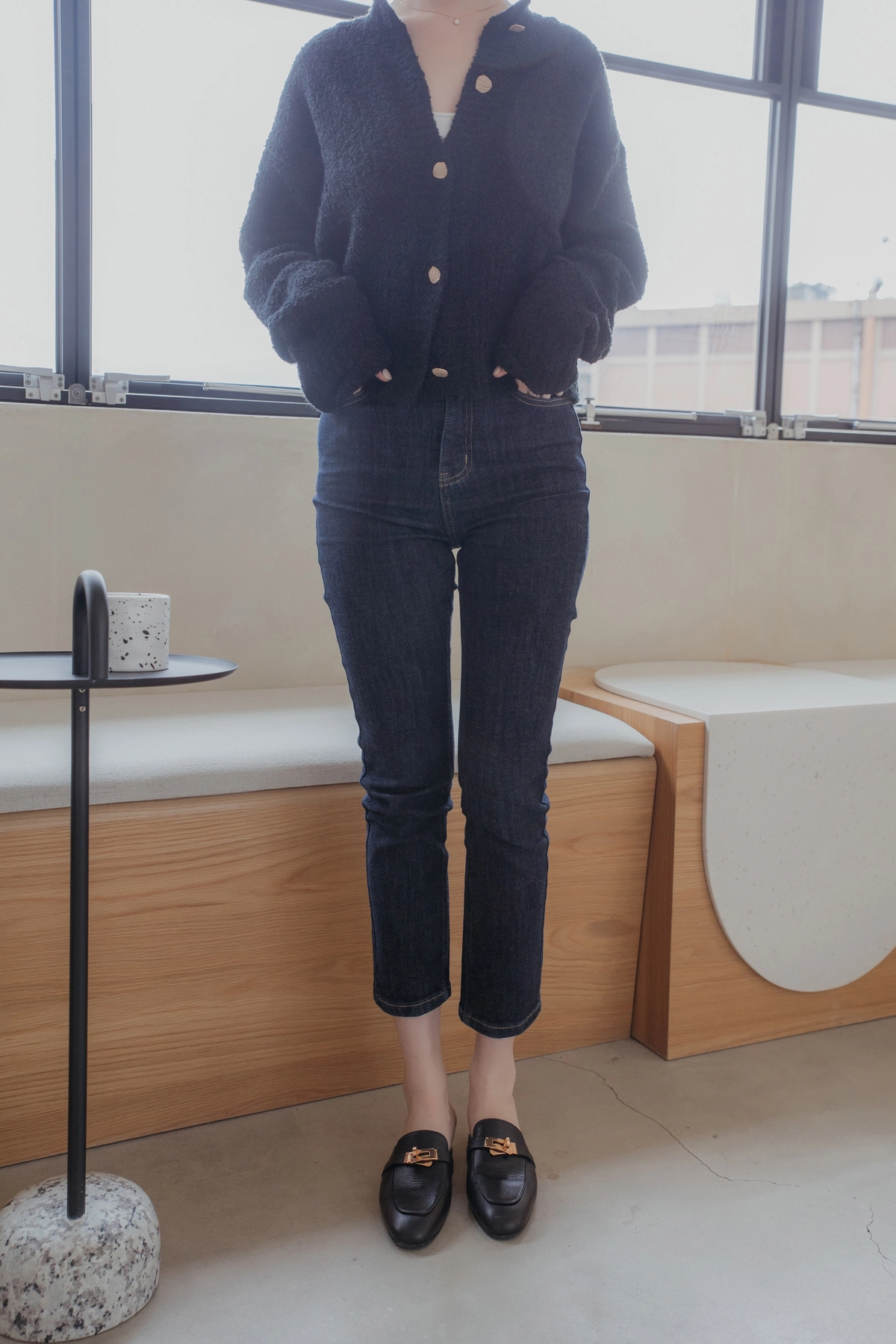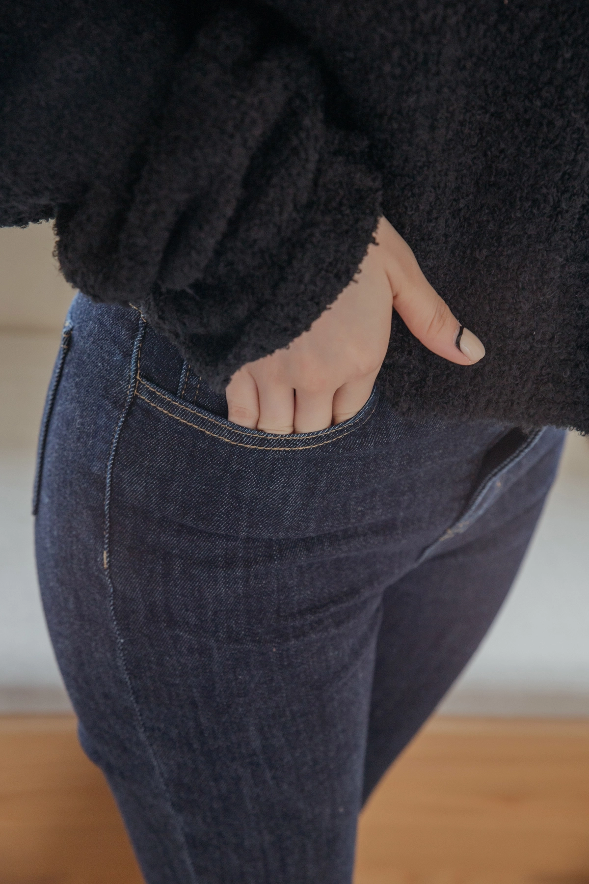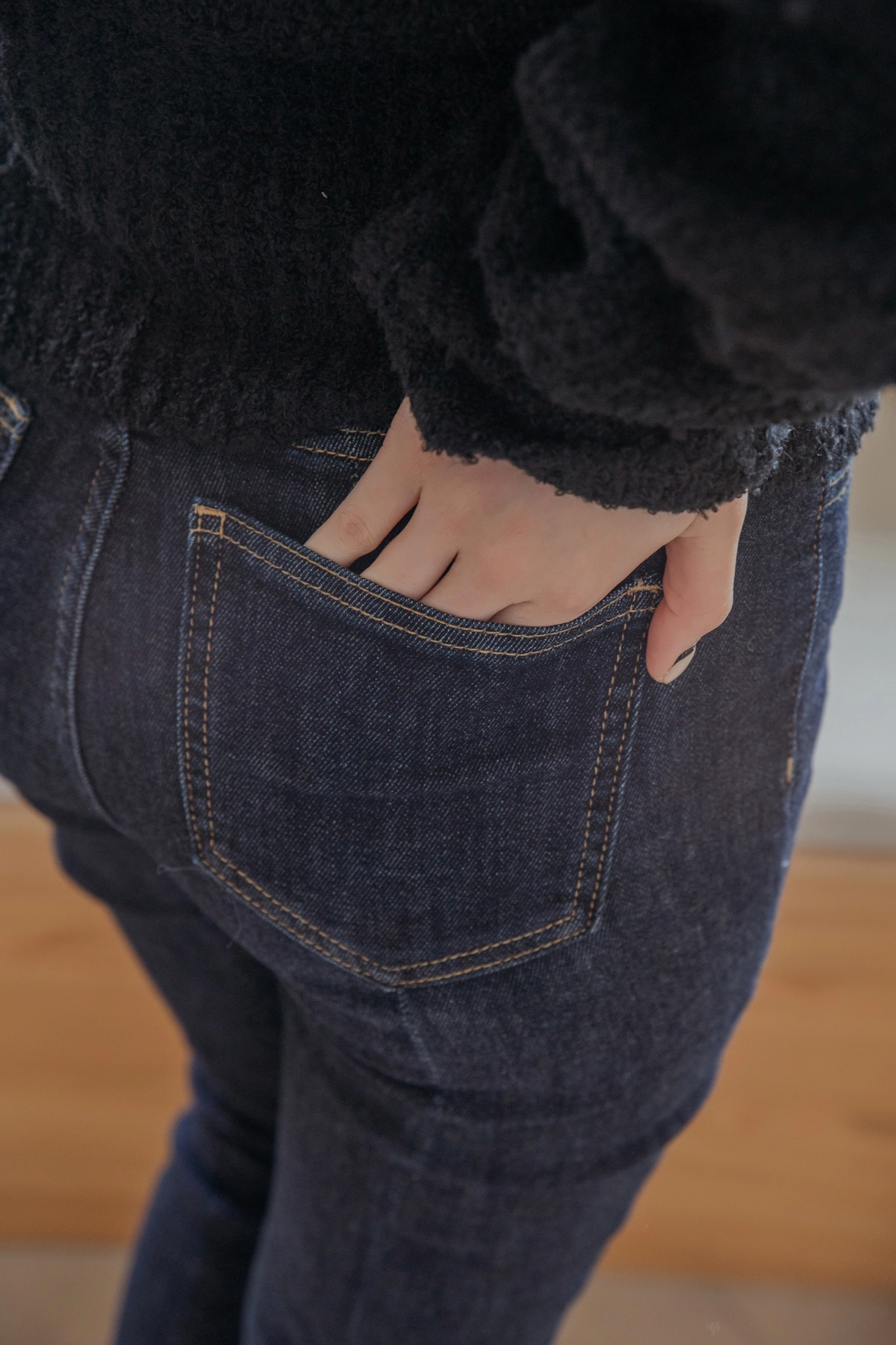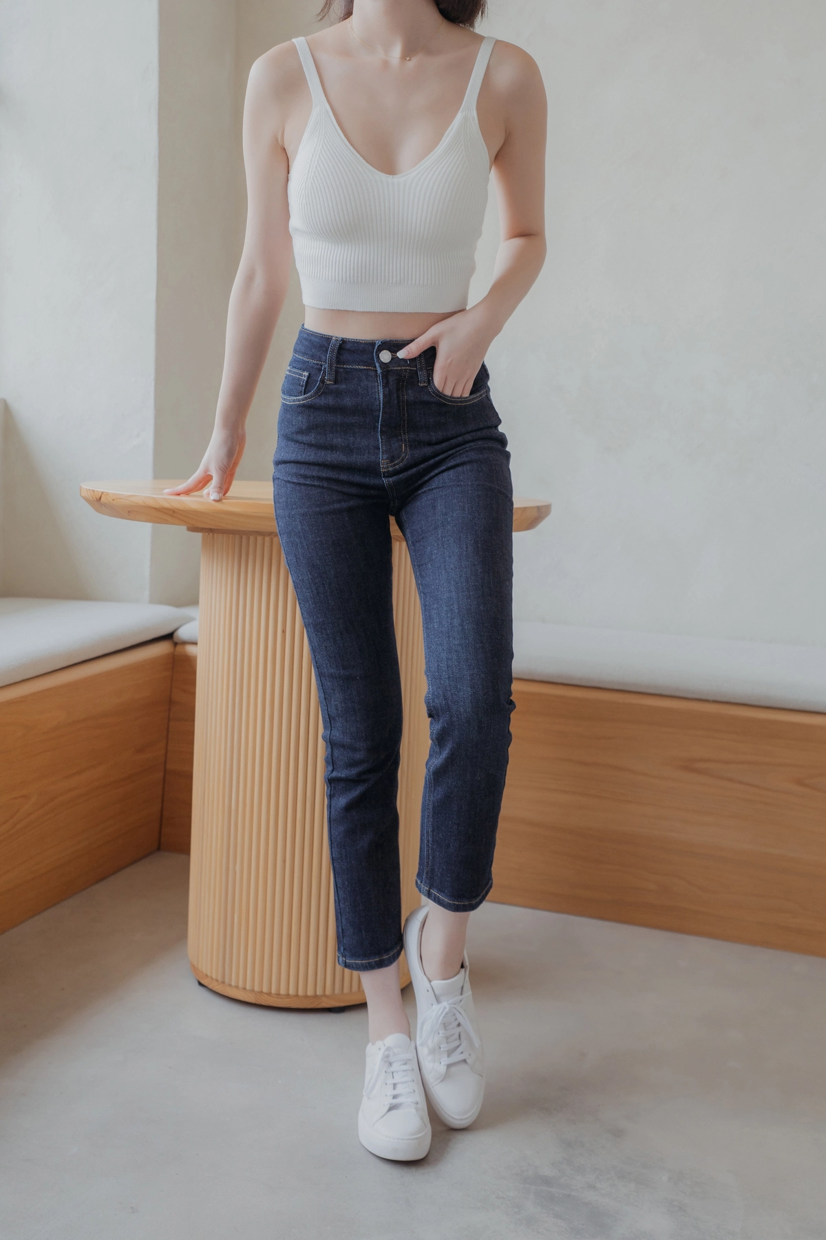 Beigy自訂款-設計感後開衩九分牛仔褲-深藍