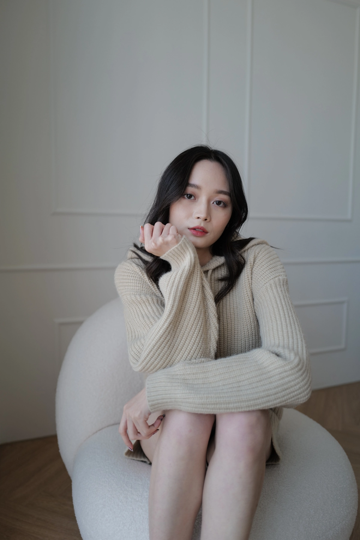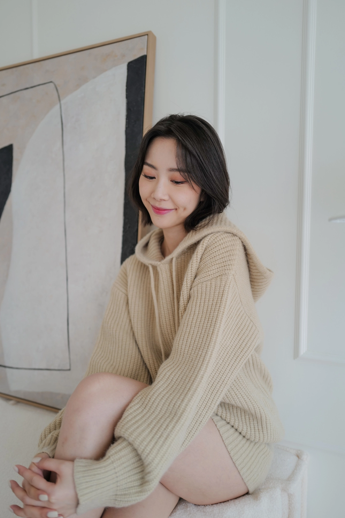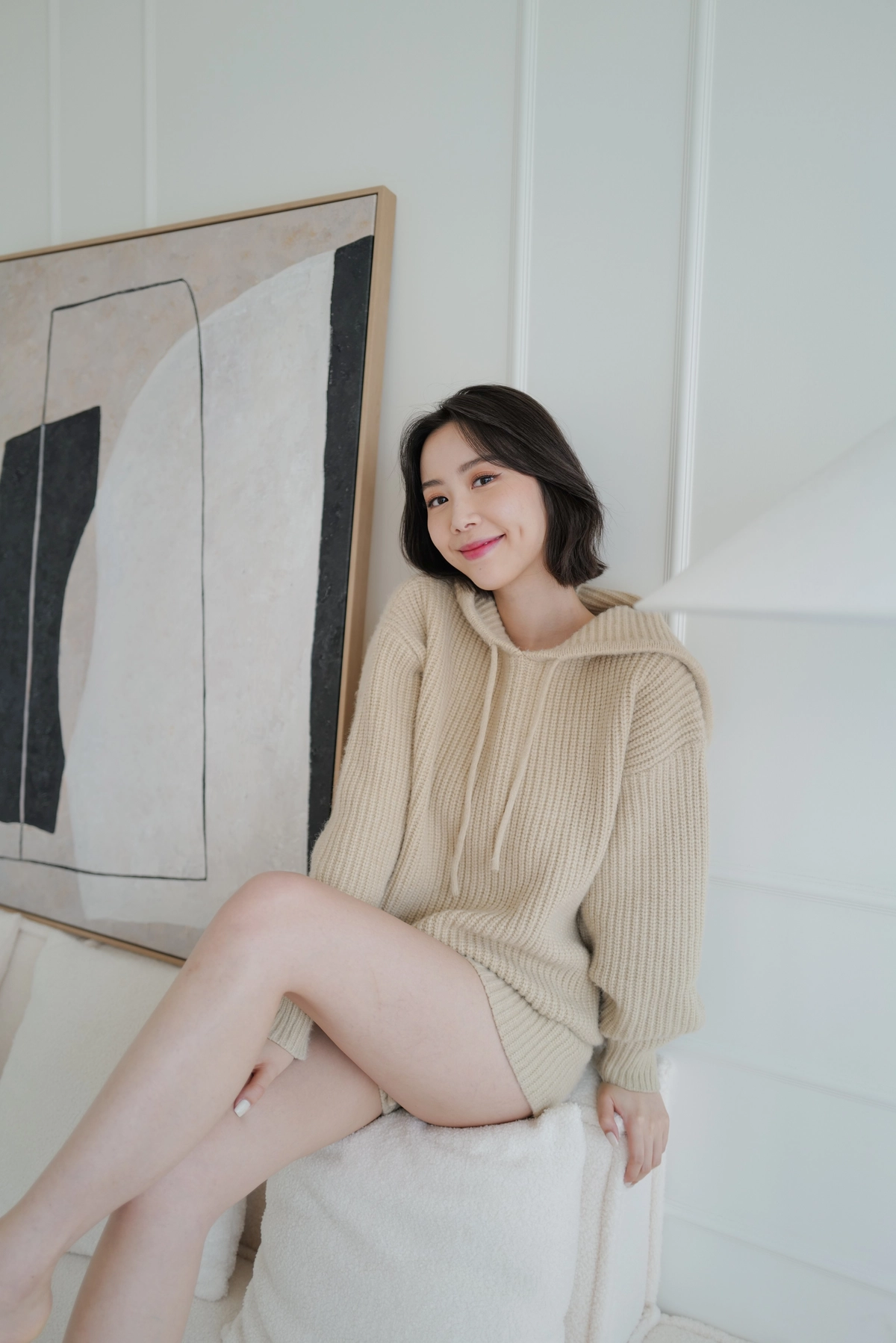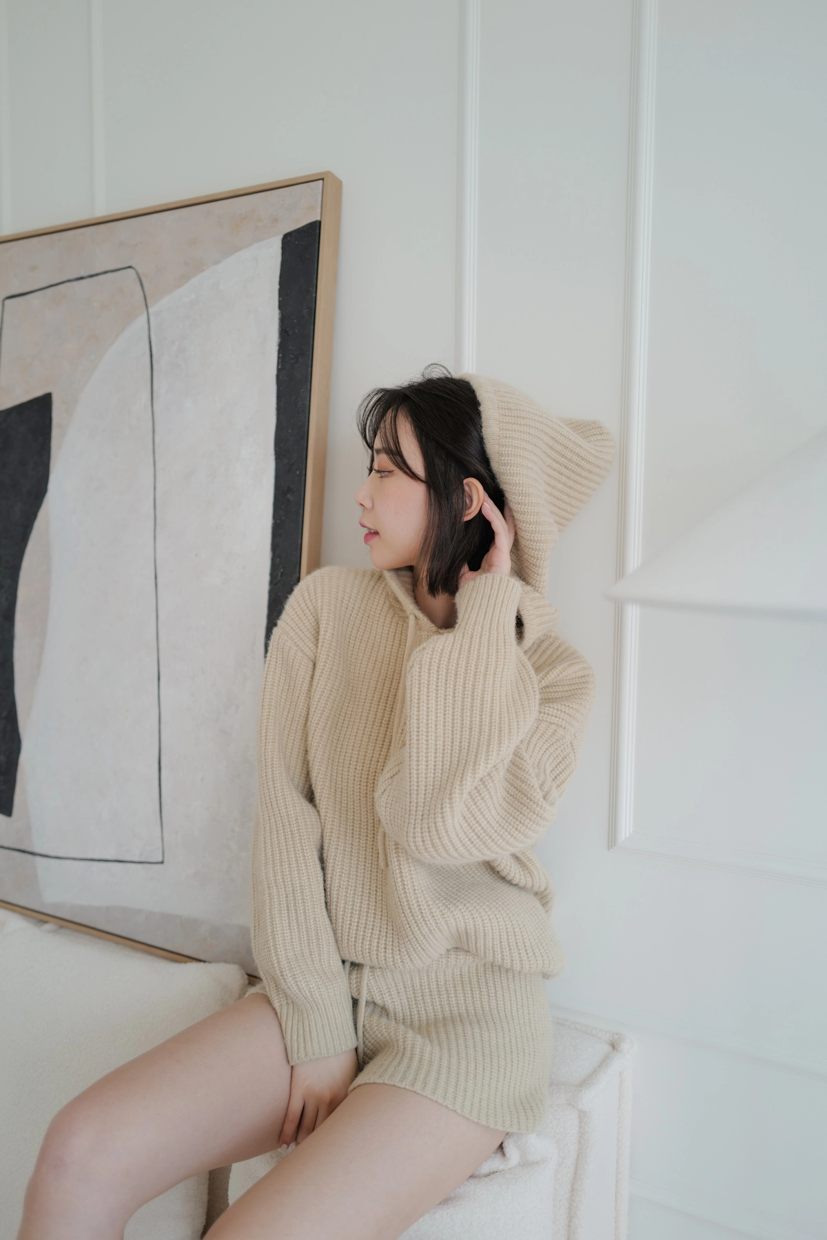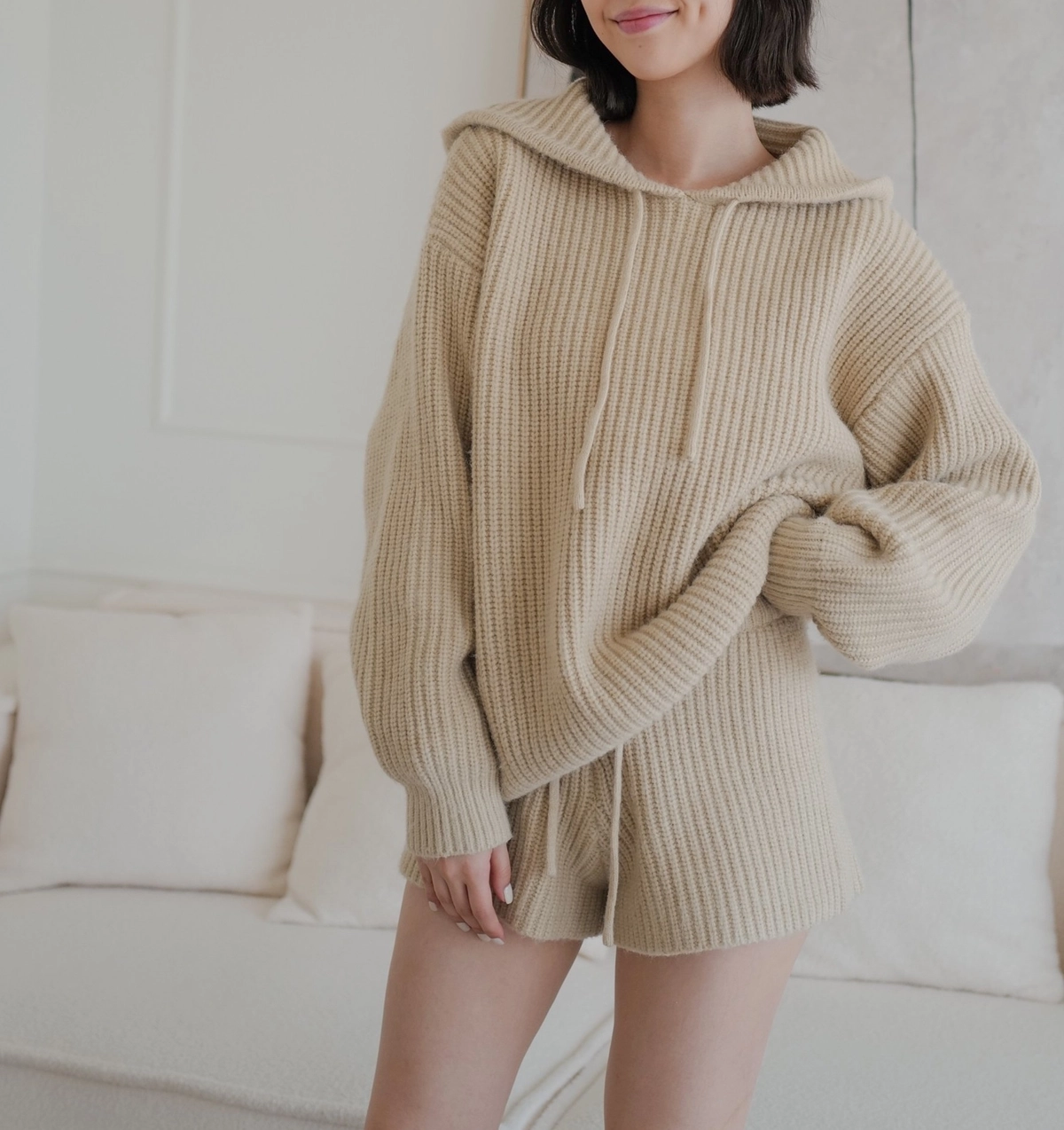 BEIGY自訂款-慵懶粗針織帽Tee-米杏