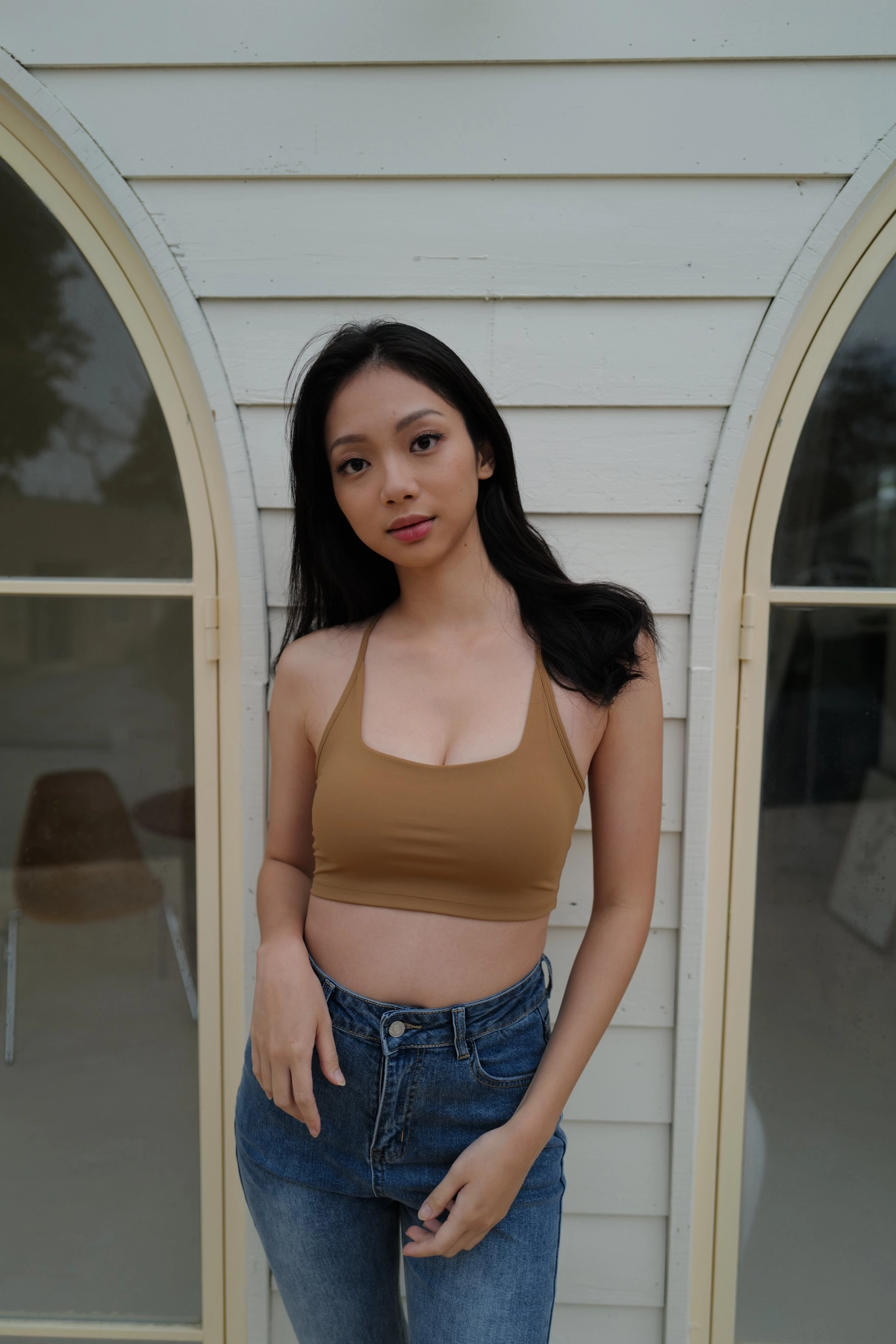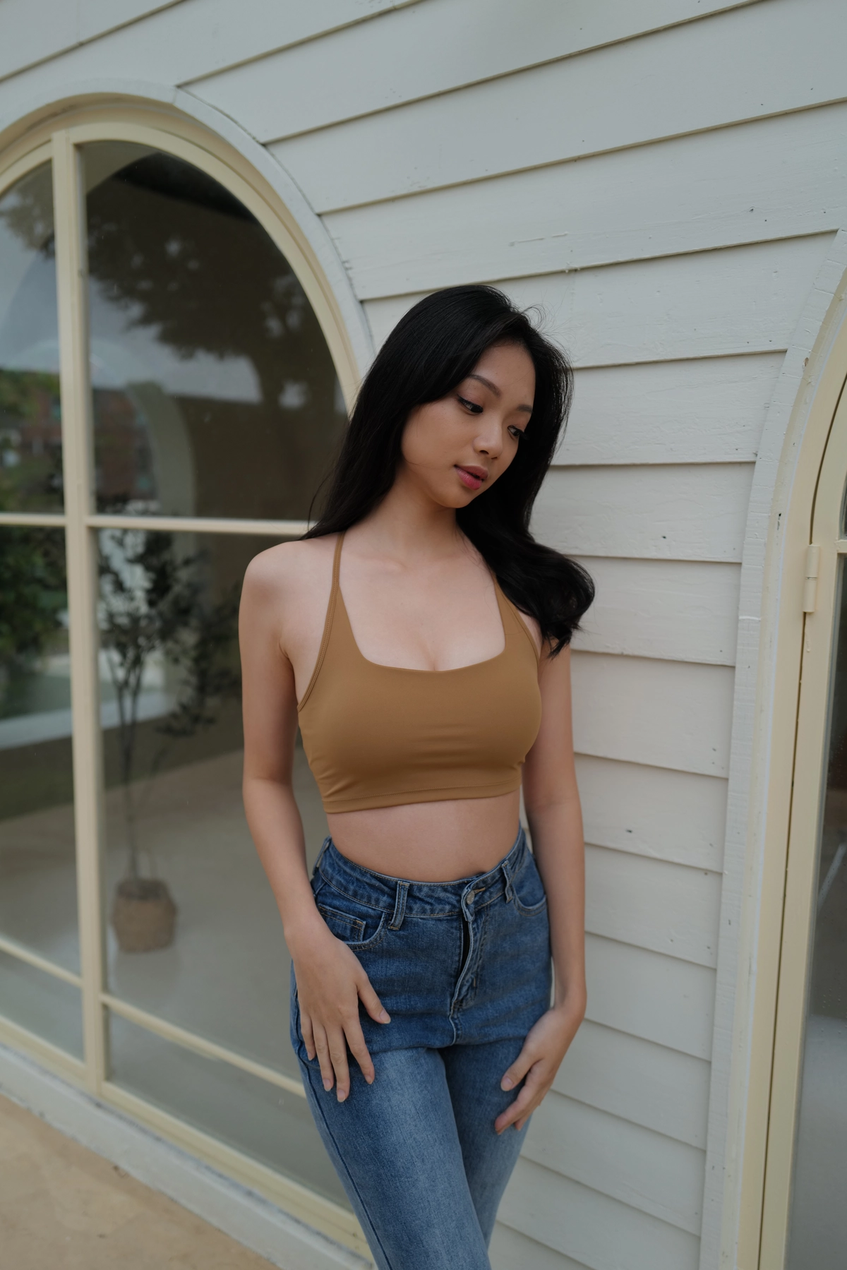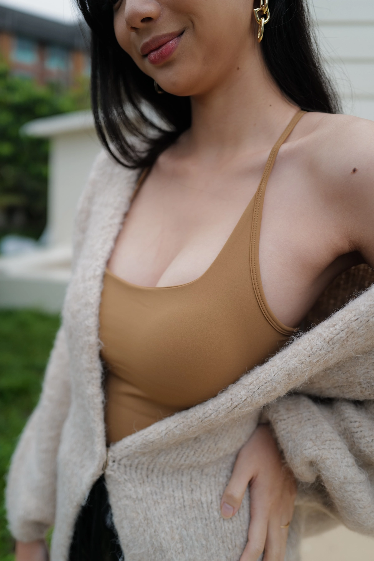 BEIGY自訂款-爆乳Y字削肩運動Bra T-駝