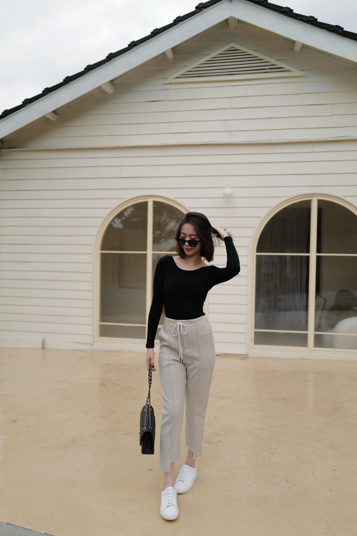 BEIGY自訂款-百搭毛呢休閒褲-灰