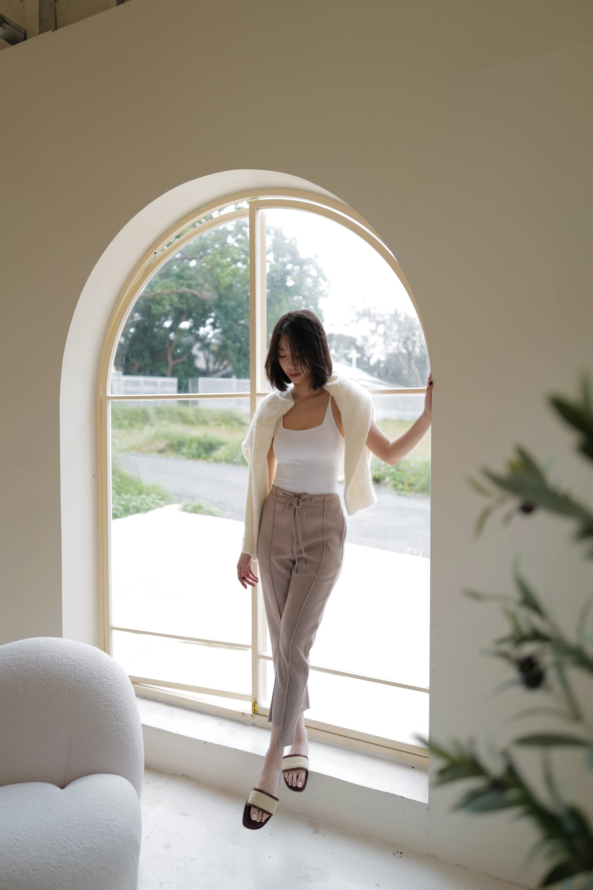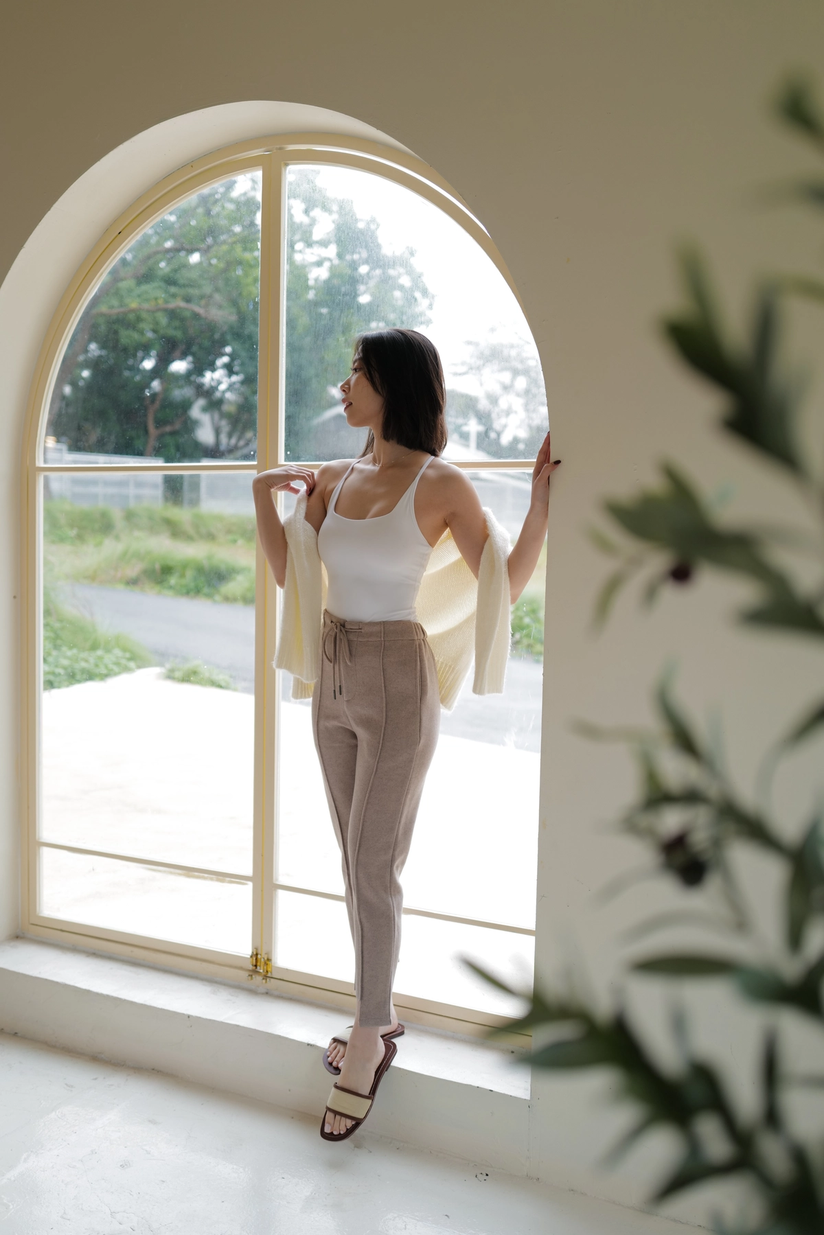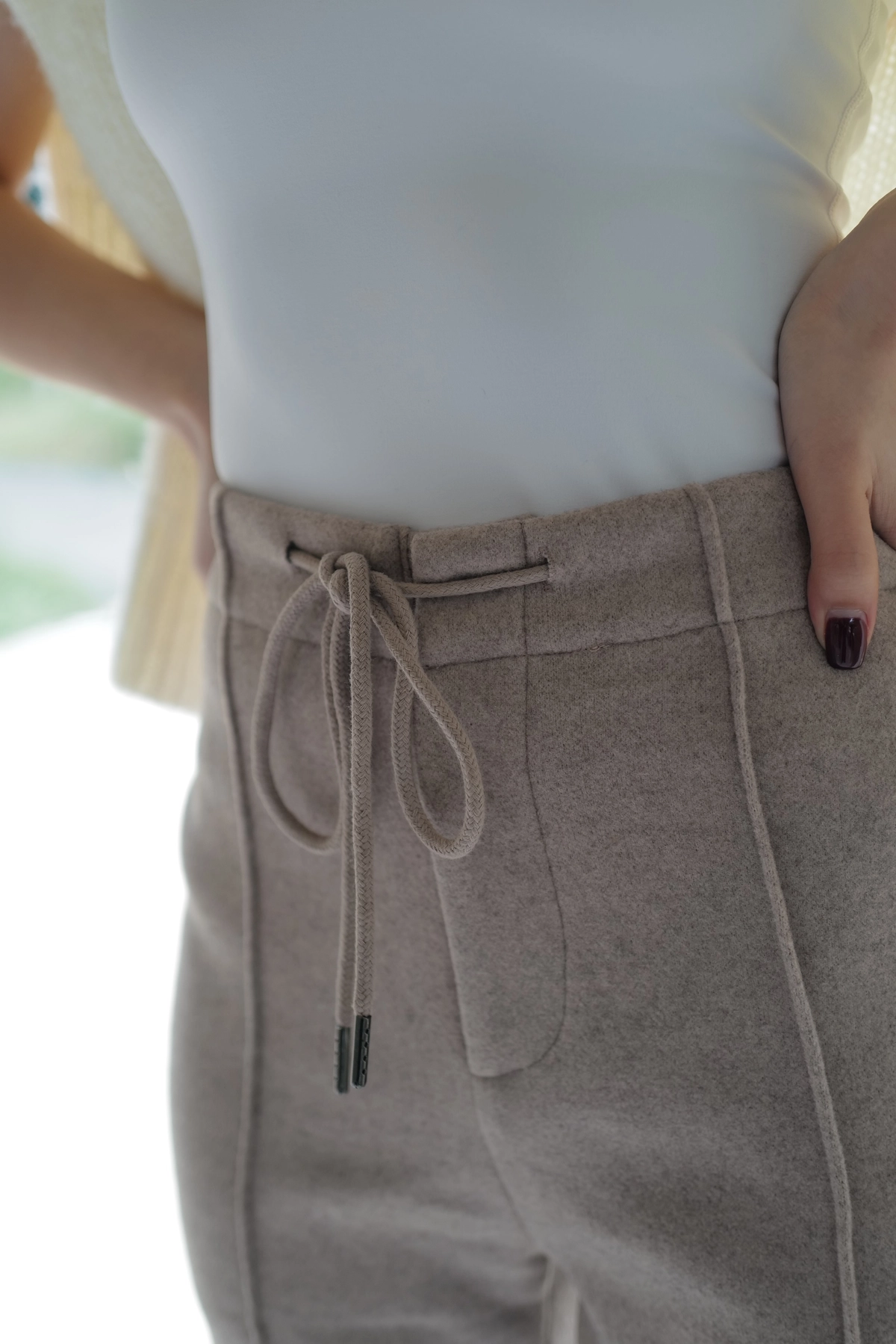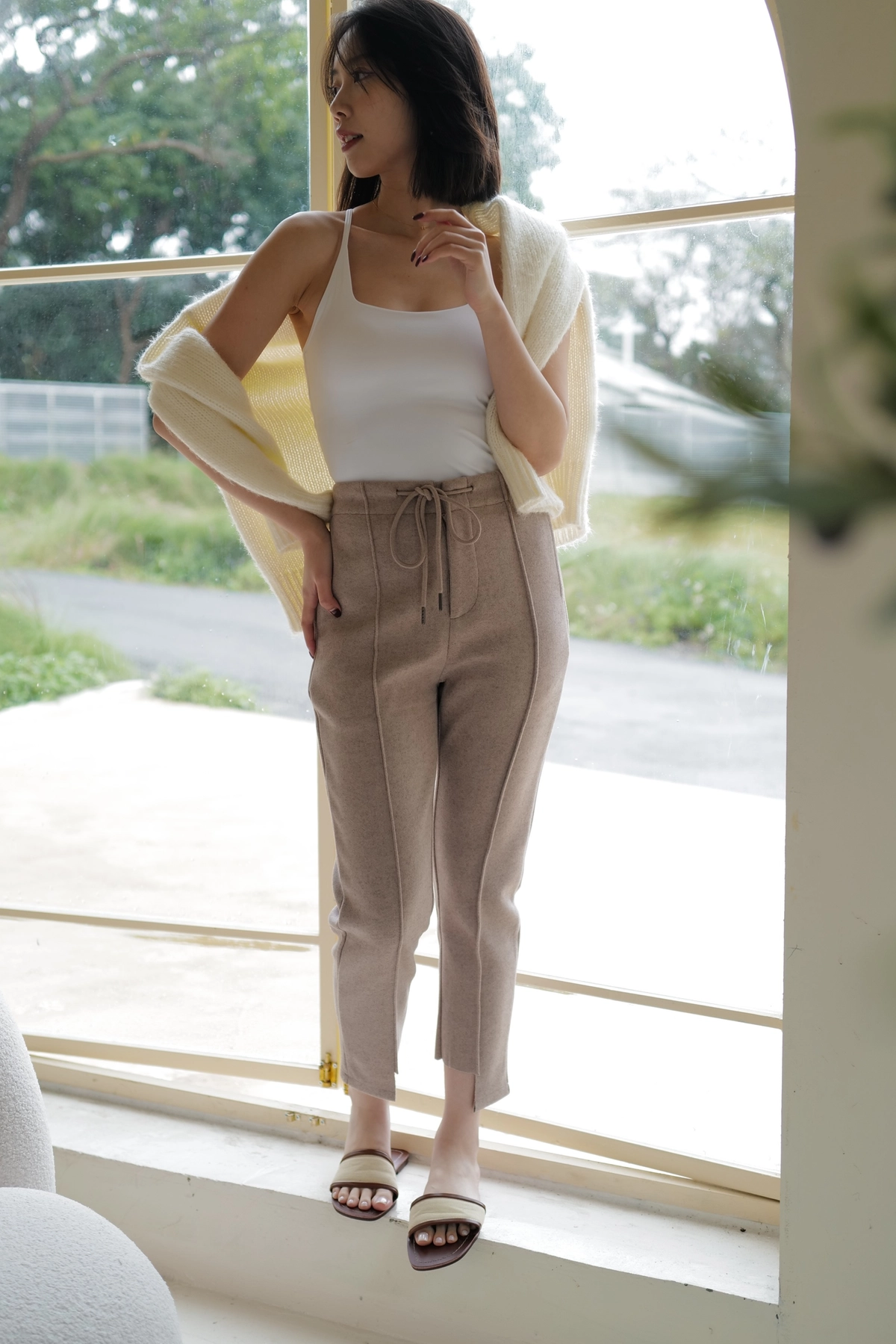 BEIGY自訂款-百搭毛呢休閒褲-咖