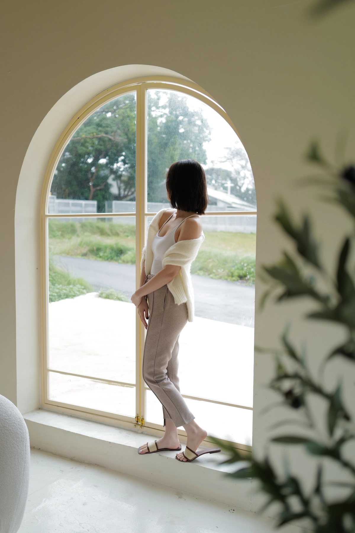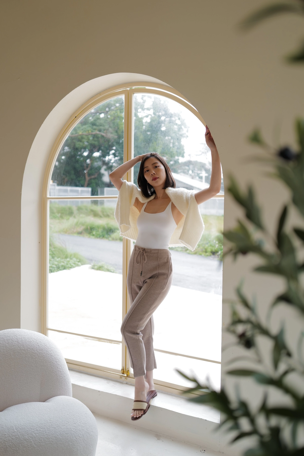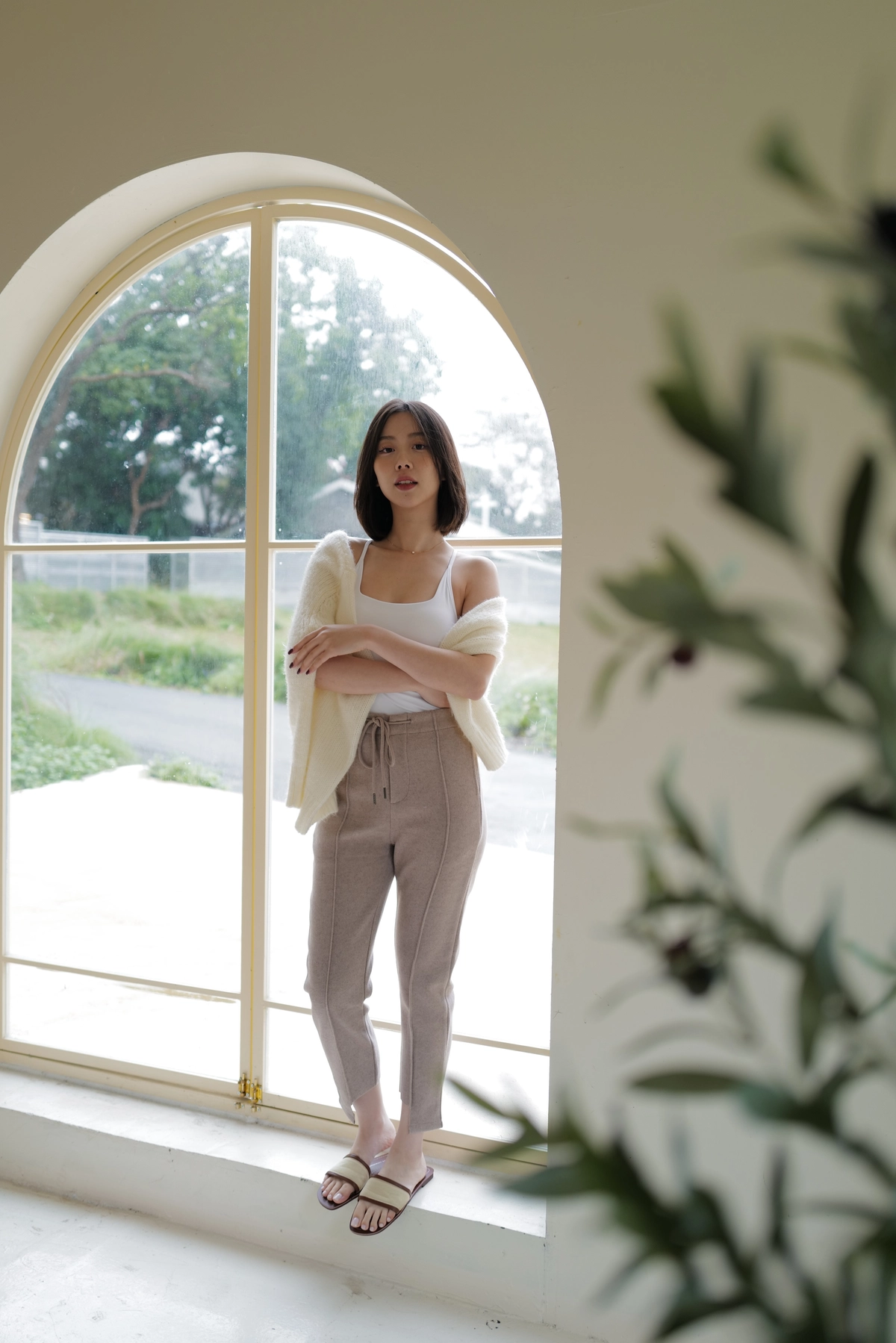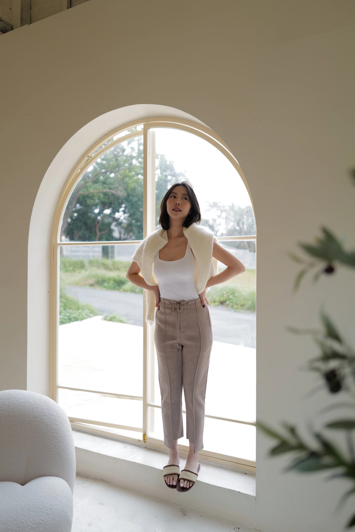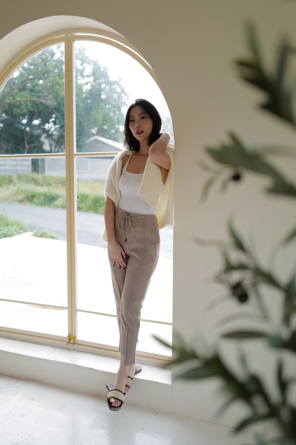 BEIGY自訂款-百搭毛呢休閒褲-咖