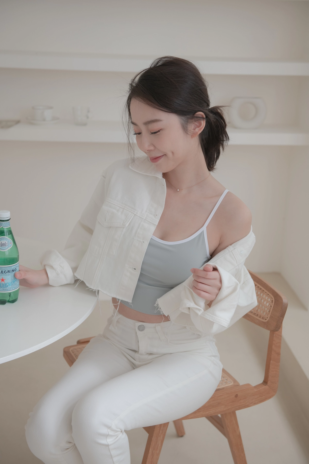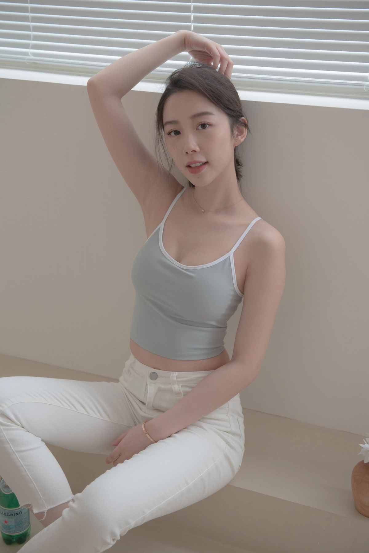 細肩帶撞色小U領Bra Top-冰藍底白邊