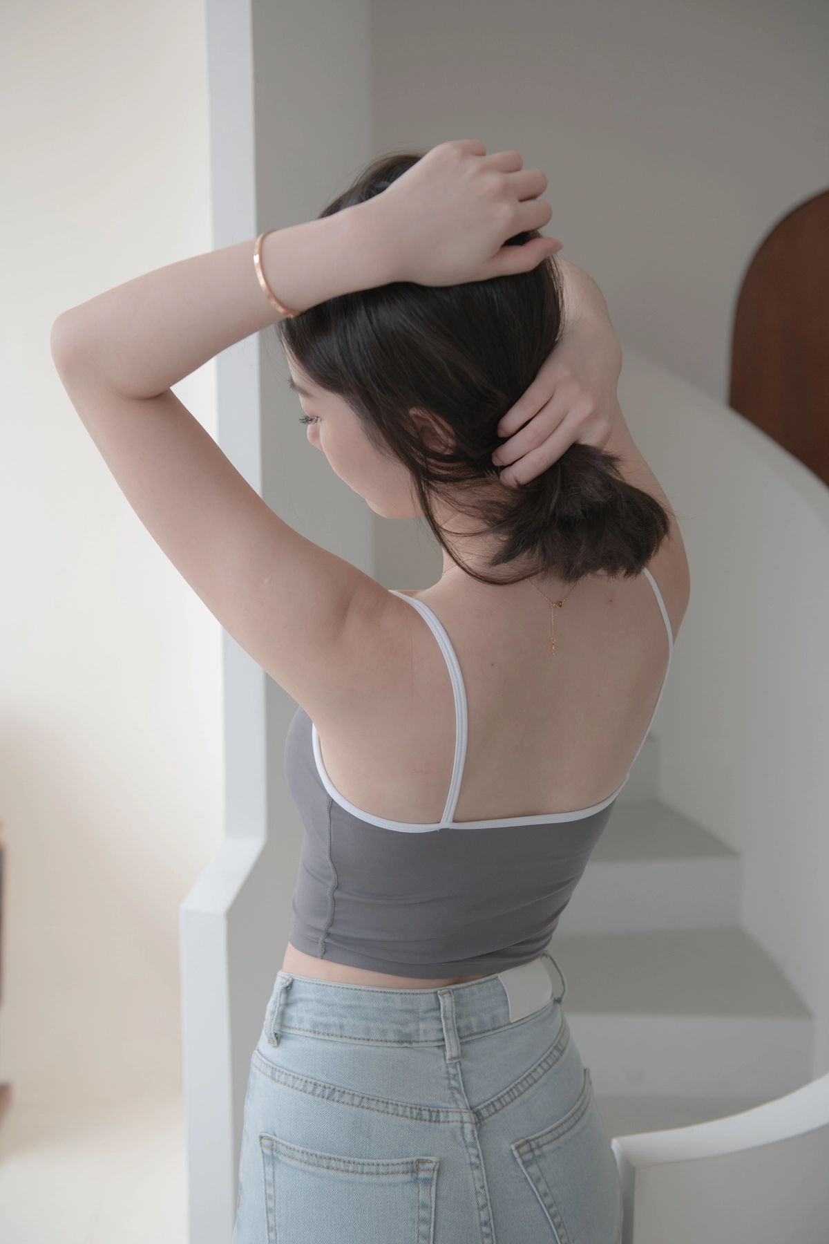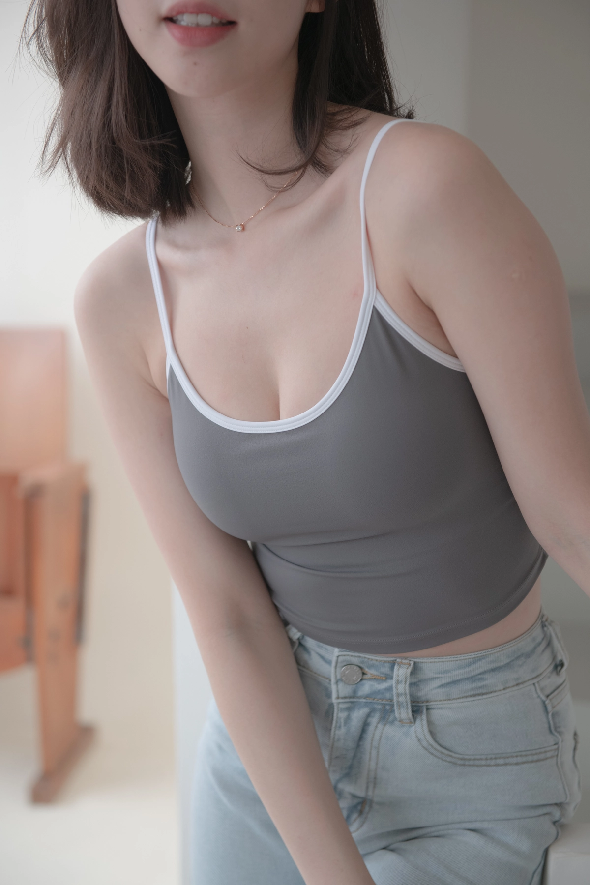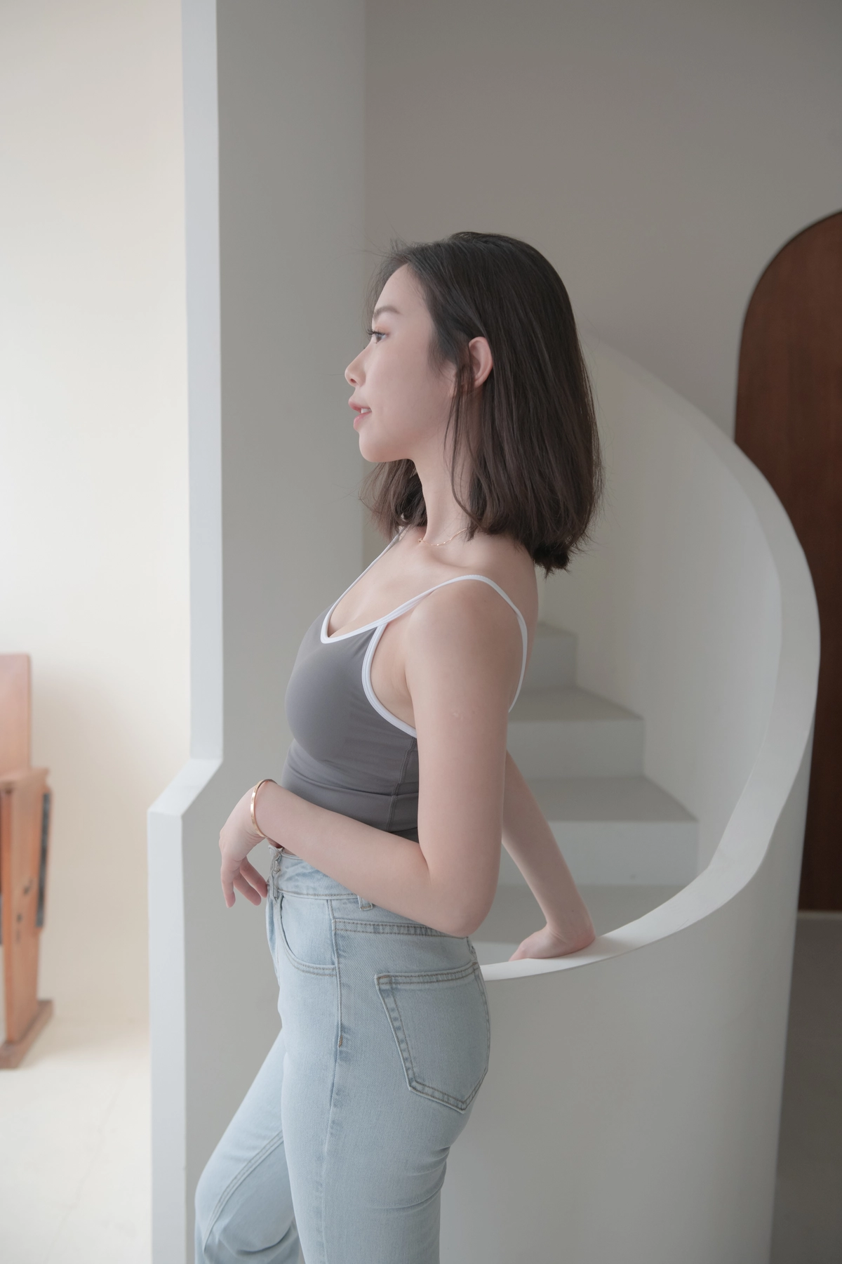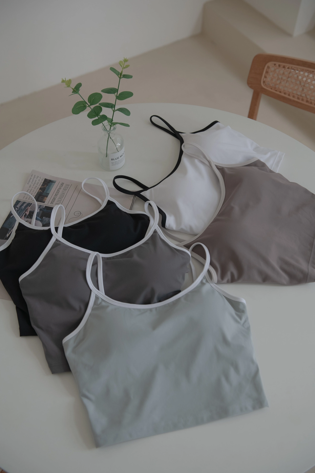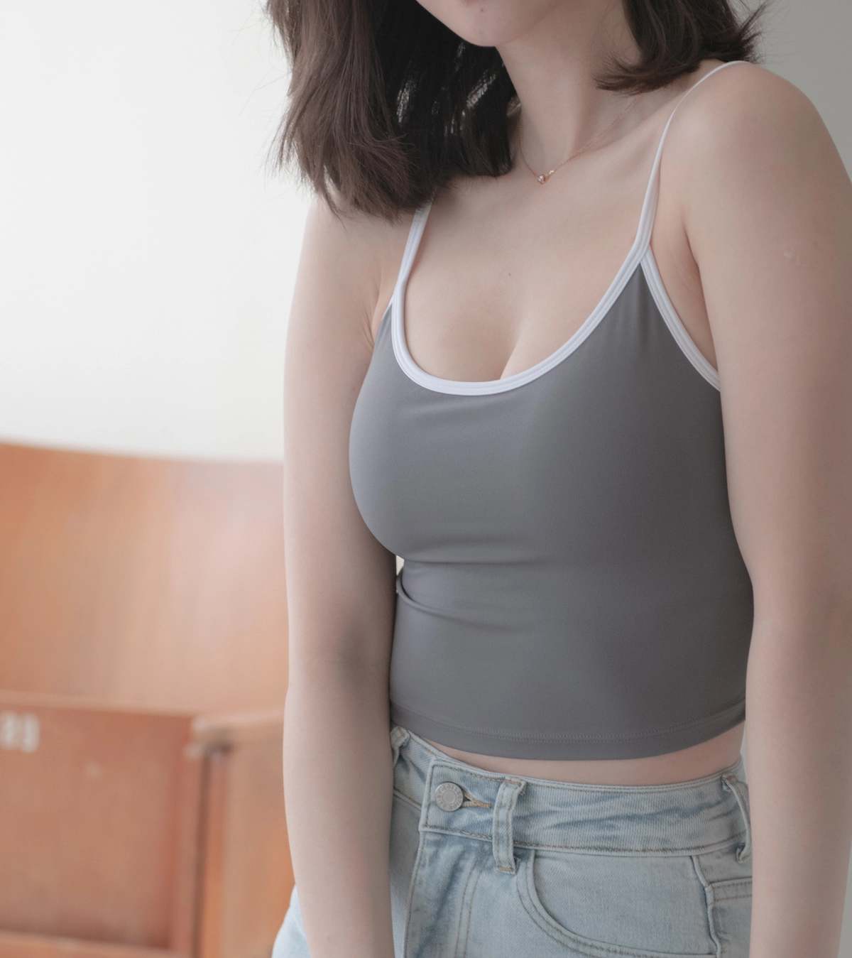 細肩帶撞色小U領Bra Top-灰咖底杏邊