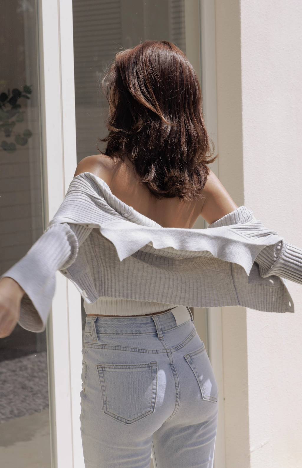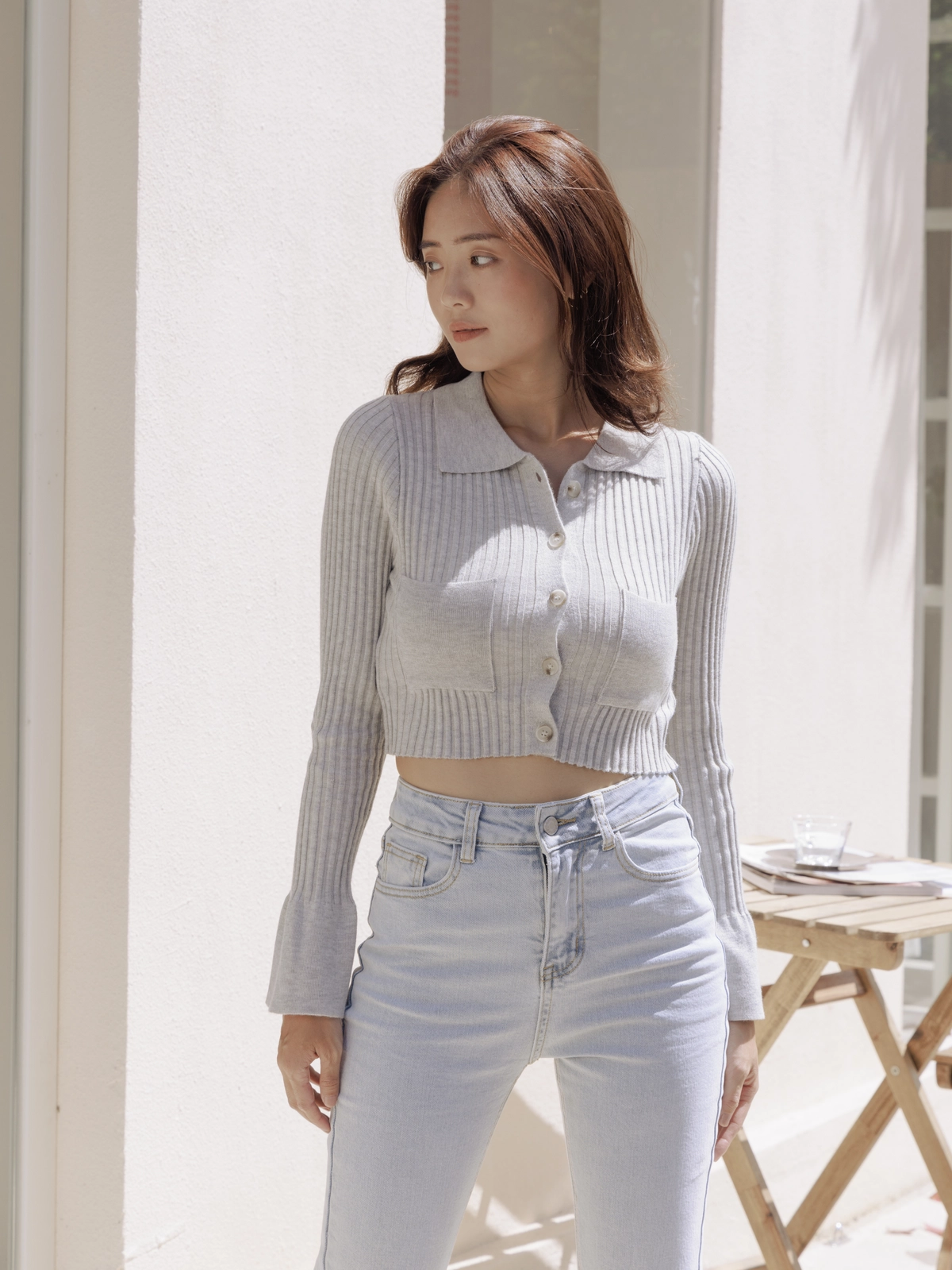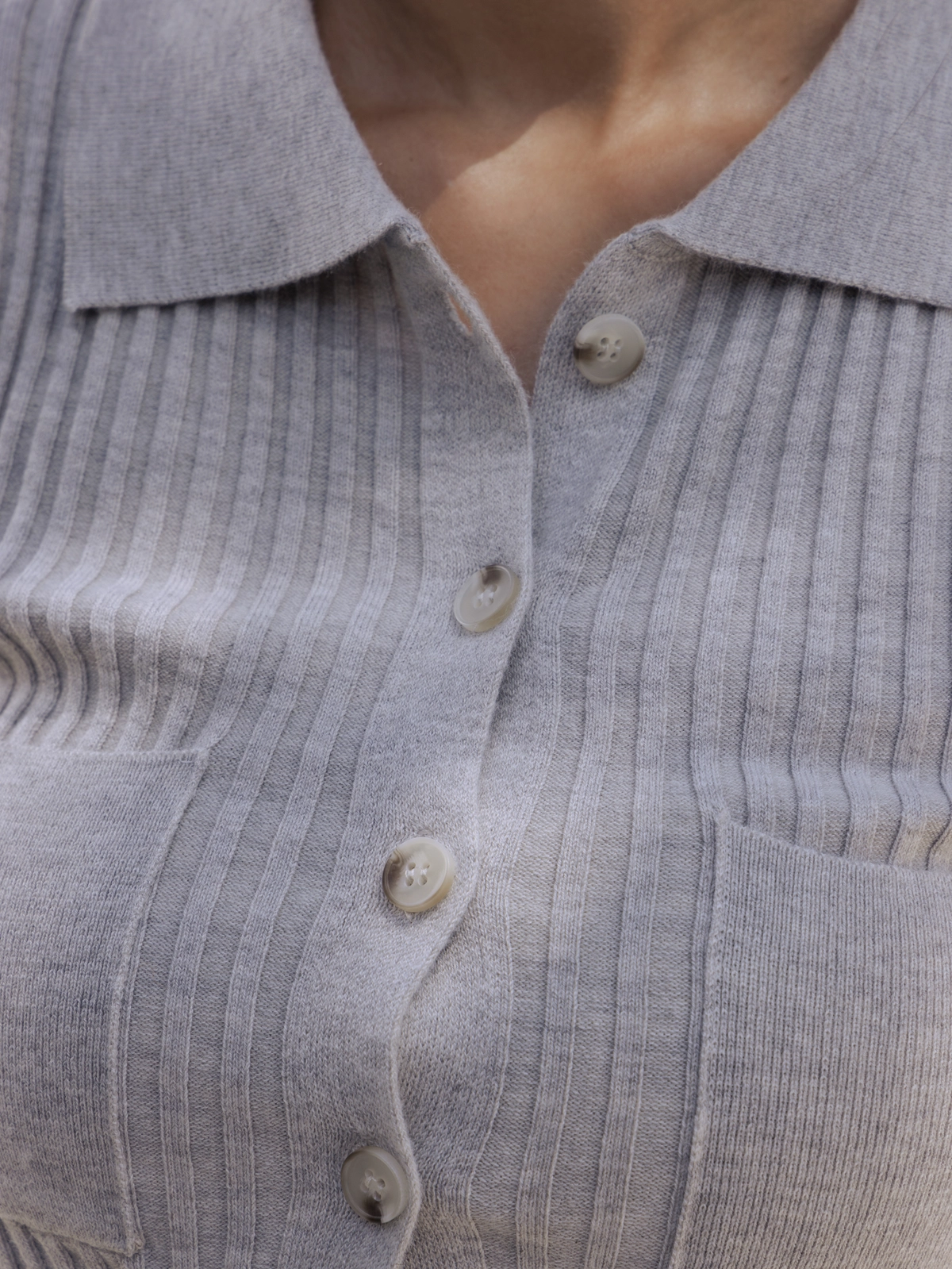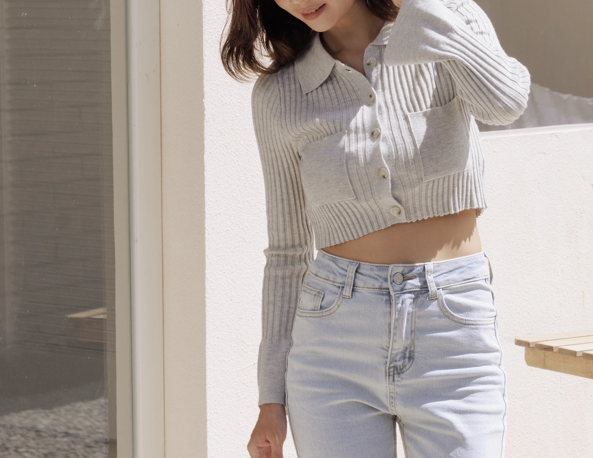 時髦翻領短版針織衫-灰