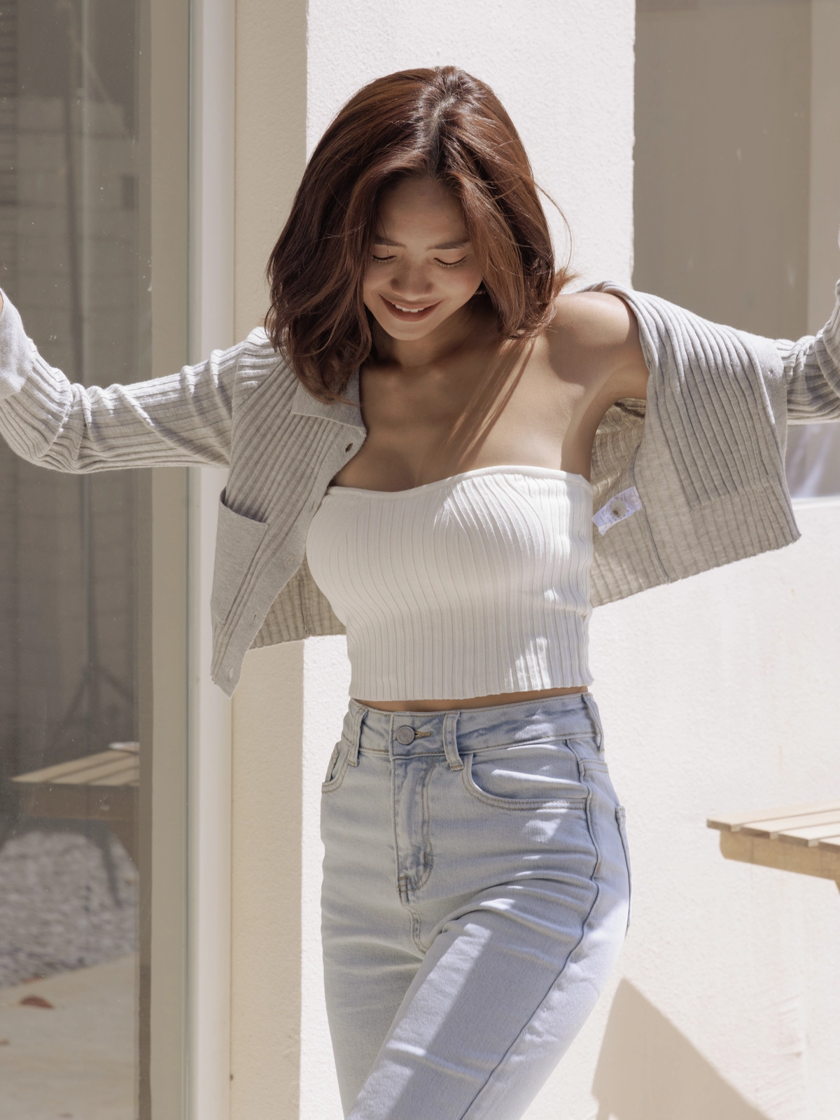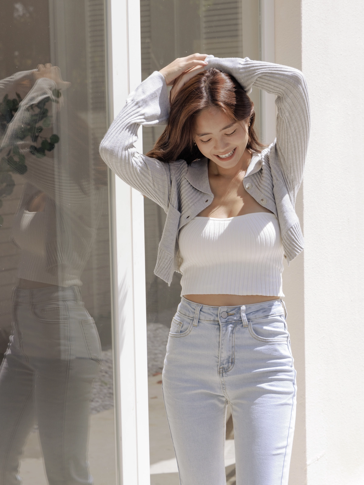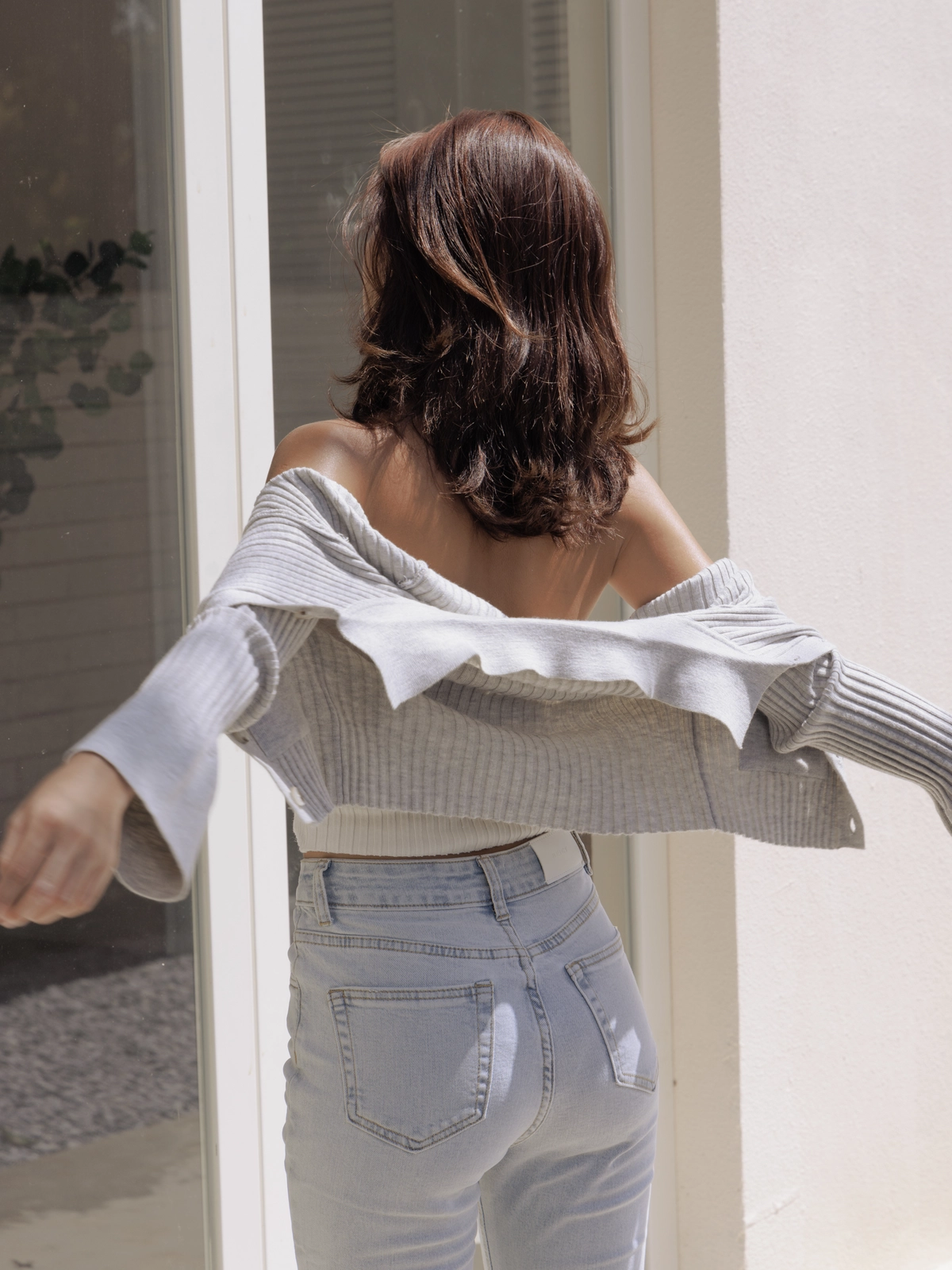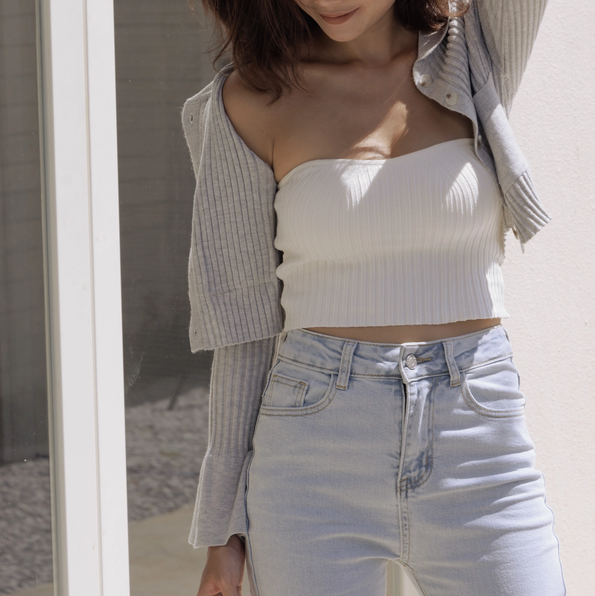 時髦翻領短版針織衫-灰