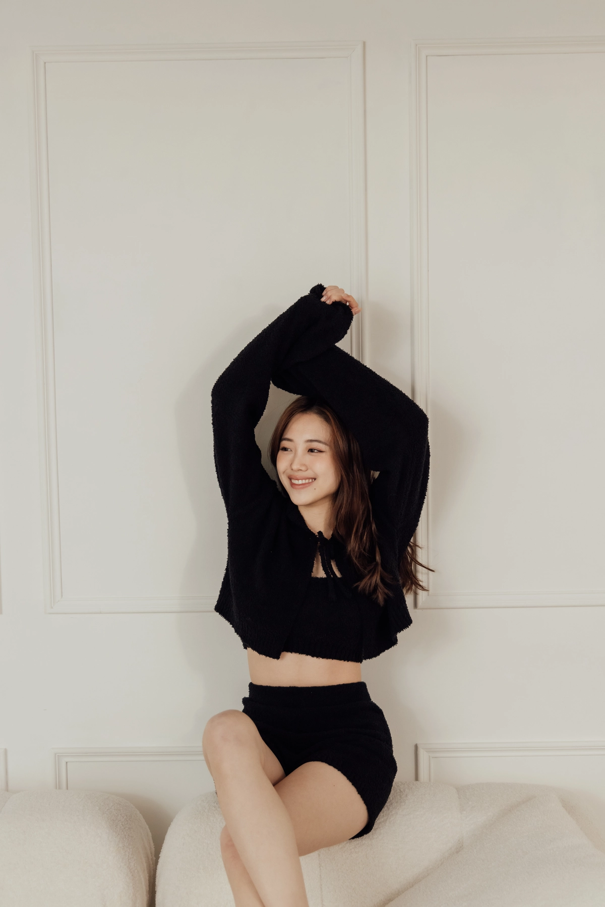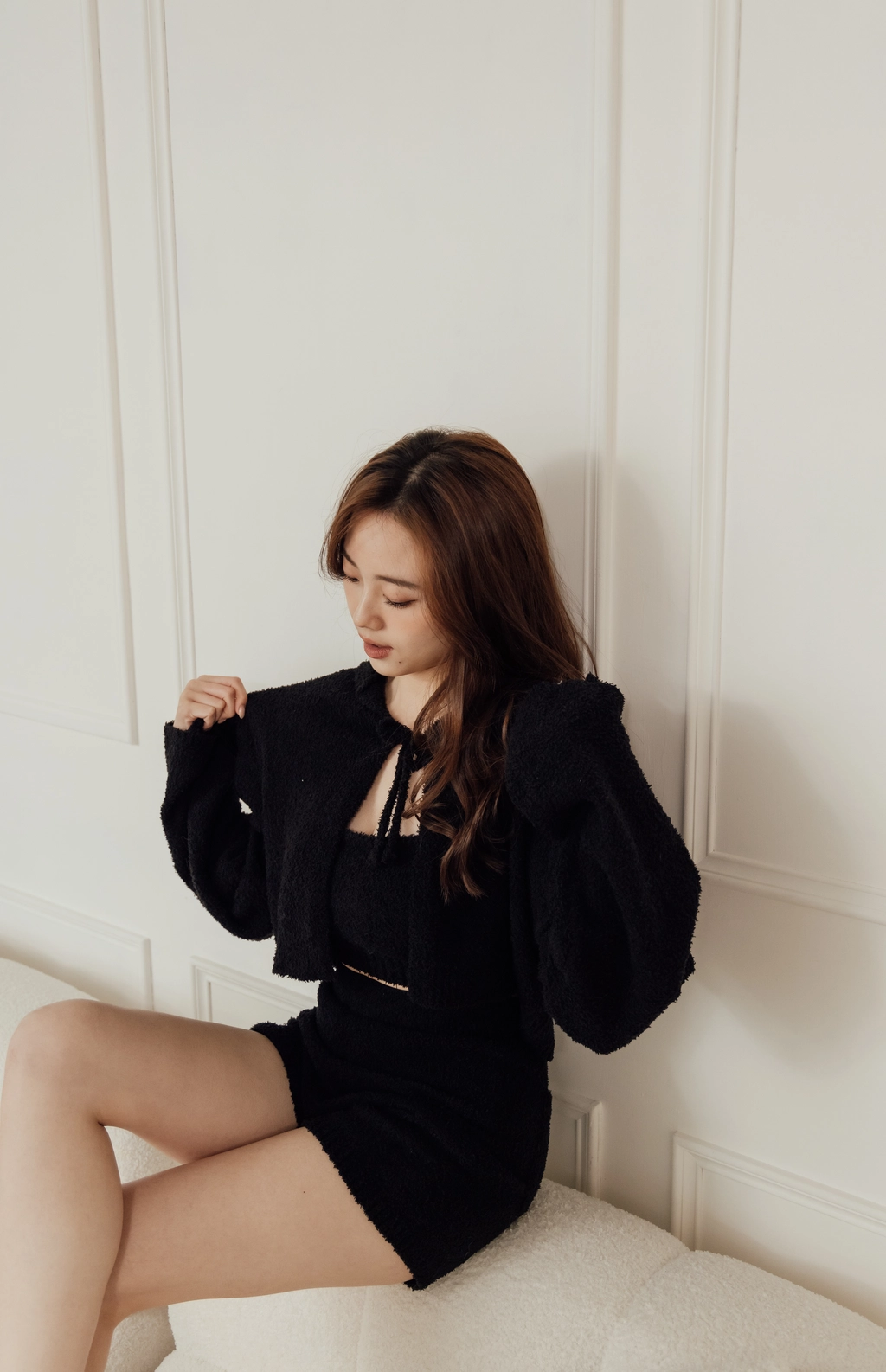暖冬泰迪熊綁繩外套-黑