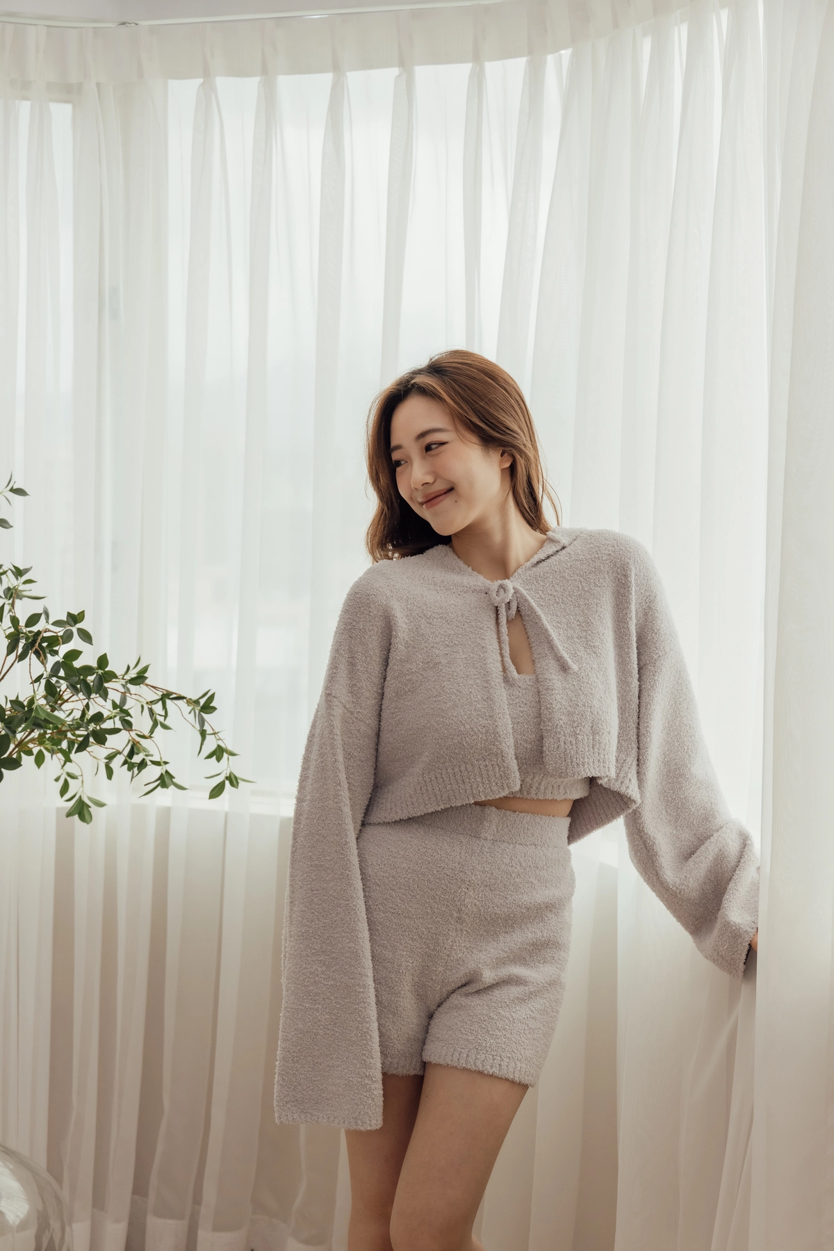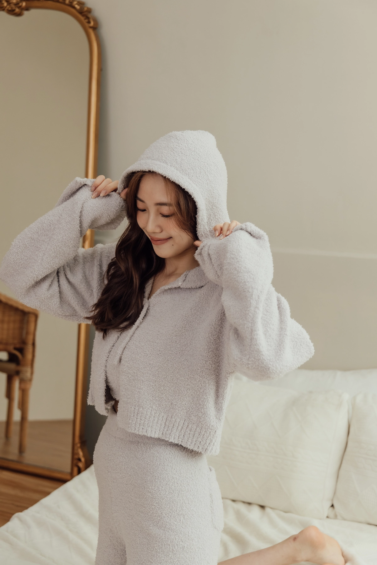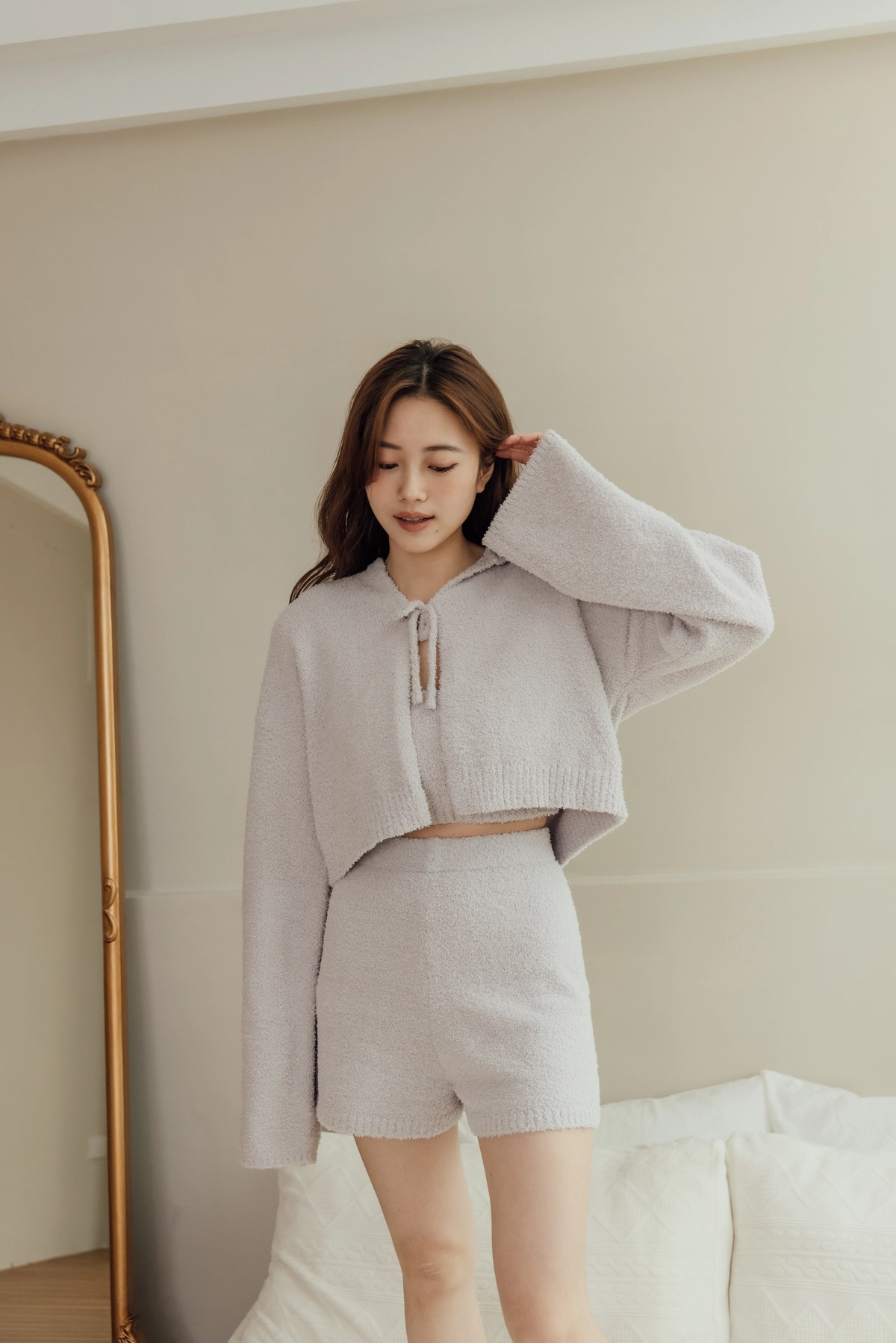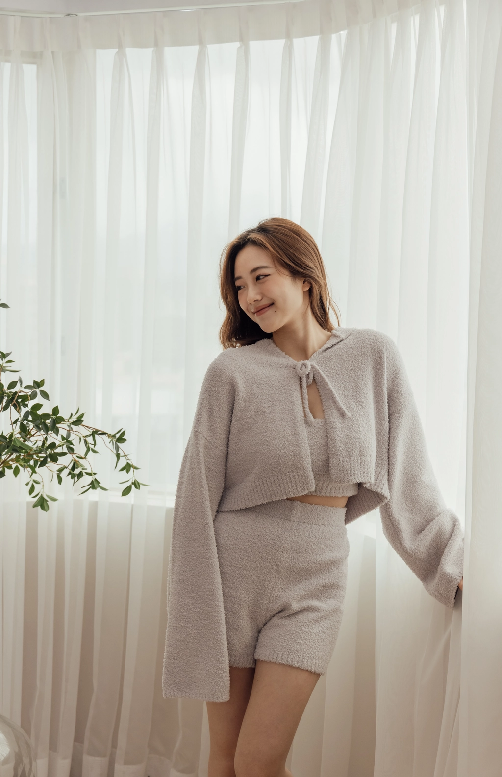 暖冬泰迪熊綁繩外套-薰衣淡紫