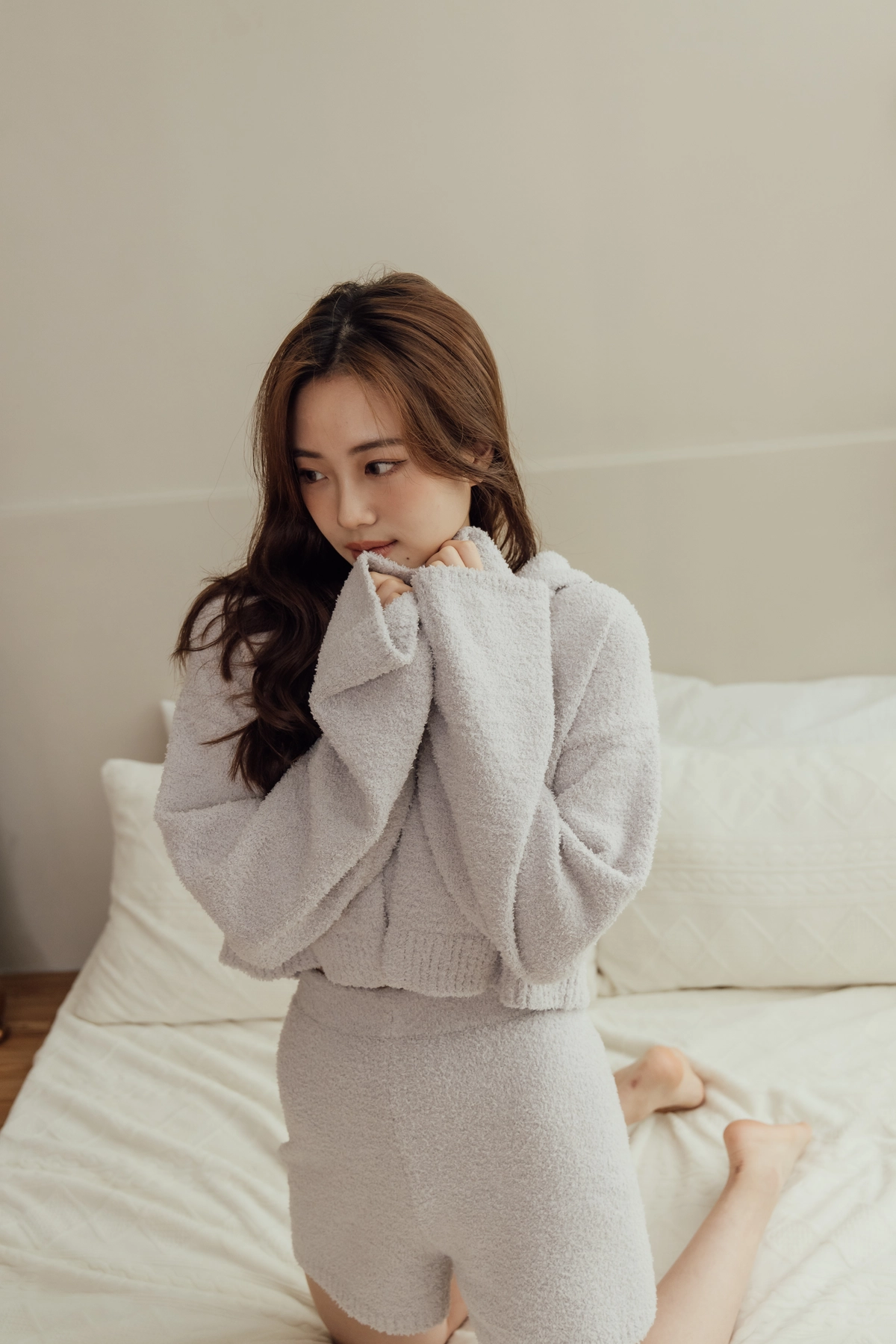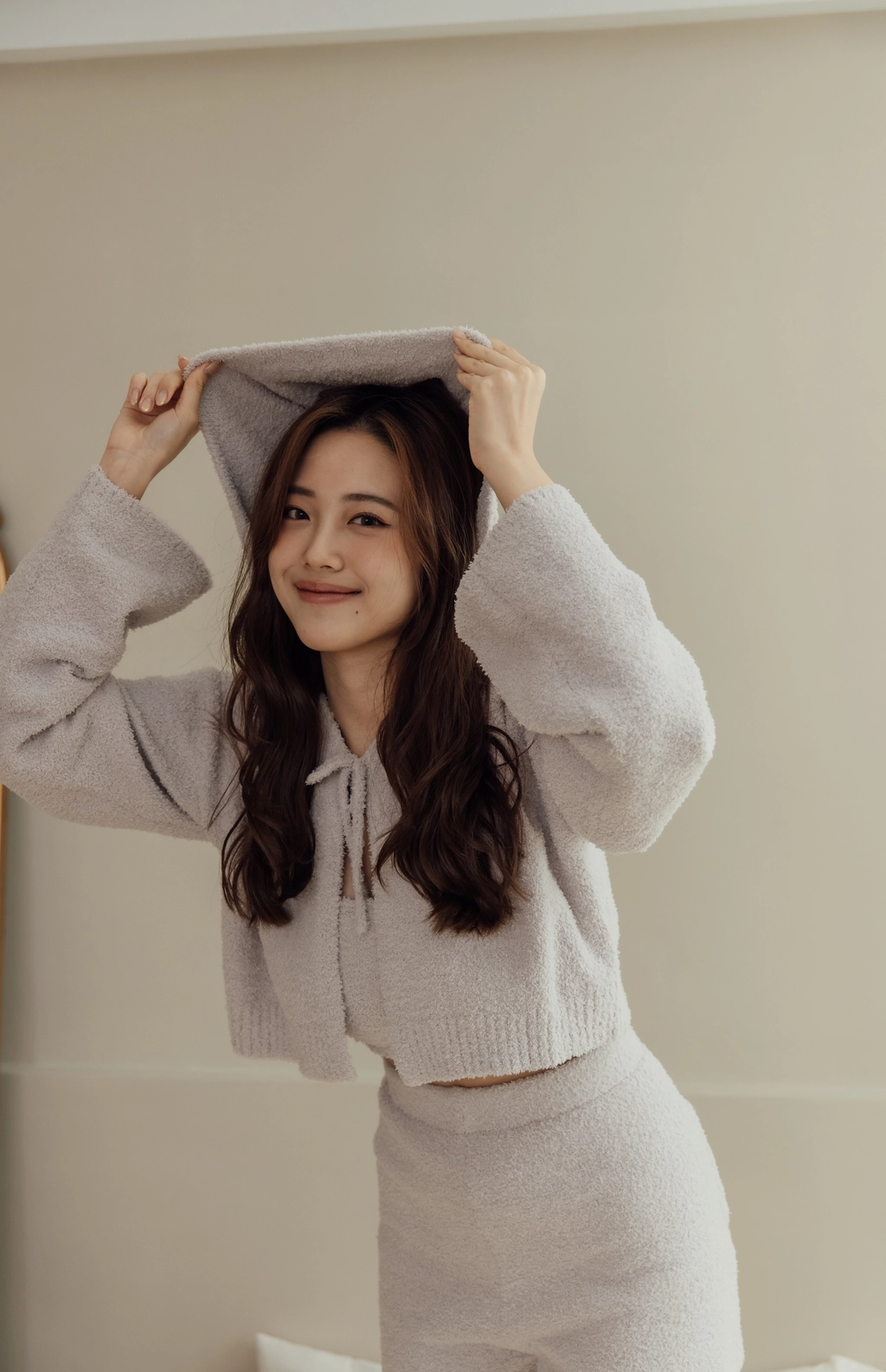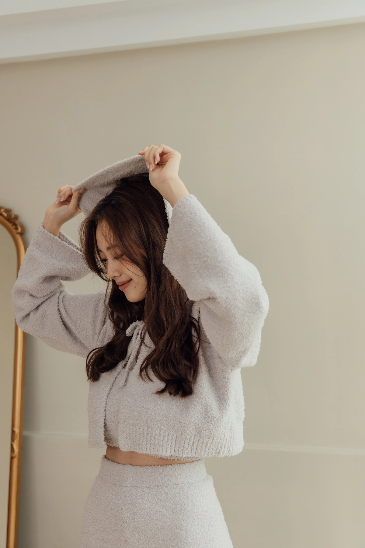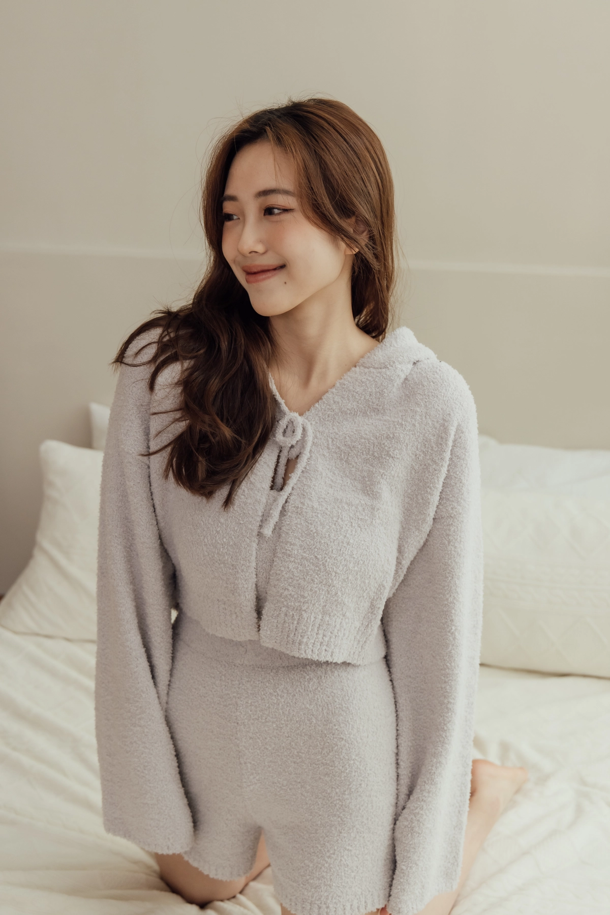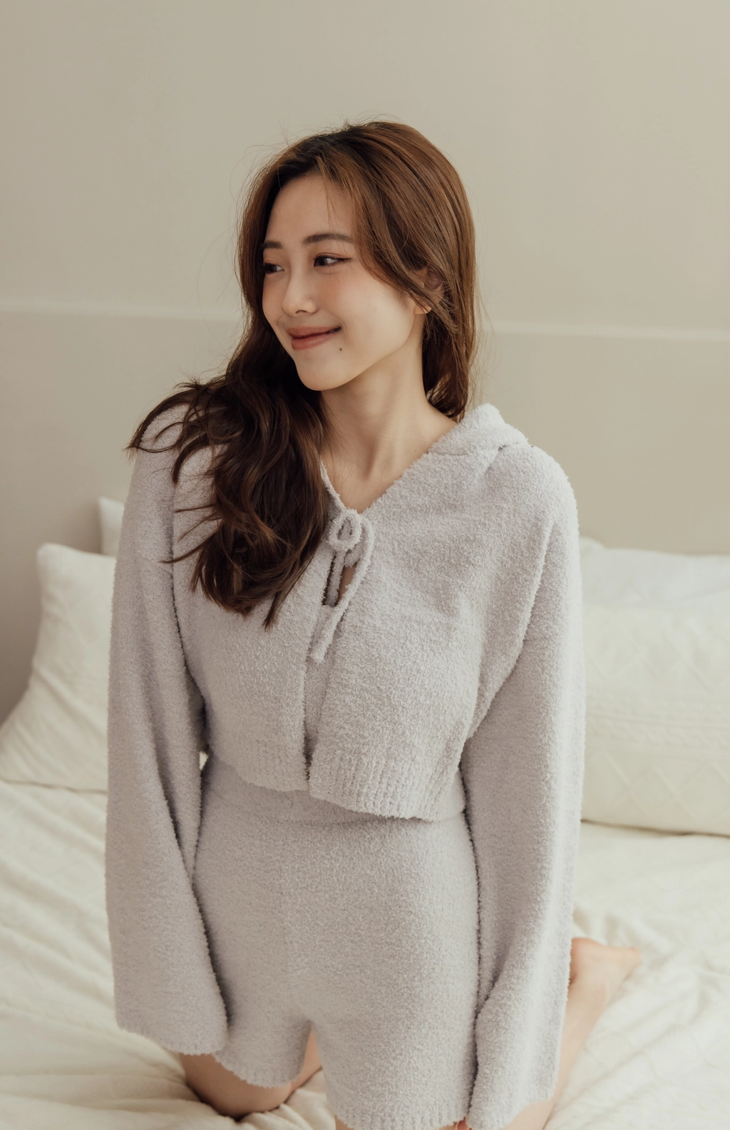 暖冬泰迪熊綁繩外套-薰衣淡紫