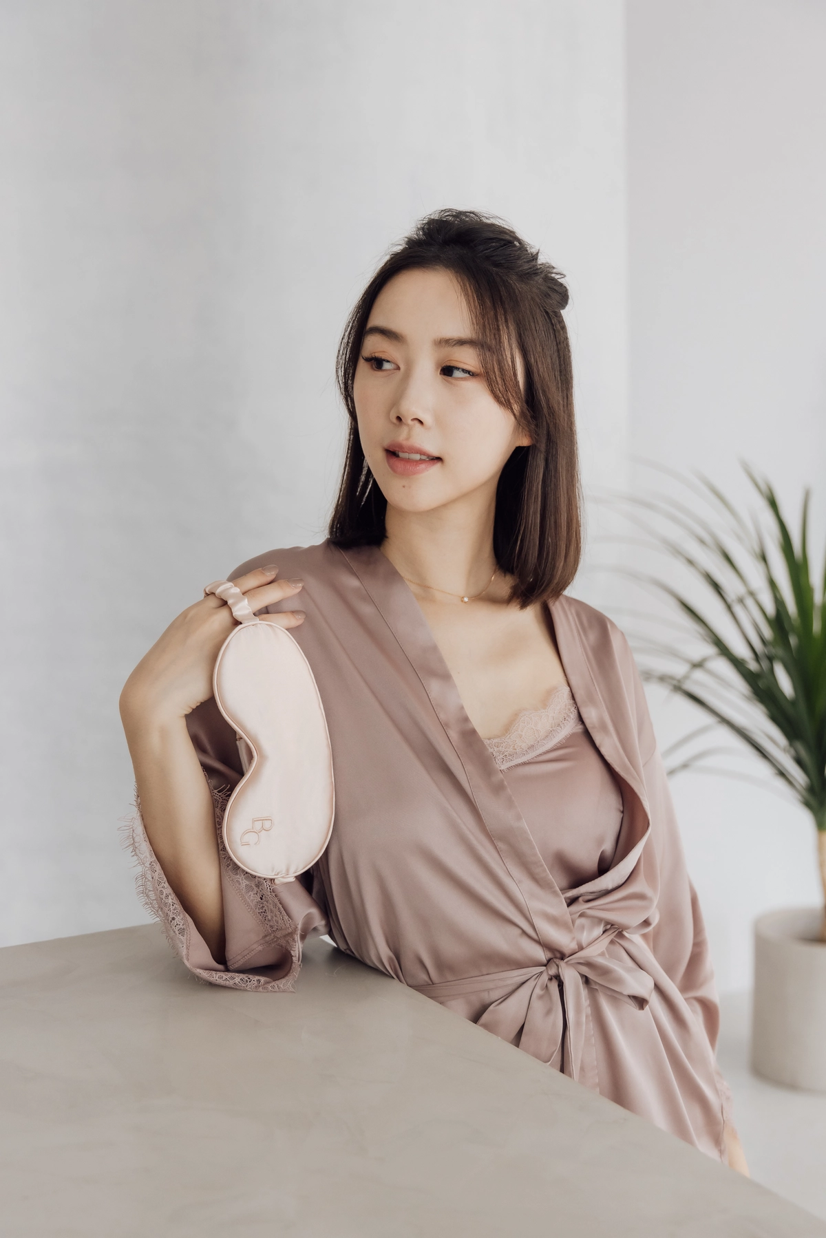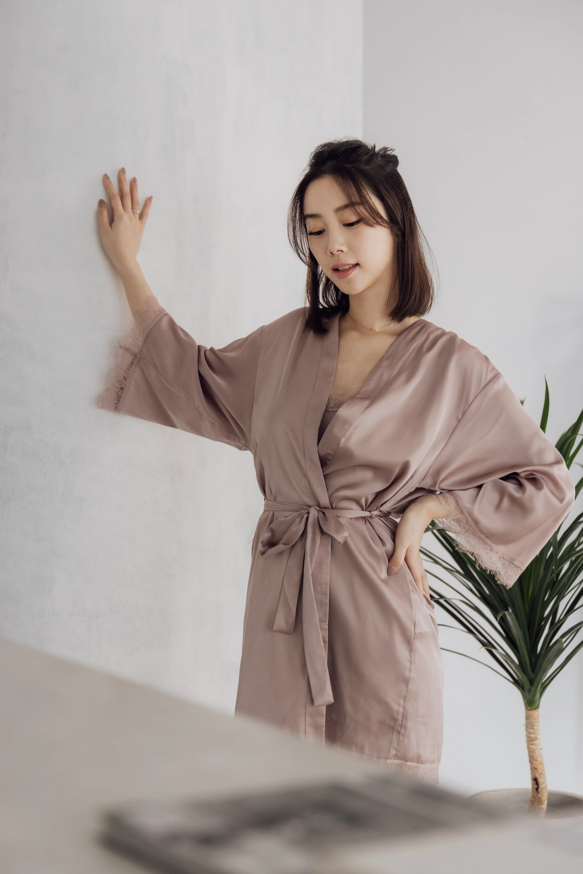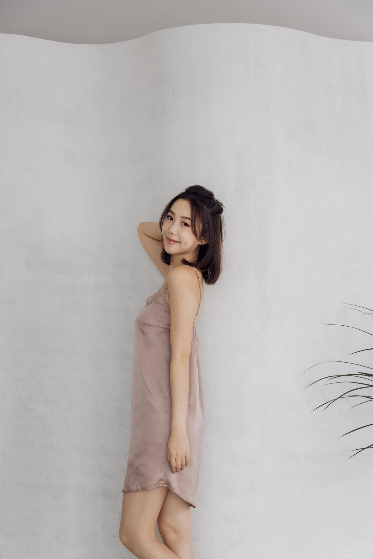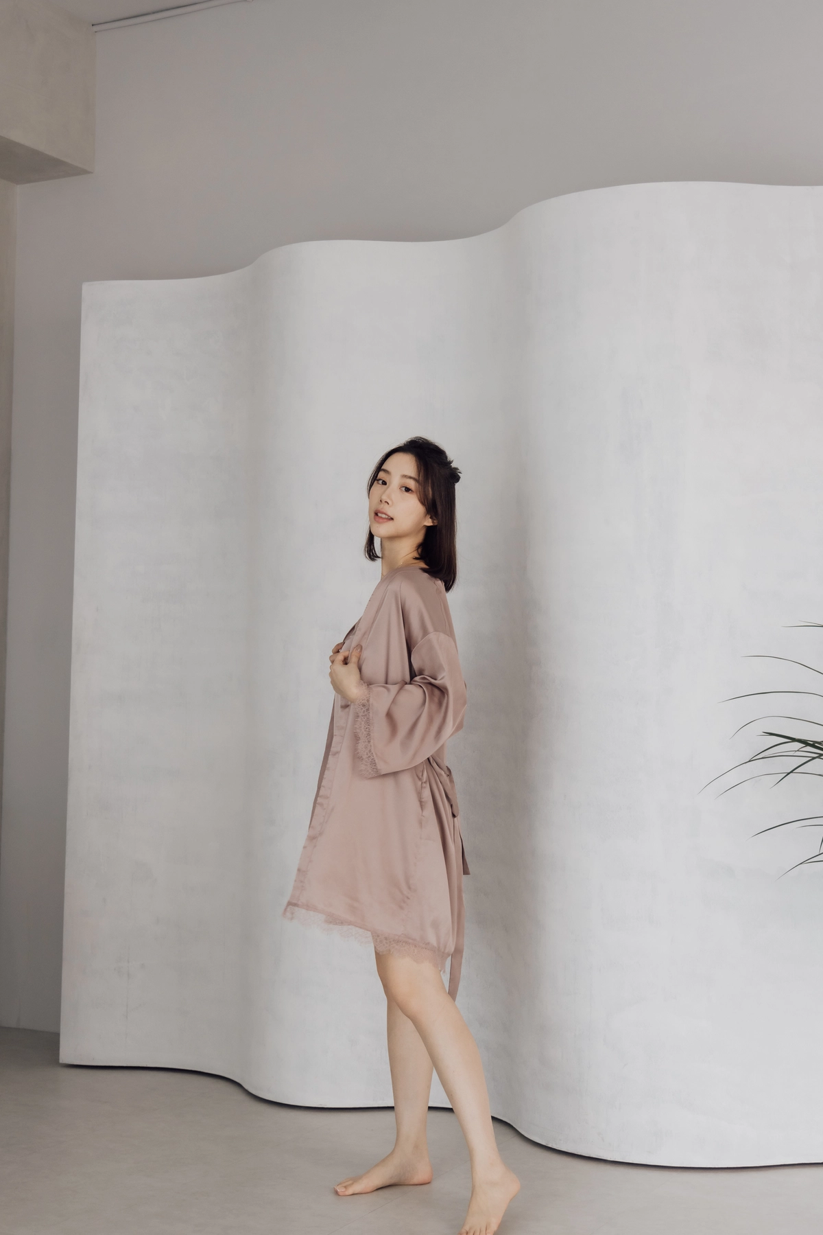WOMAN緞面蕾絲Bra Top睡裙-煙灰粉