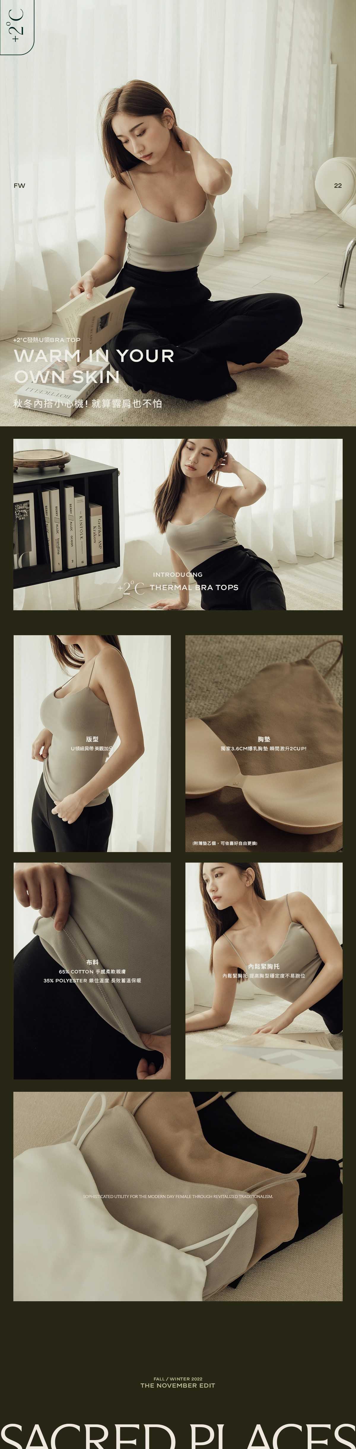 +2°C發熱U領Bra Top-駝