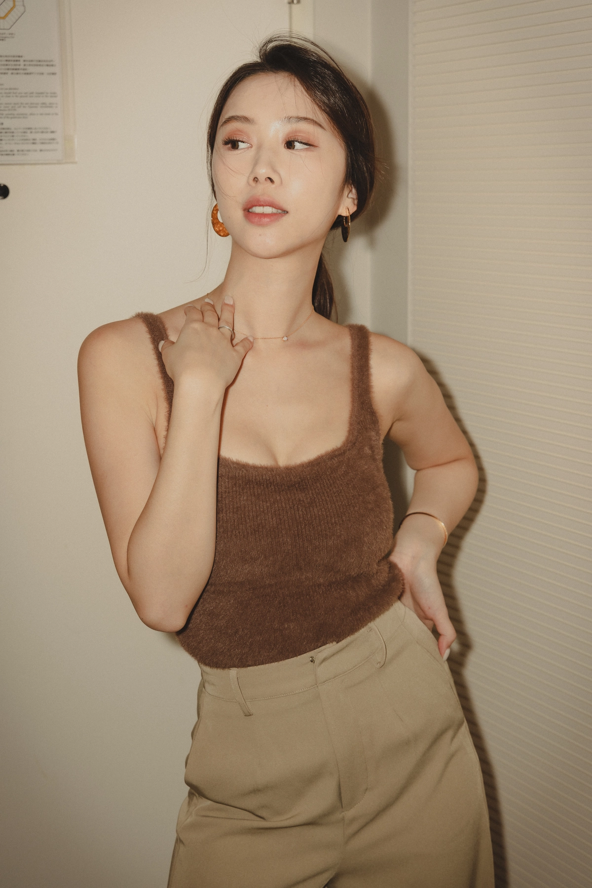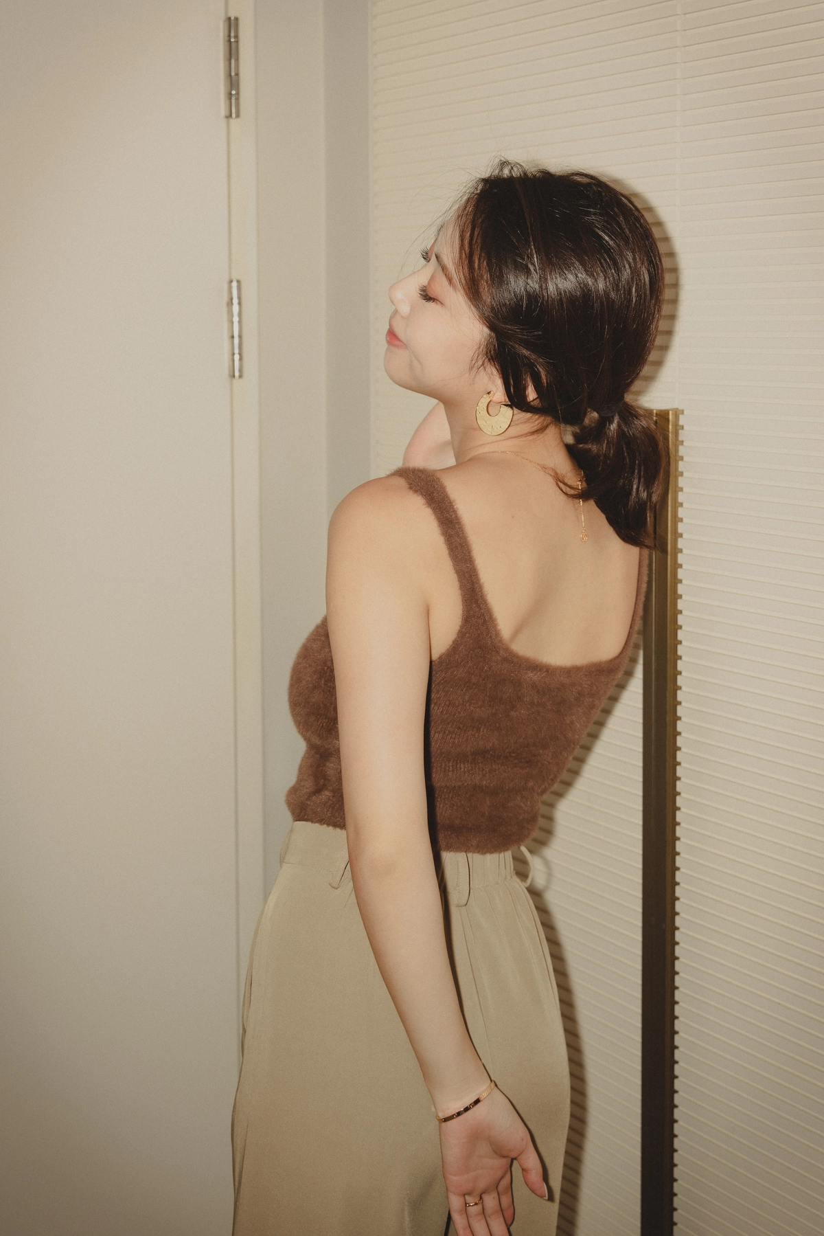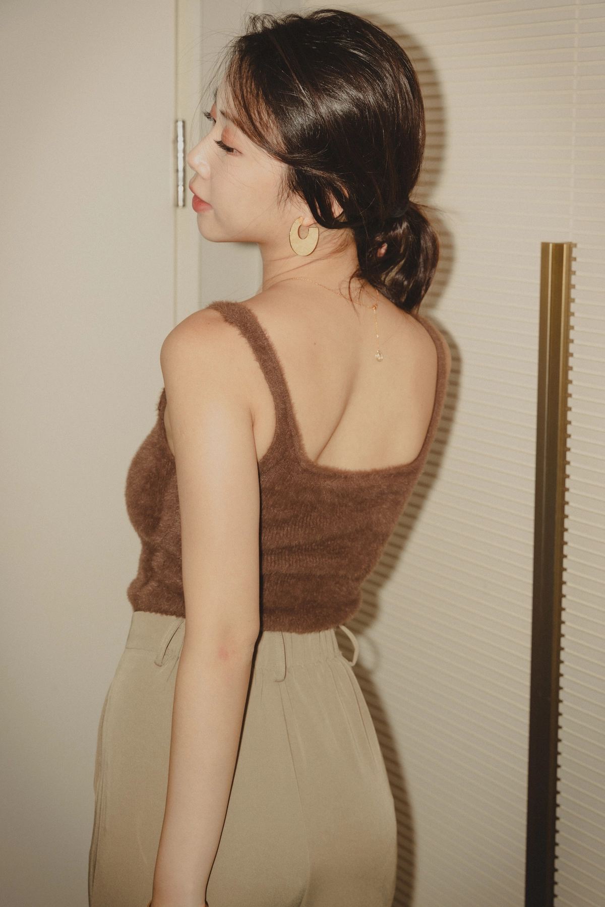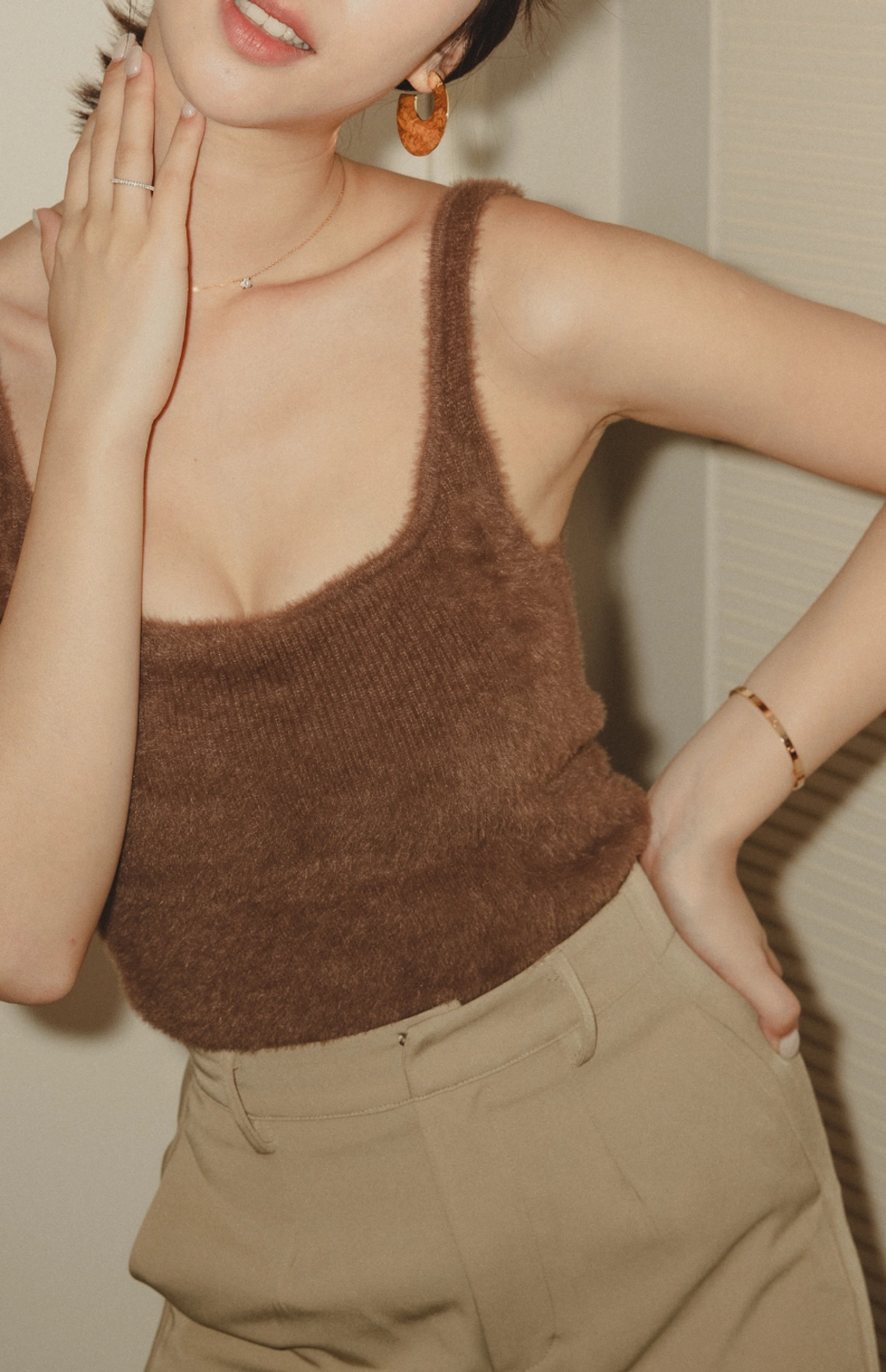 爆乳水貂毛細肩Bra Top-咖