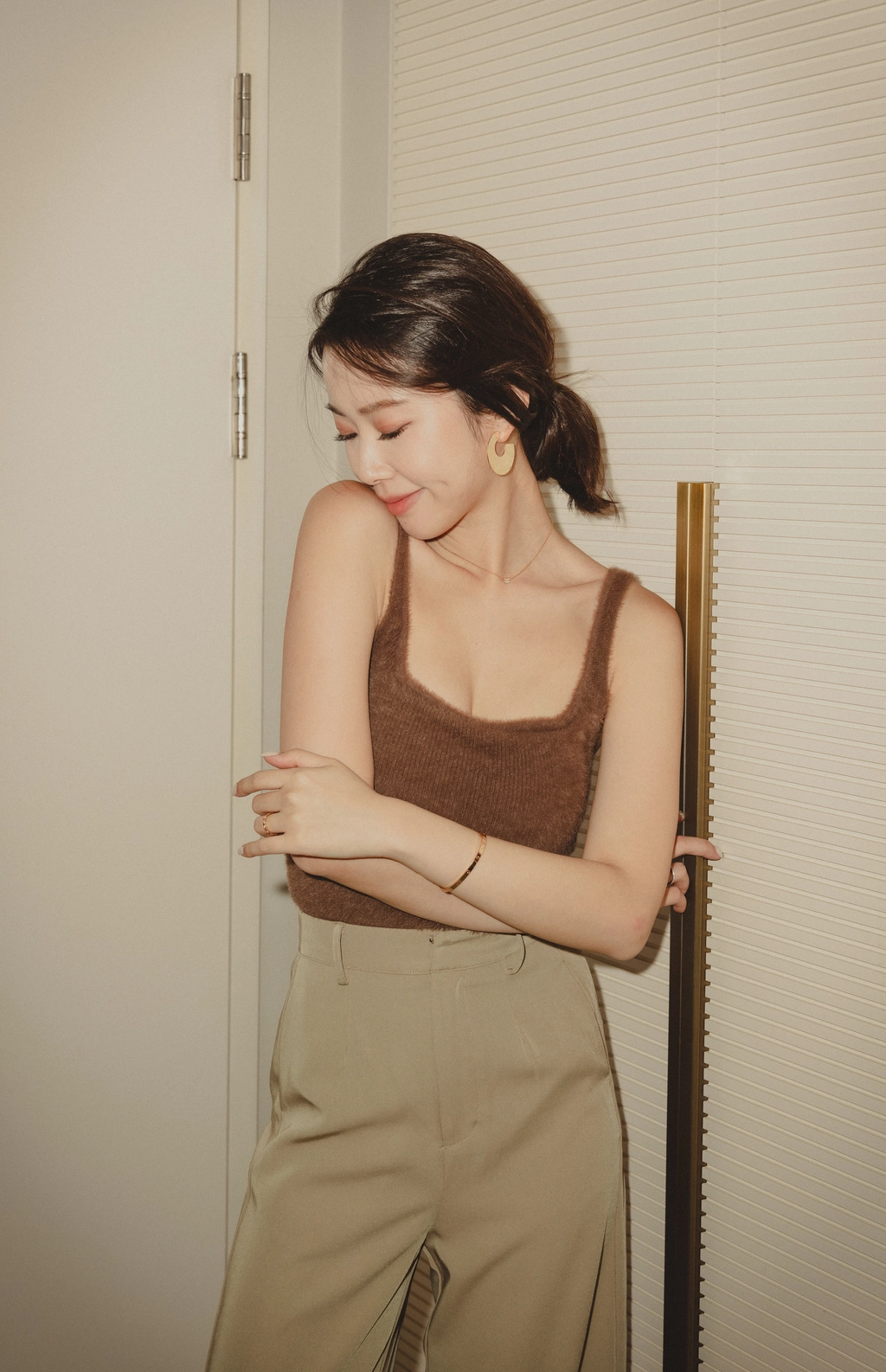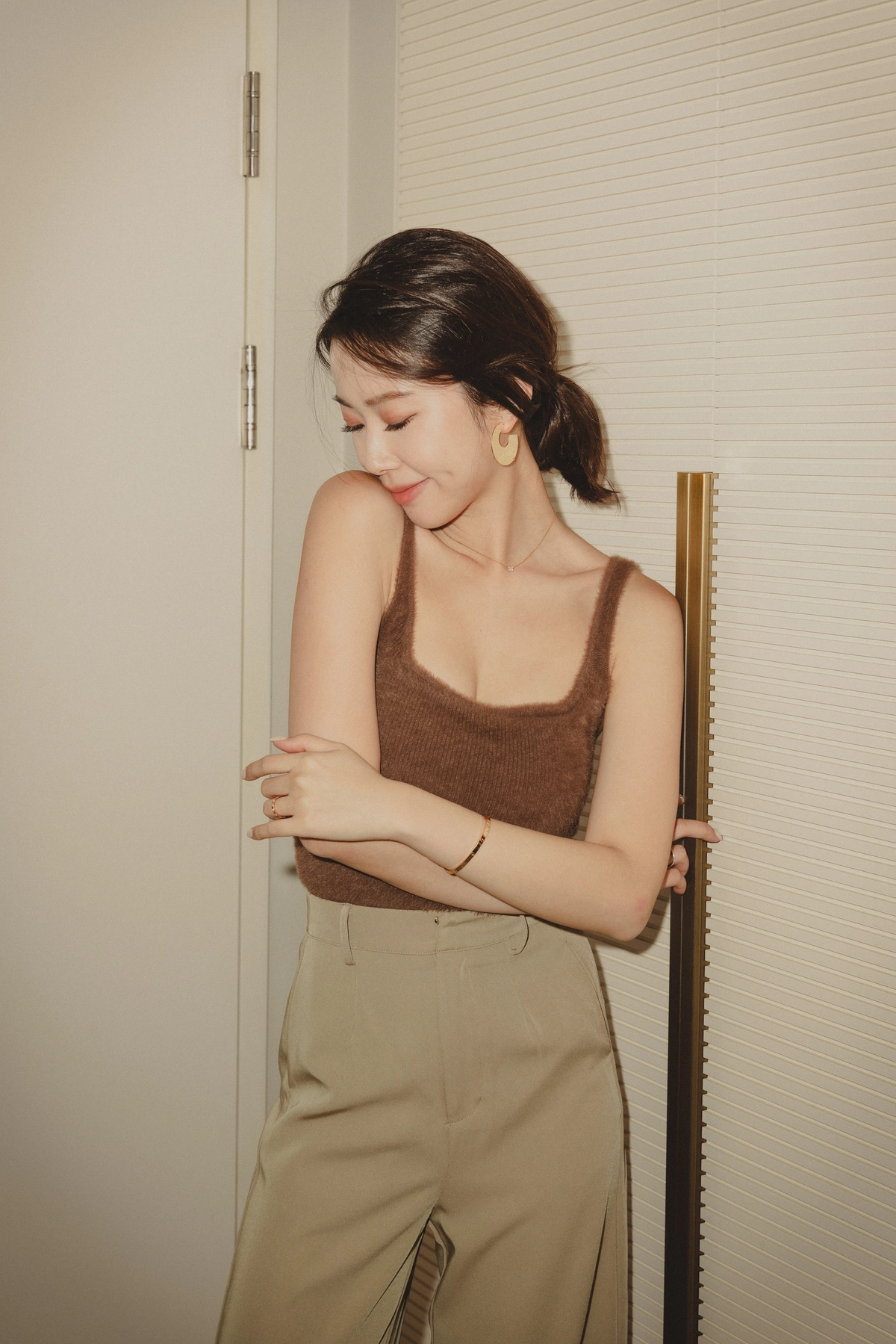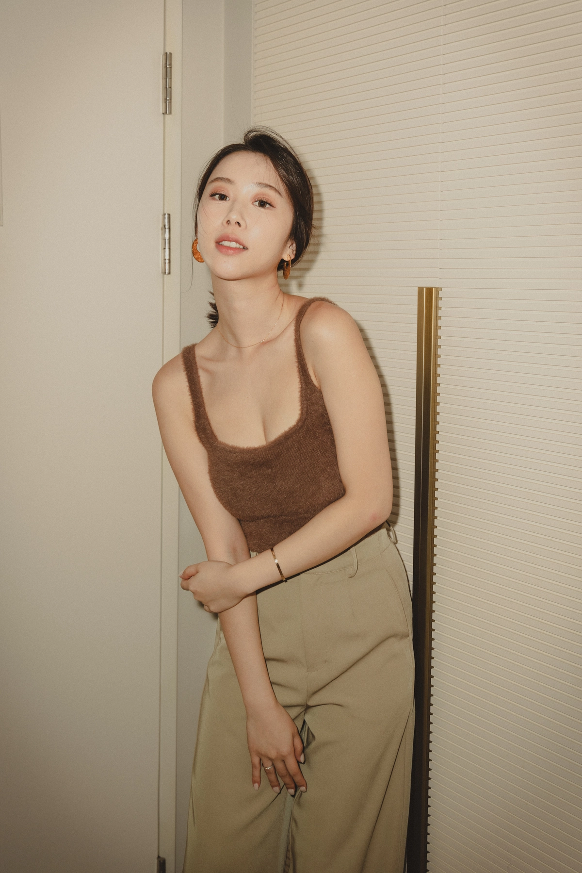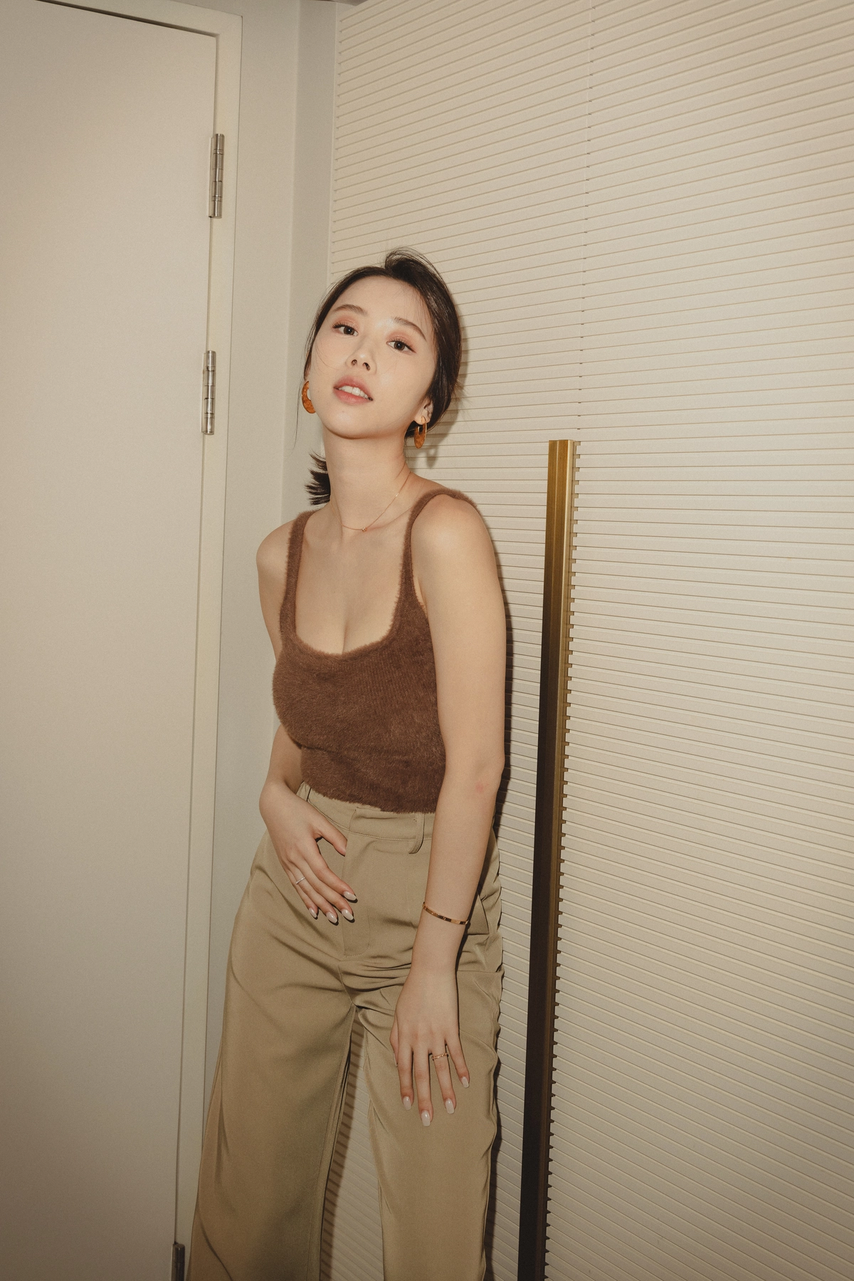 爆乳水貂毛細肩Bra Top-咖