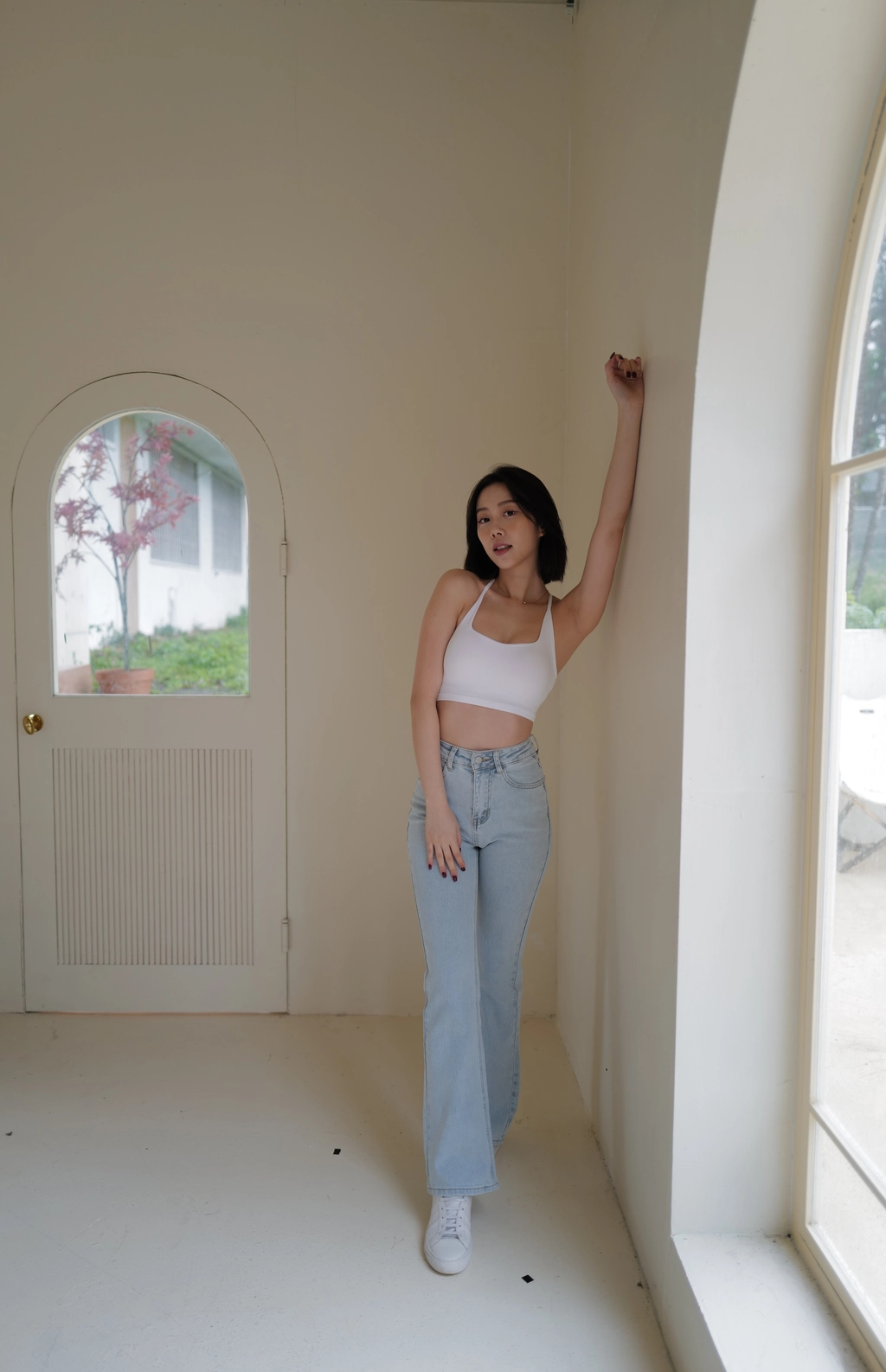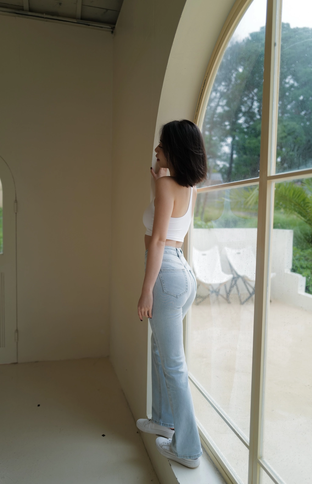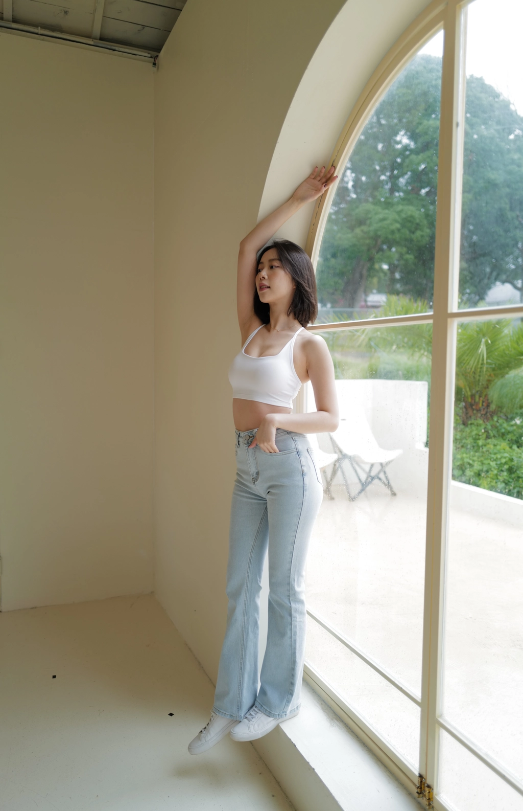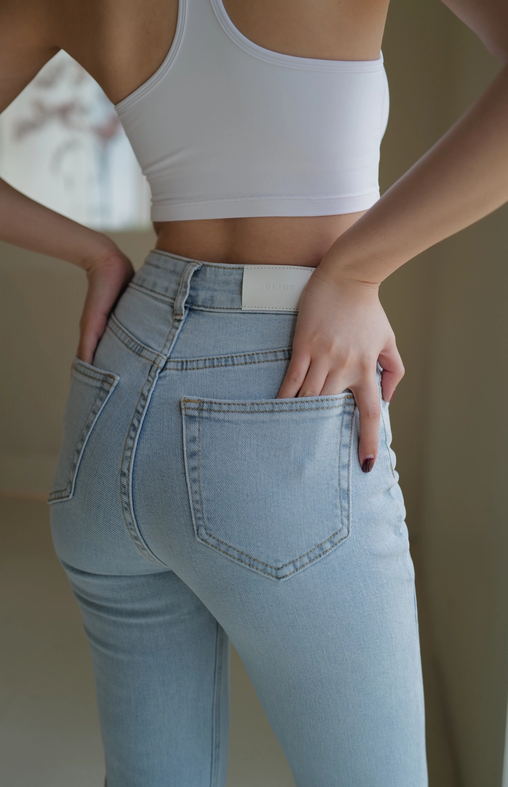 BEIGY自訂款-高腰修身牛仔喇叭褲-淺藍