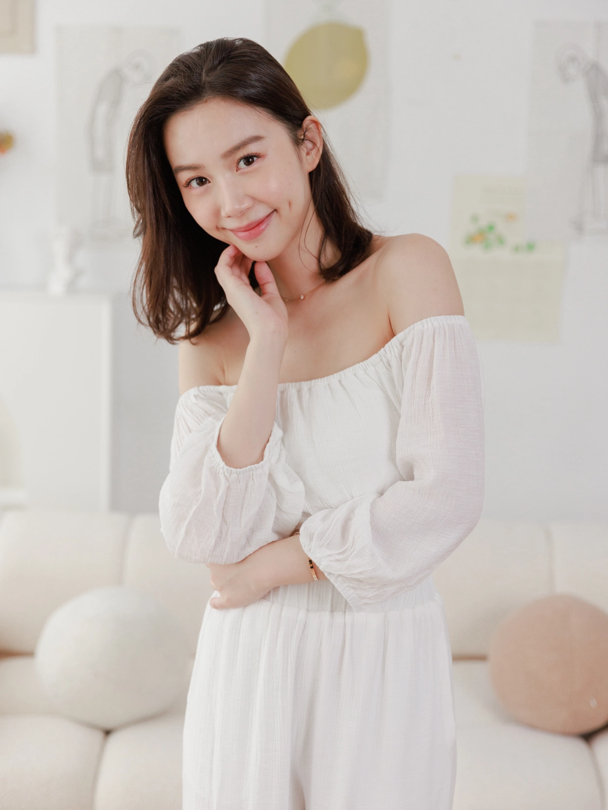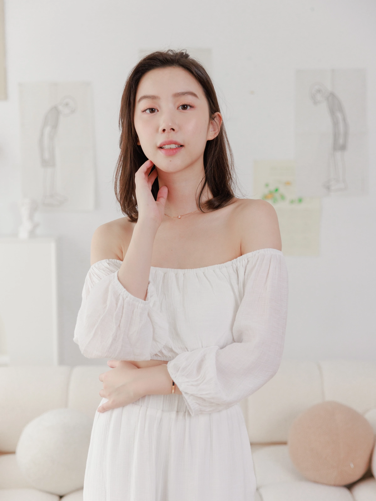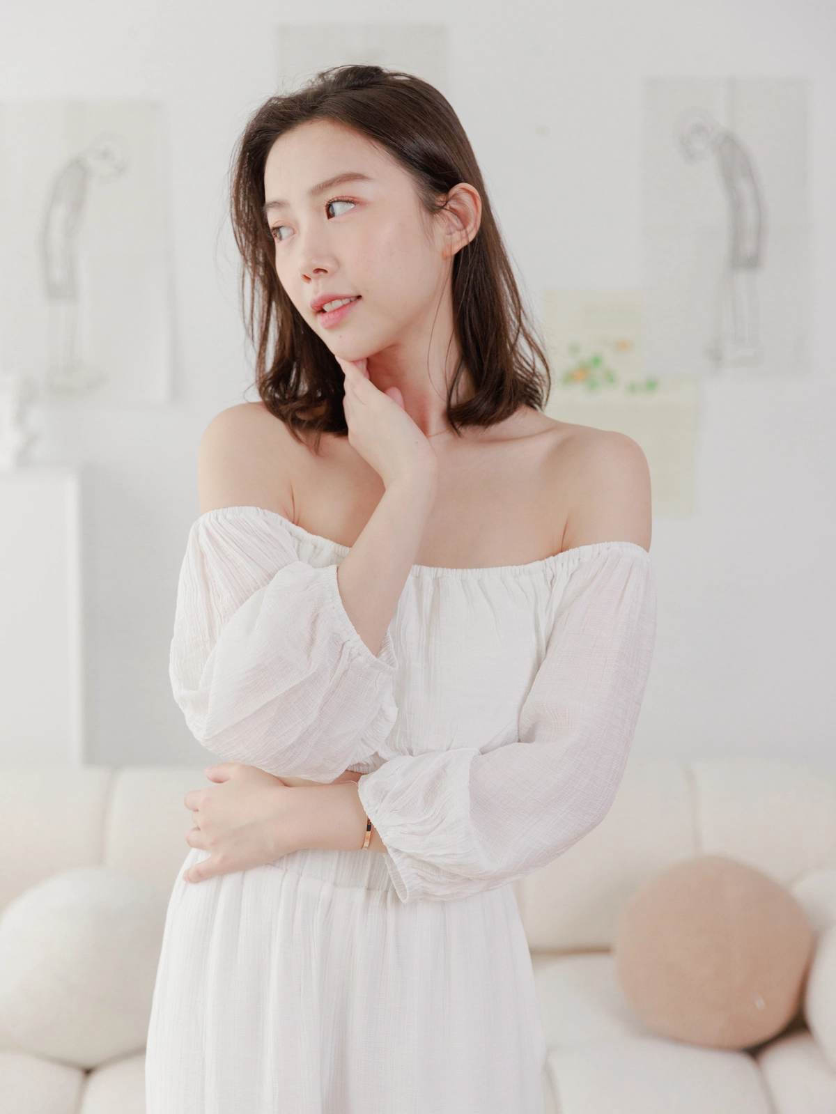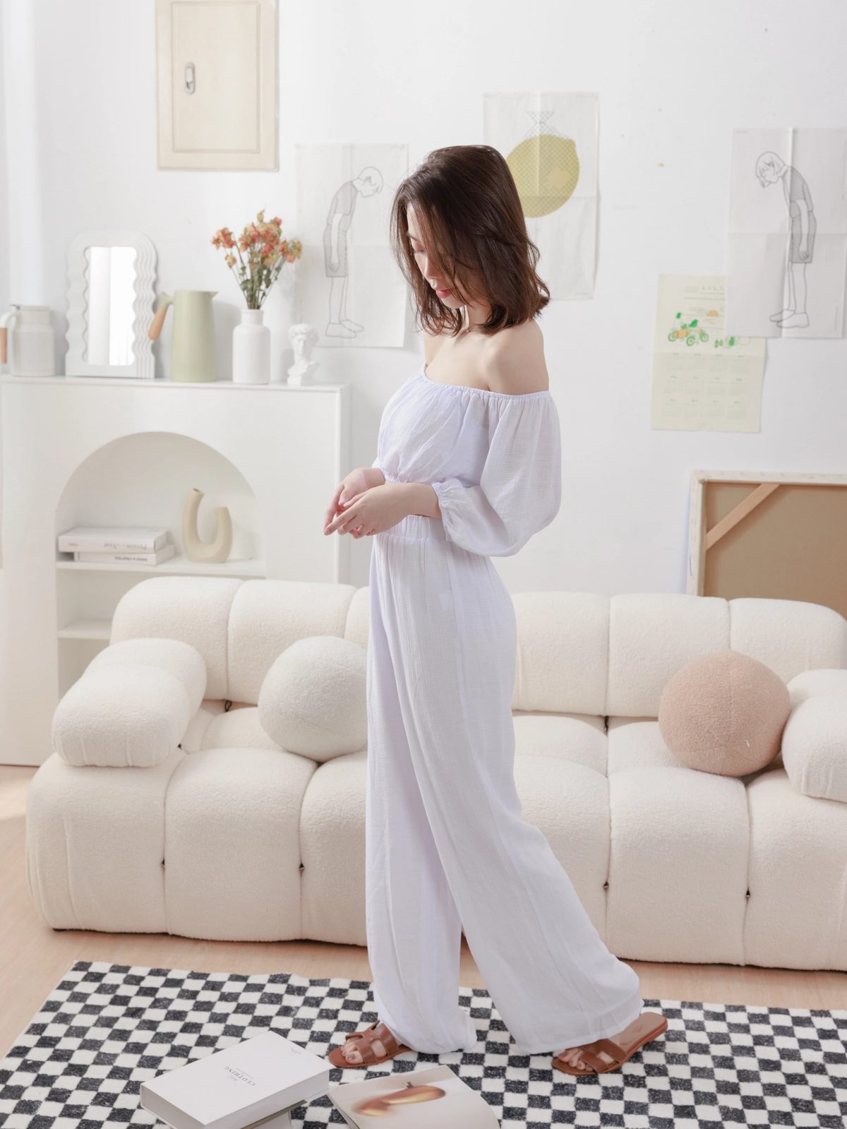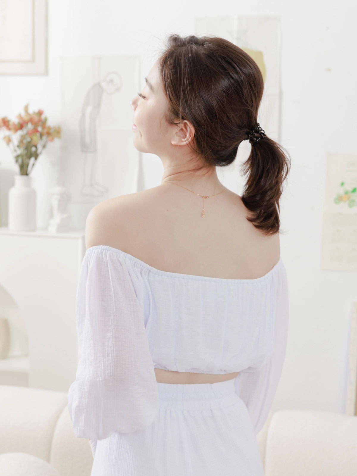 夏日女神 棉麻一字領Bra Top Set-白