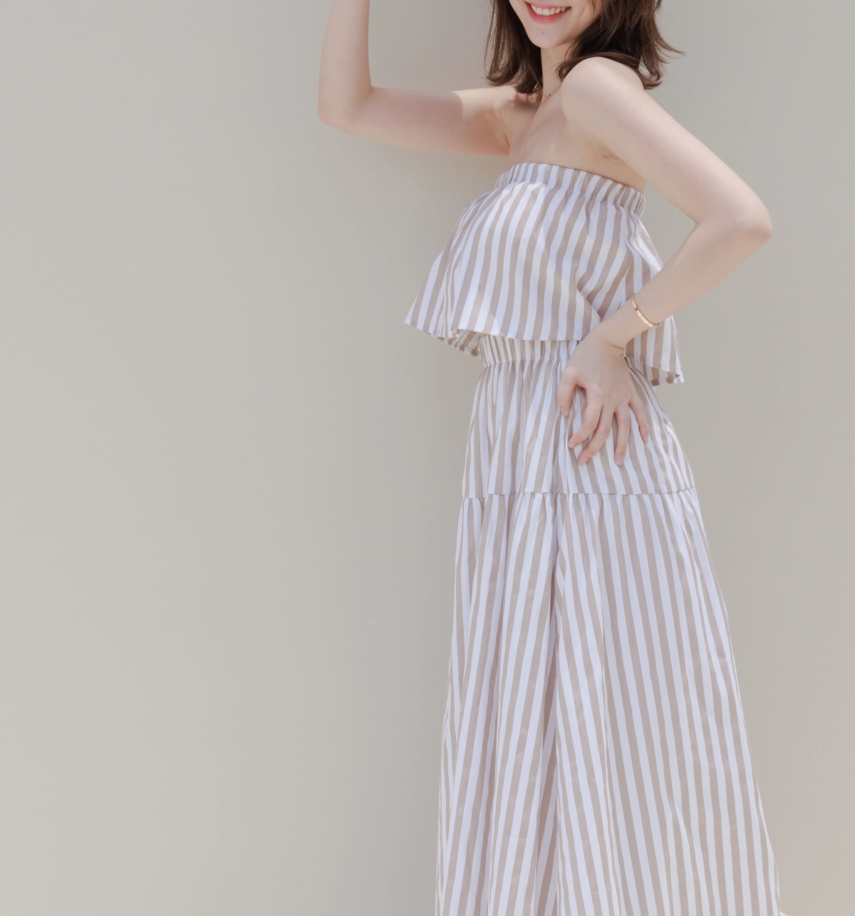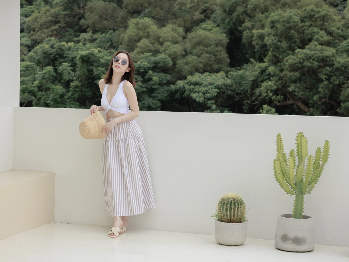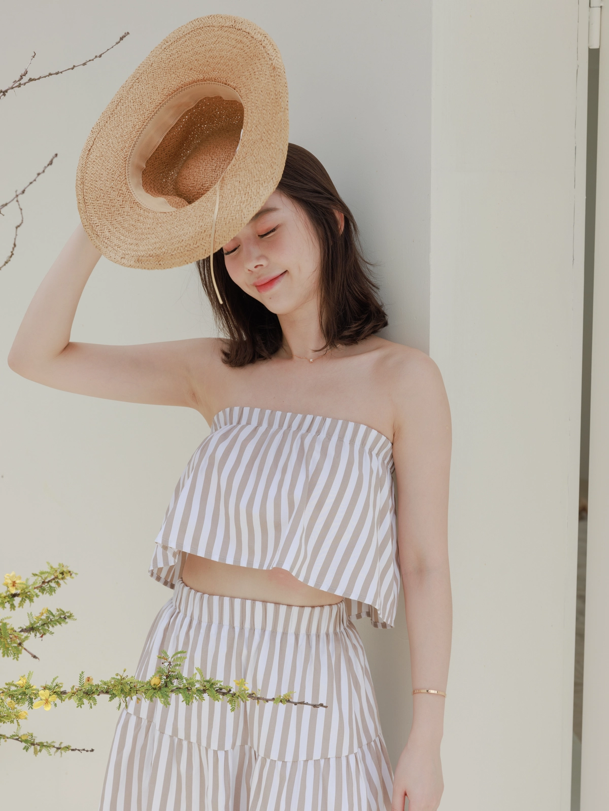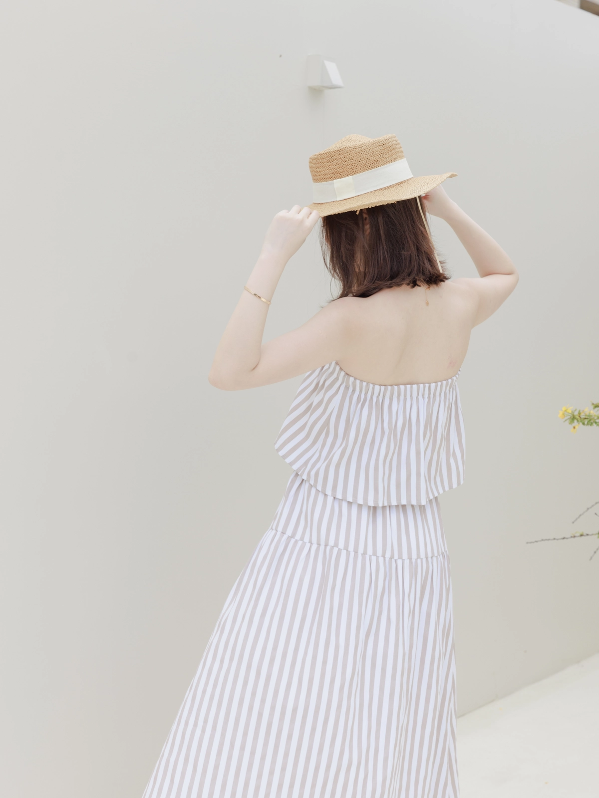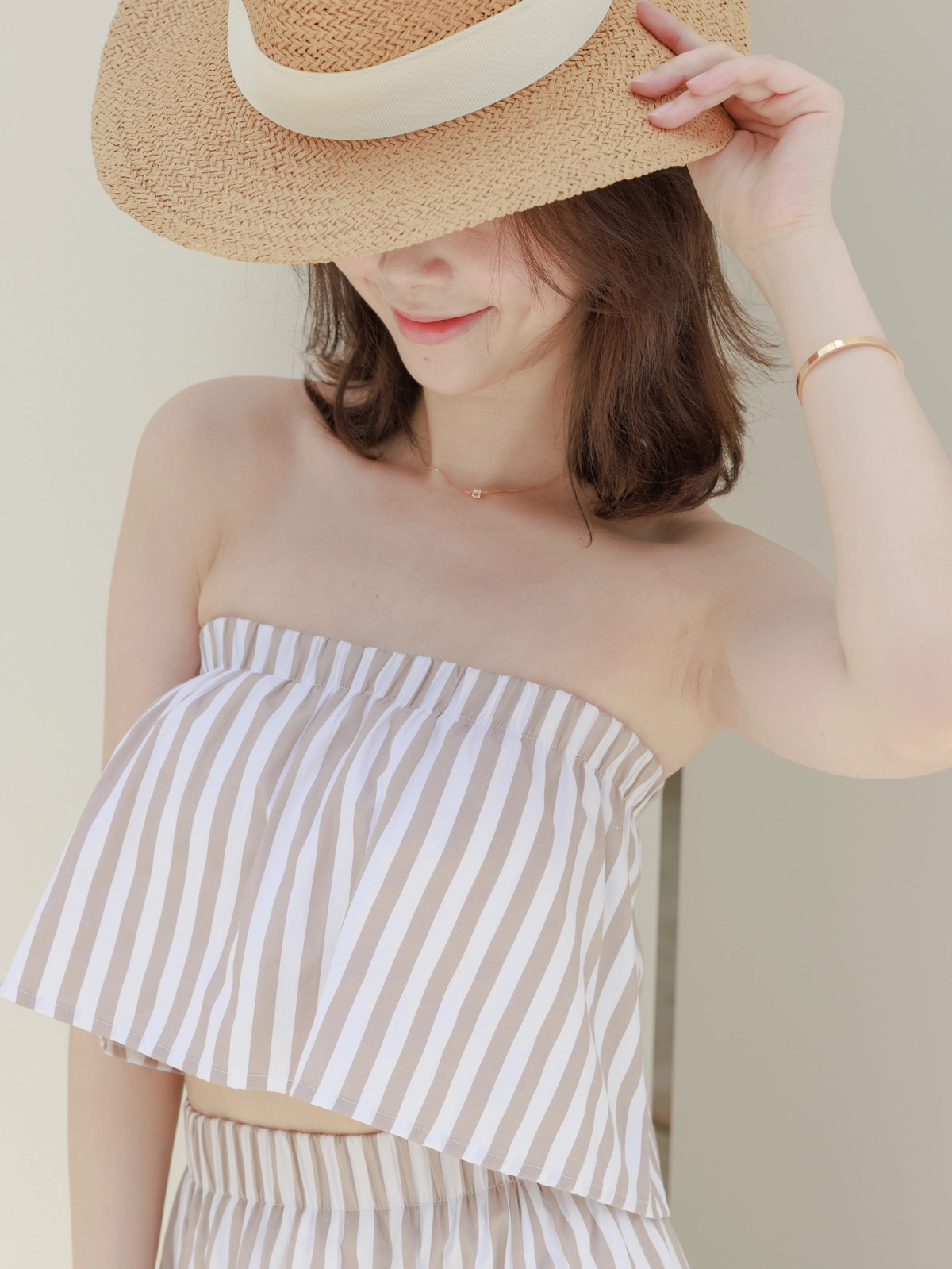 渡假必備 條紋Bra Top Set-咖