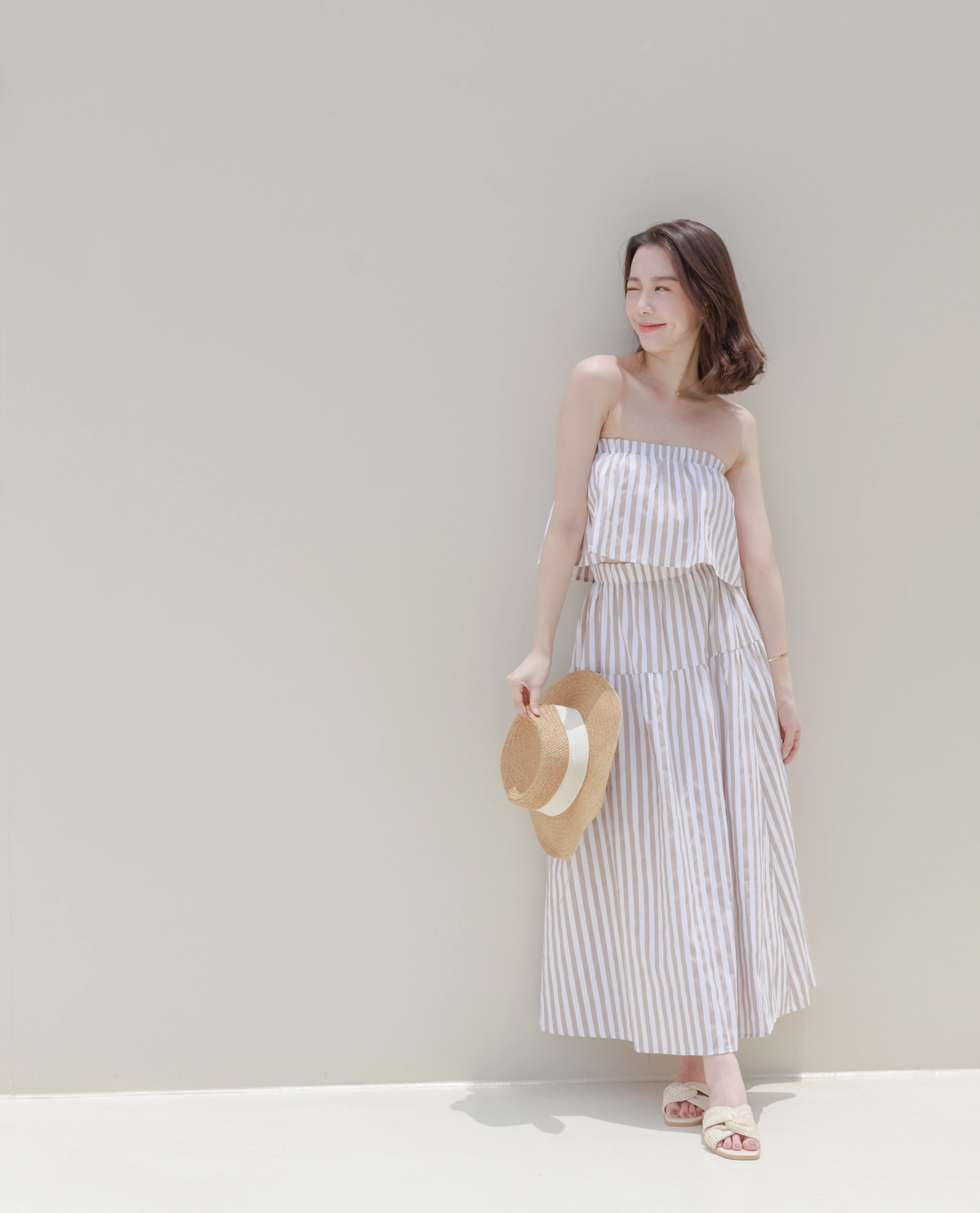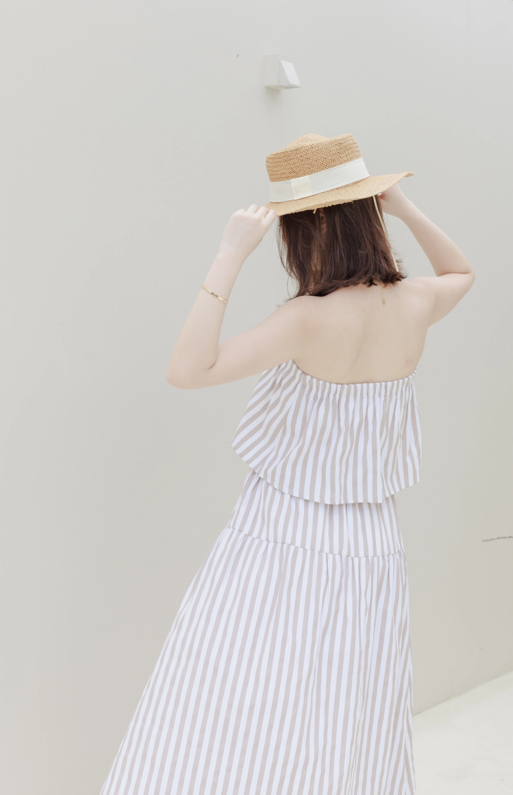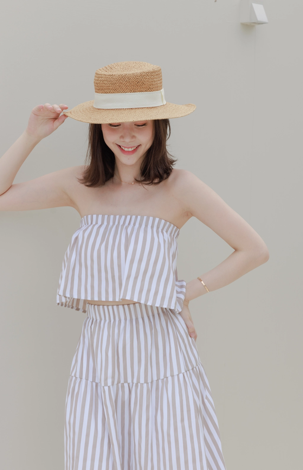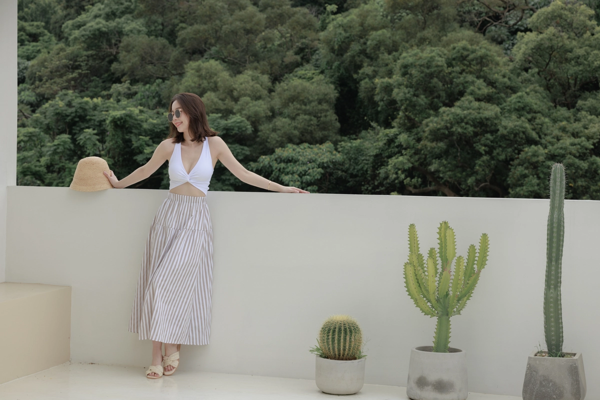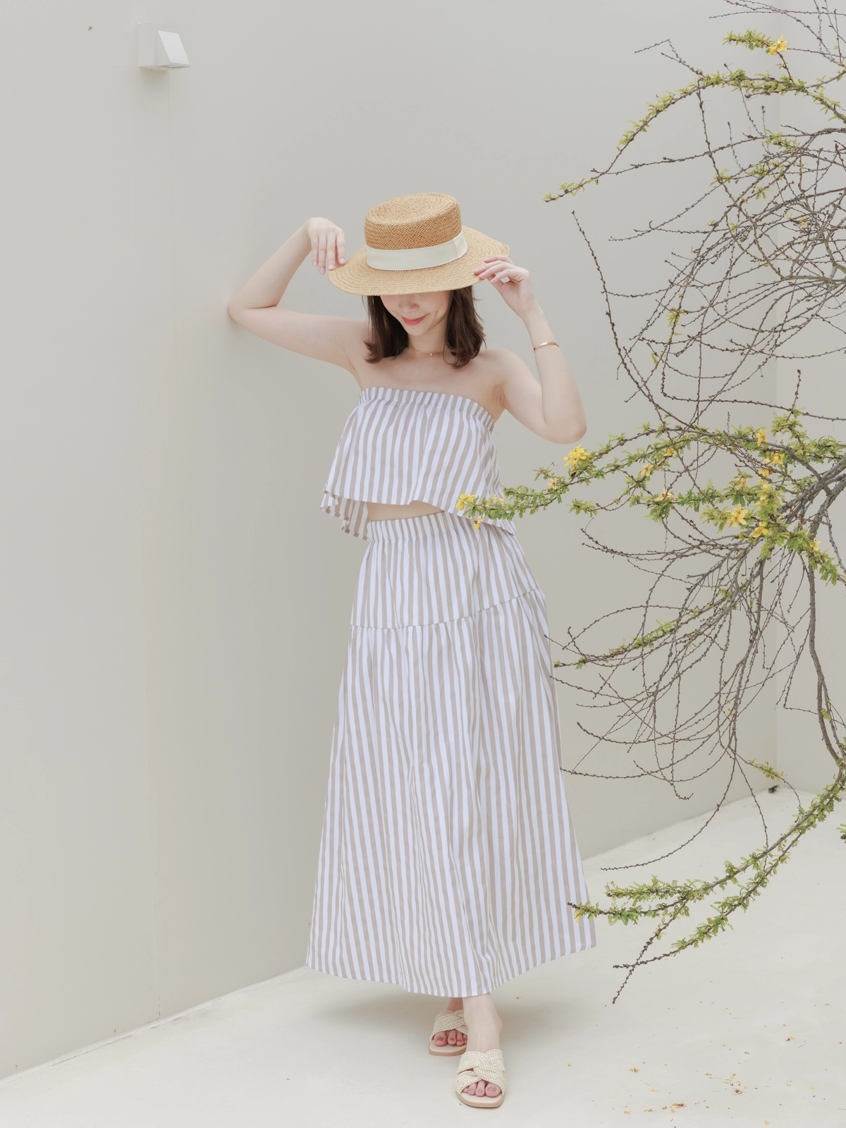 渡假必備 條紋Bra Top Set-咖