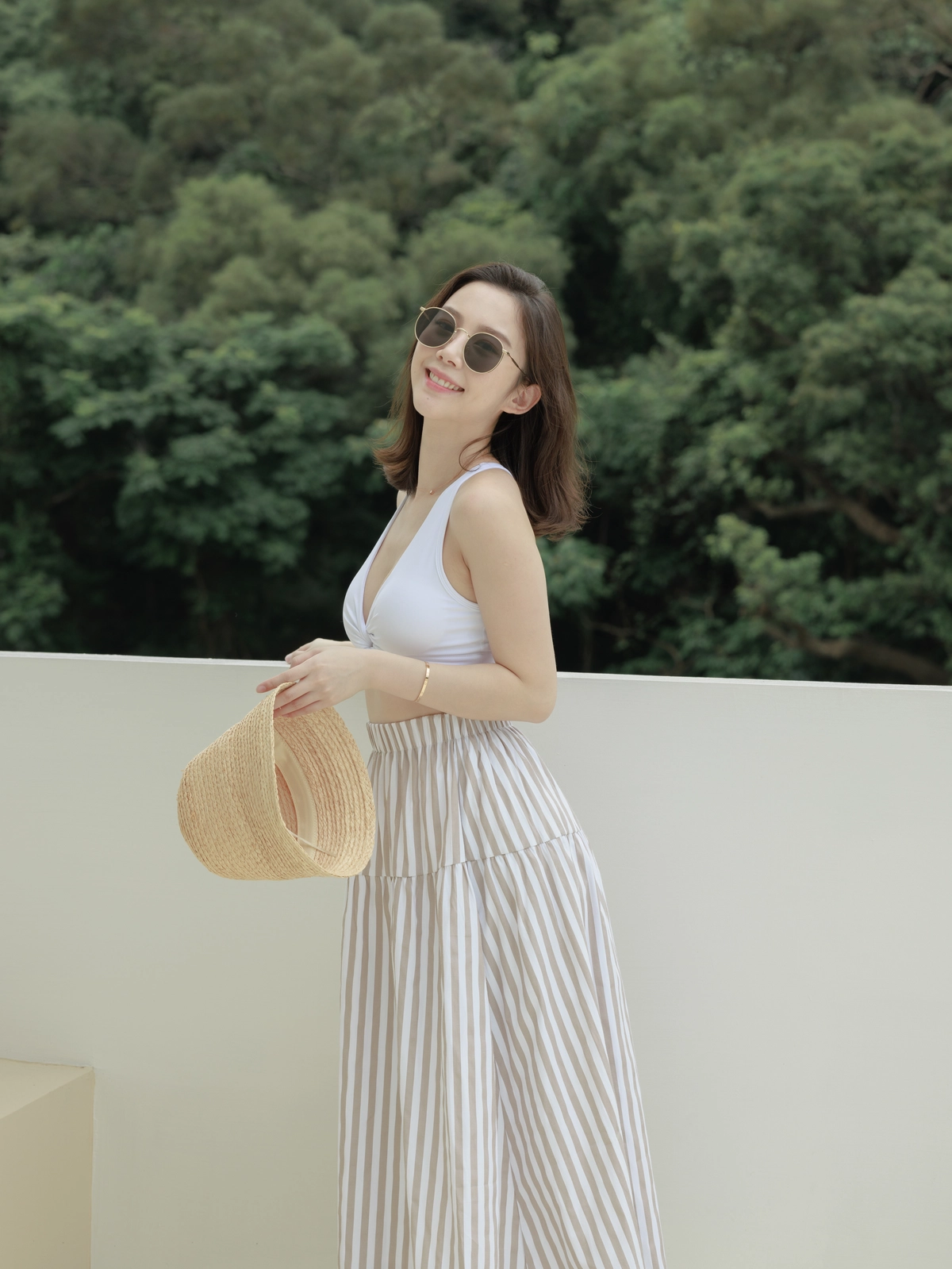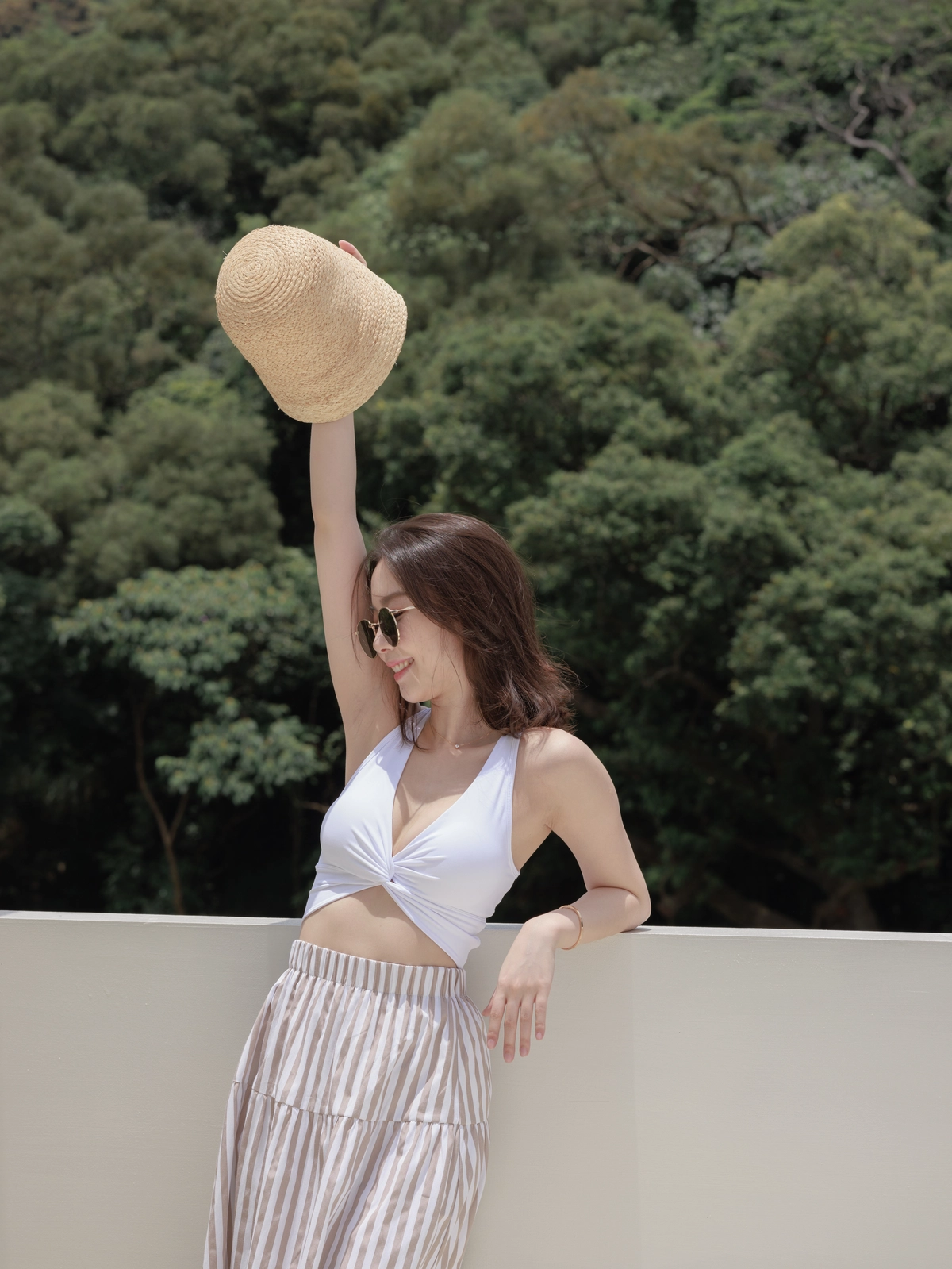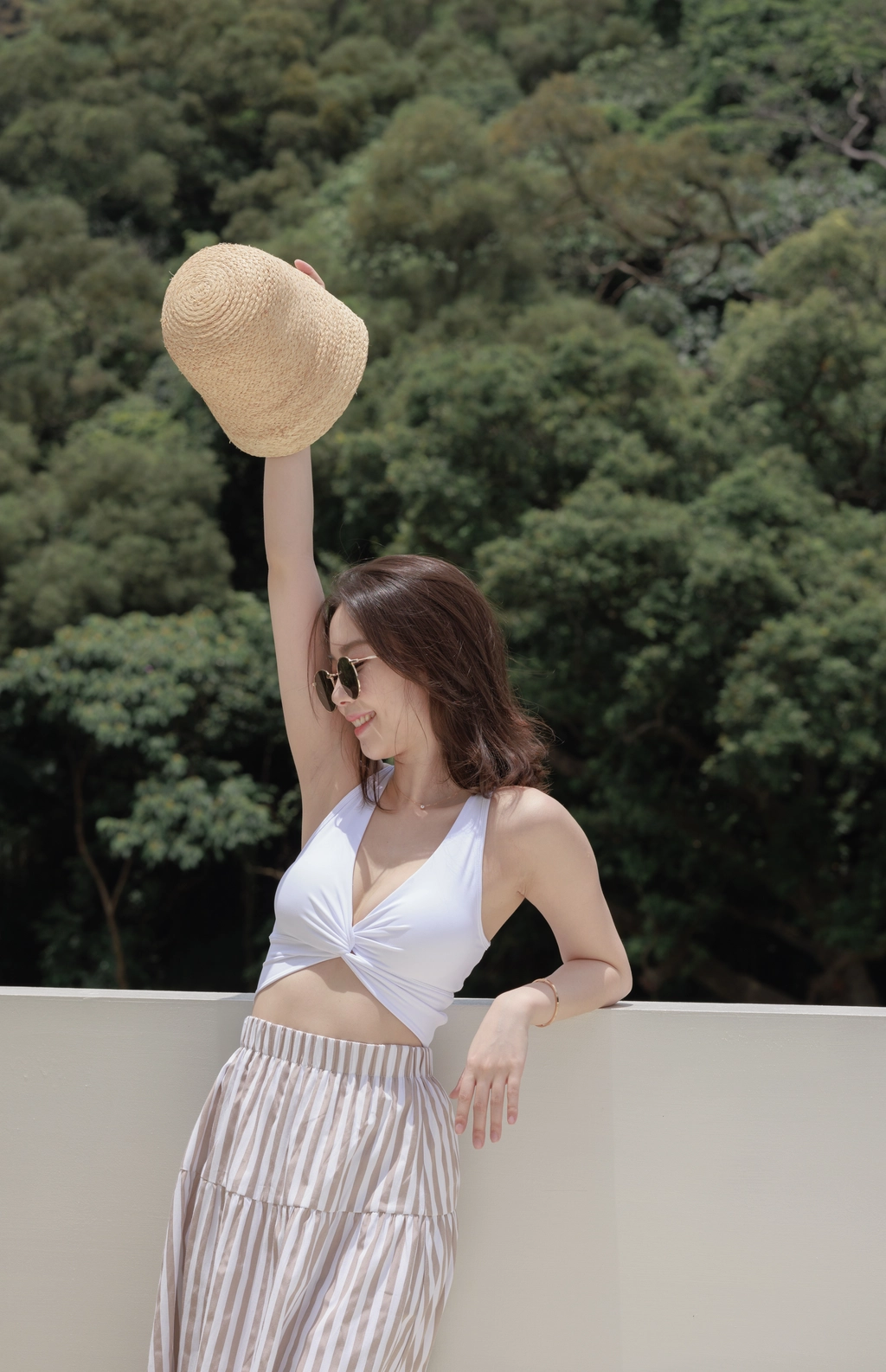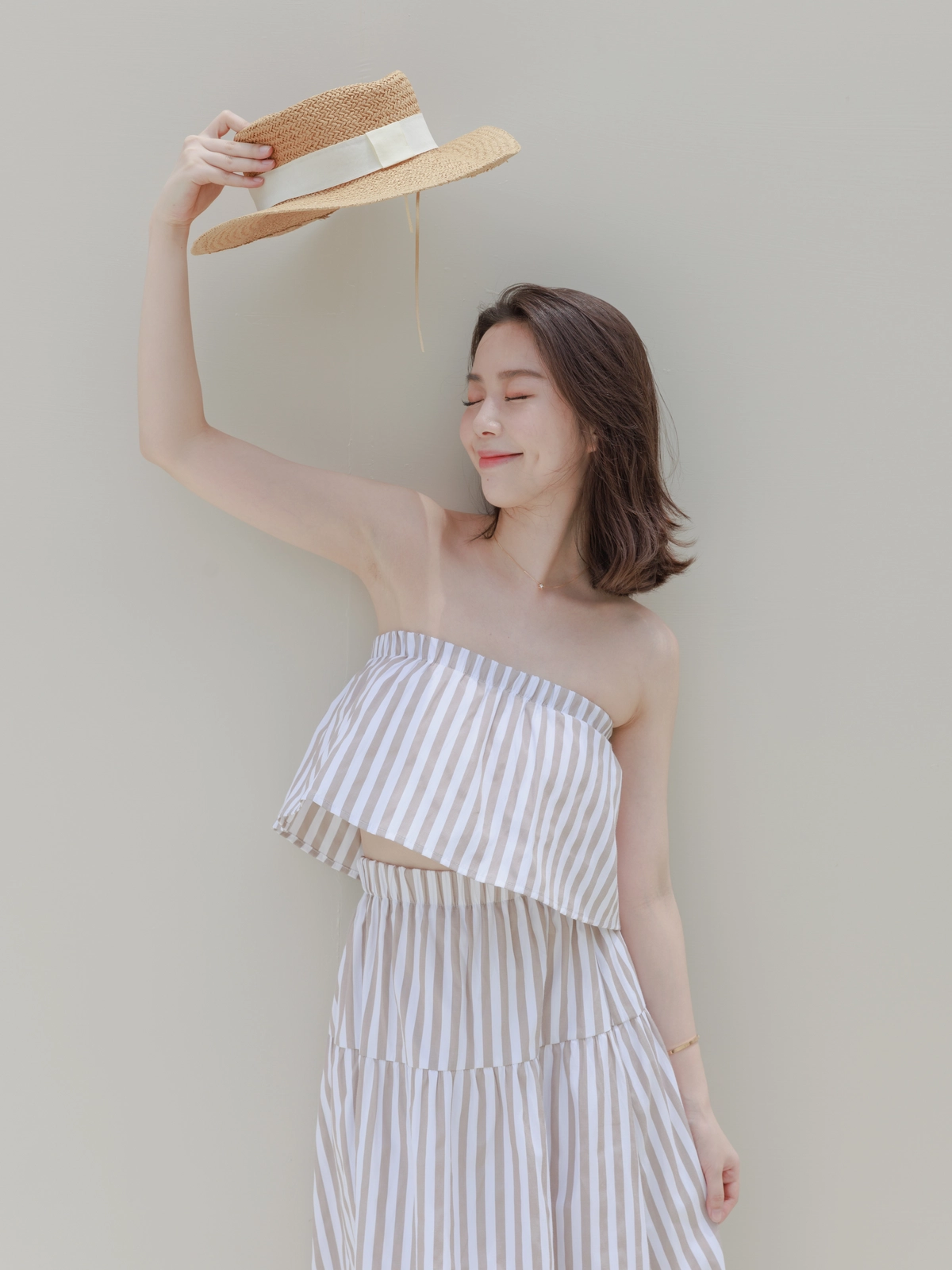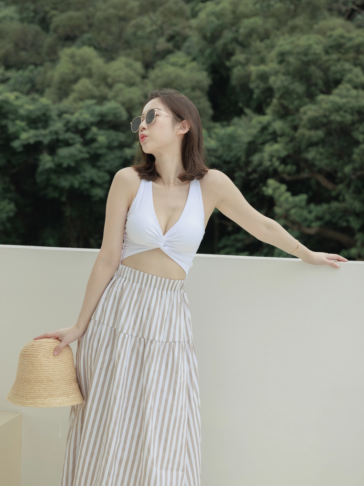 渡假必備 條紋Bra Top Set-咖