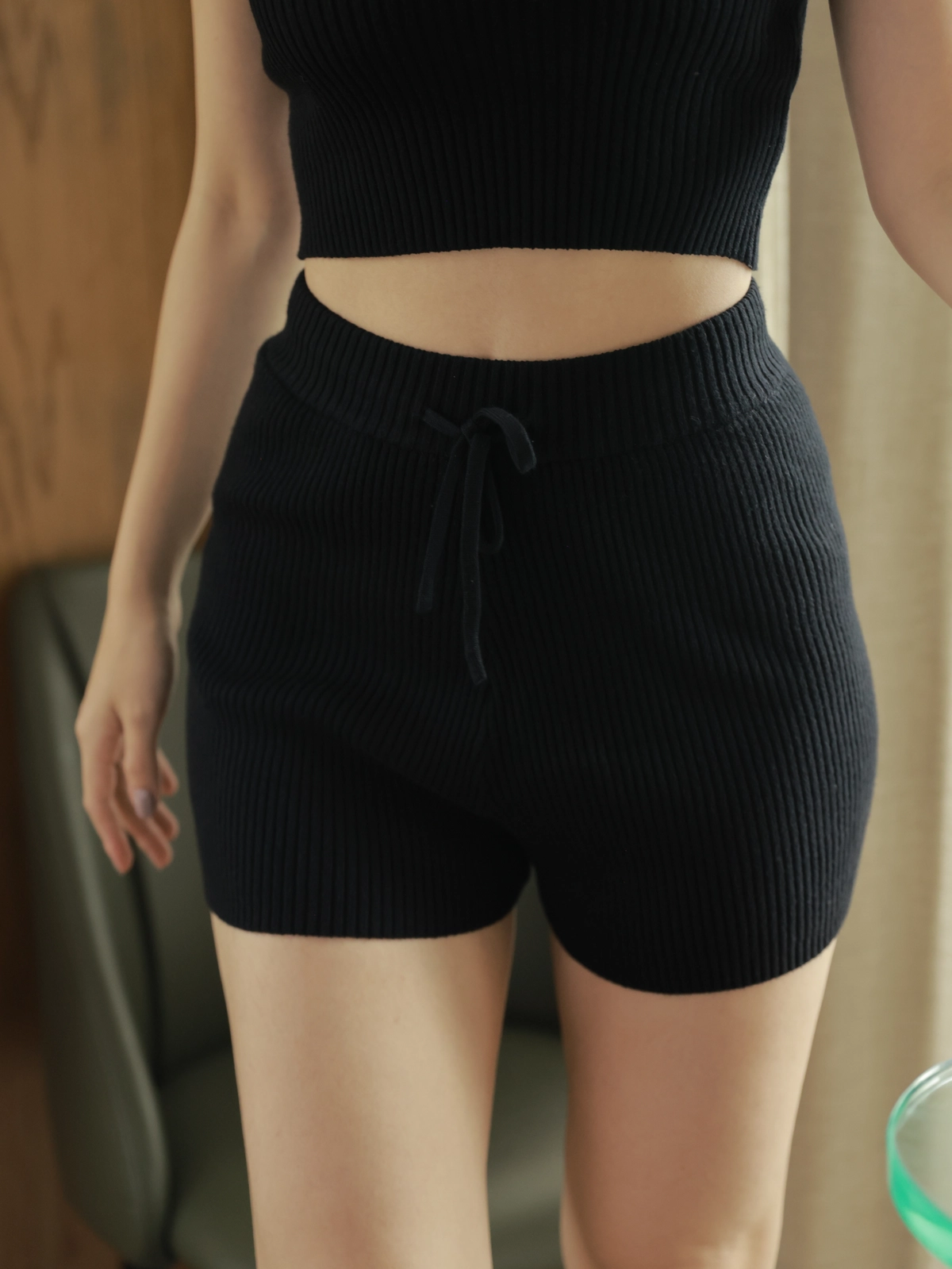 不顯跨!針織坑條短褲-黑