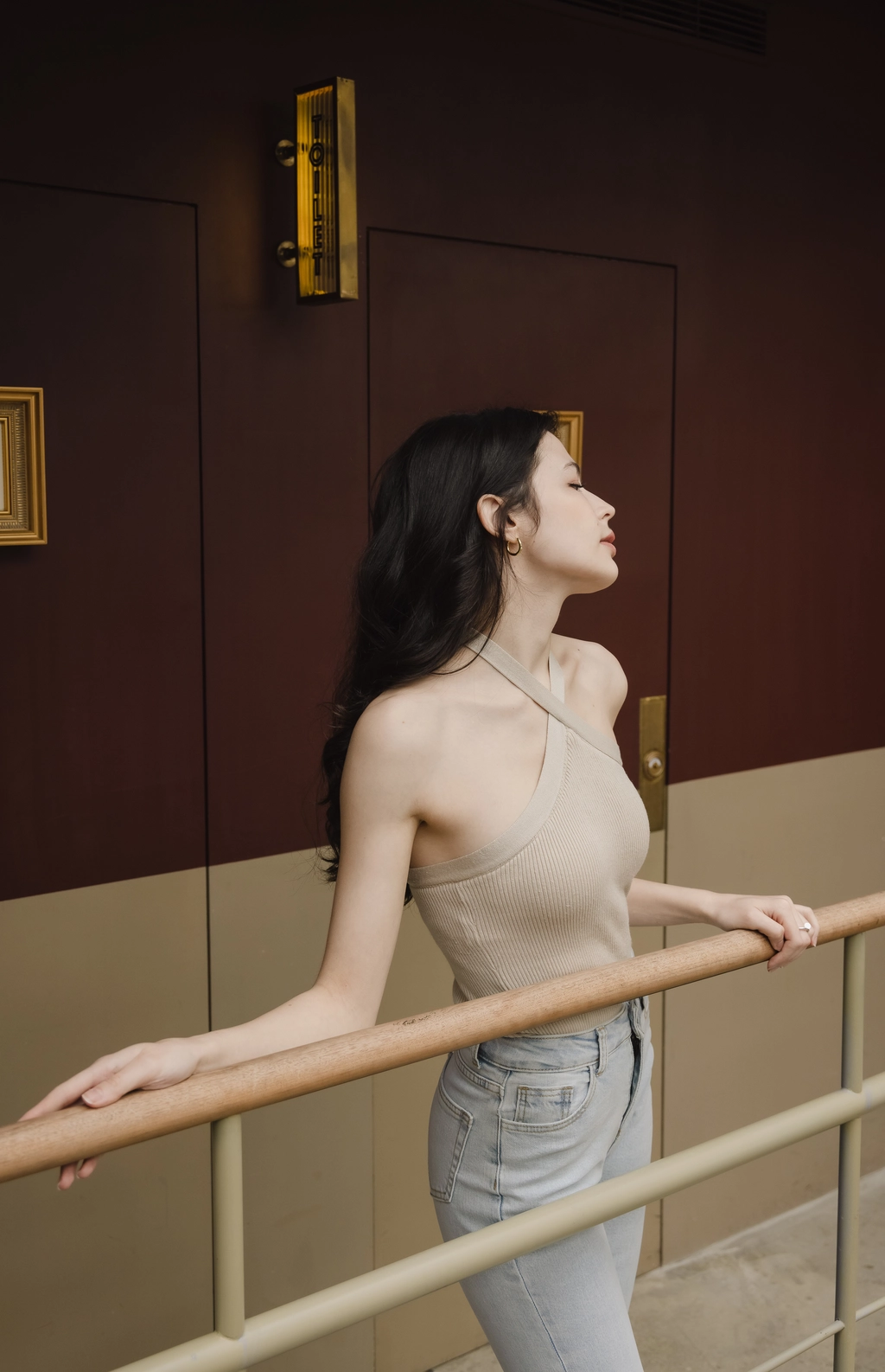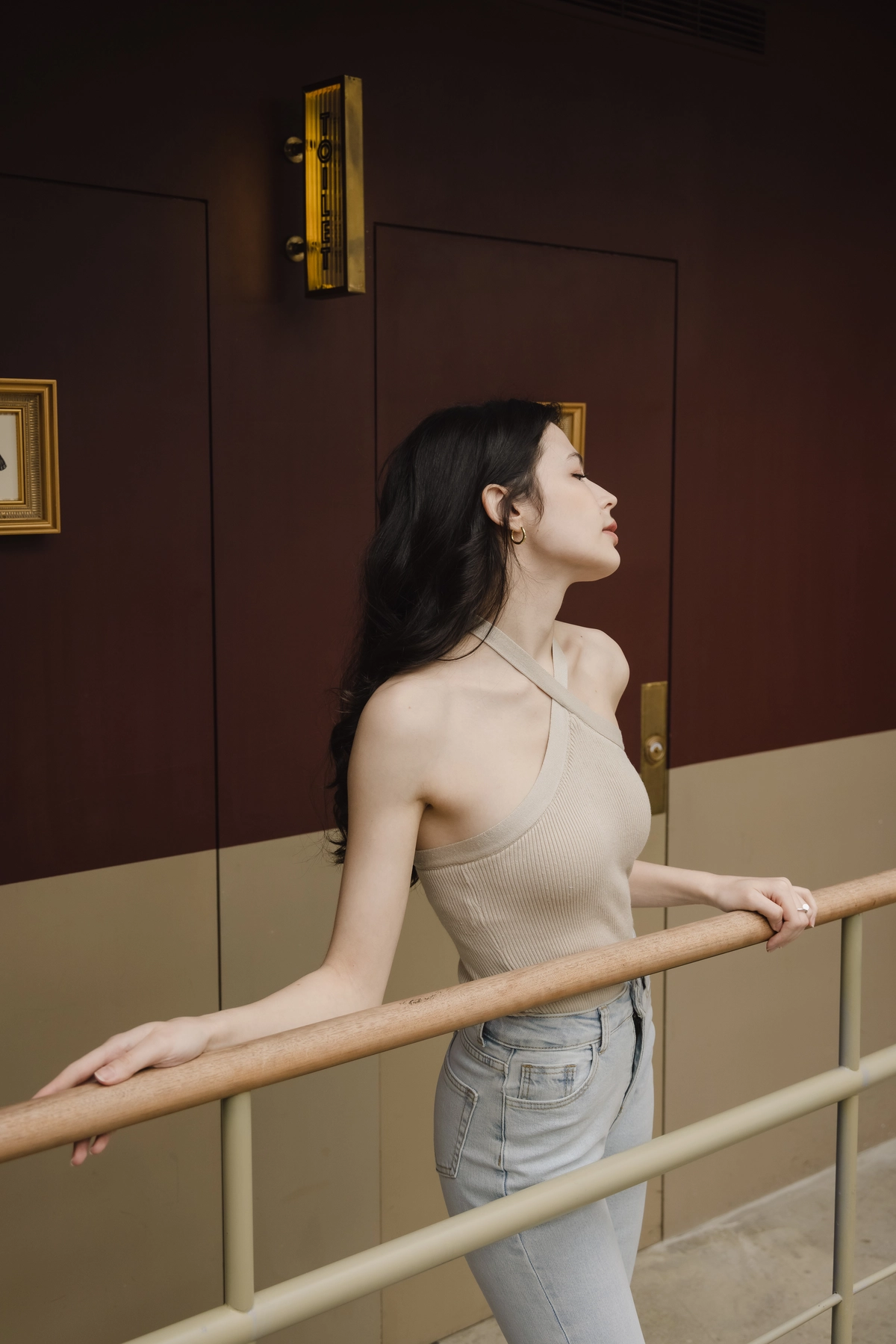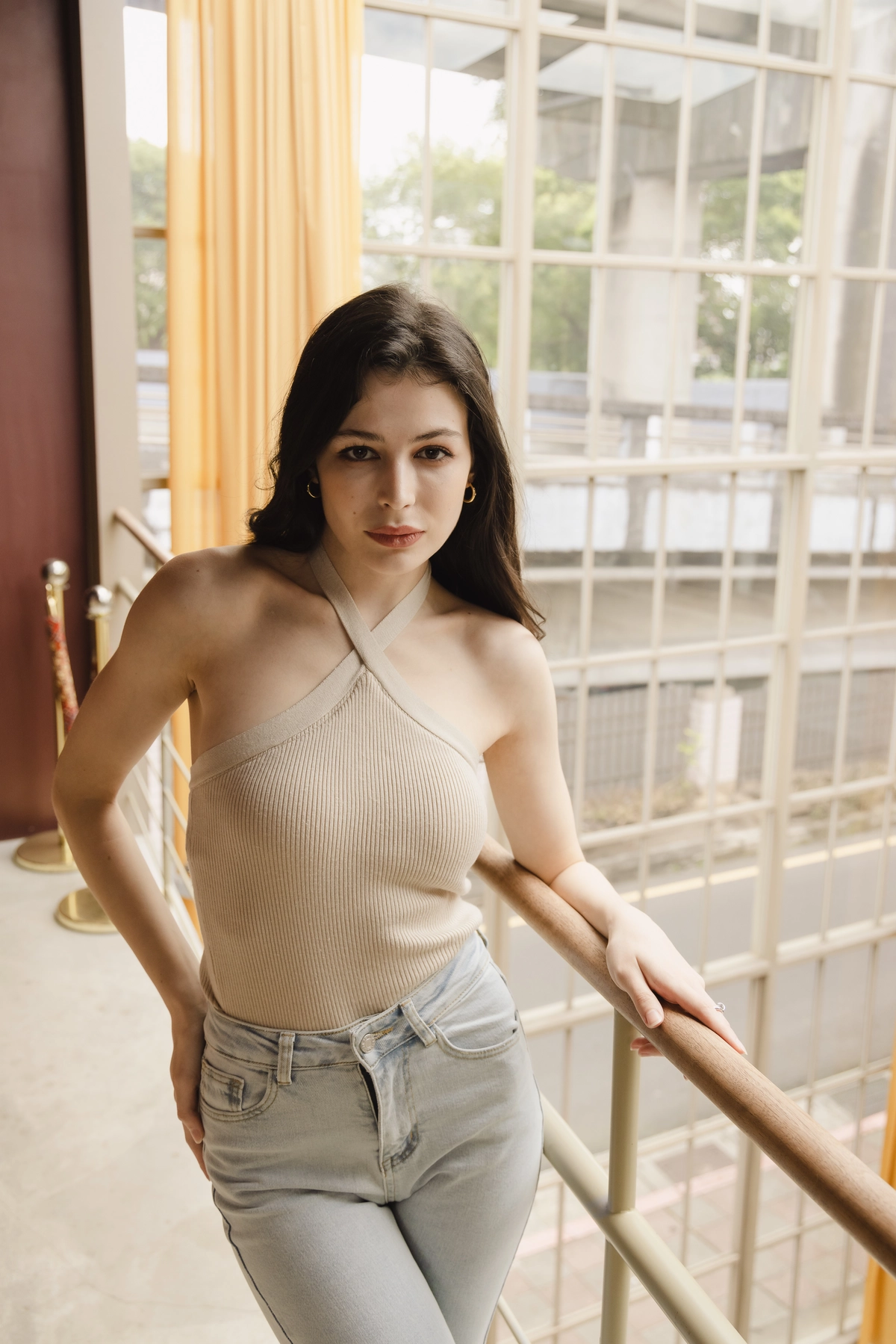 綁帶繞脖針織Bra Top-奶綠