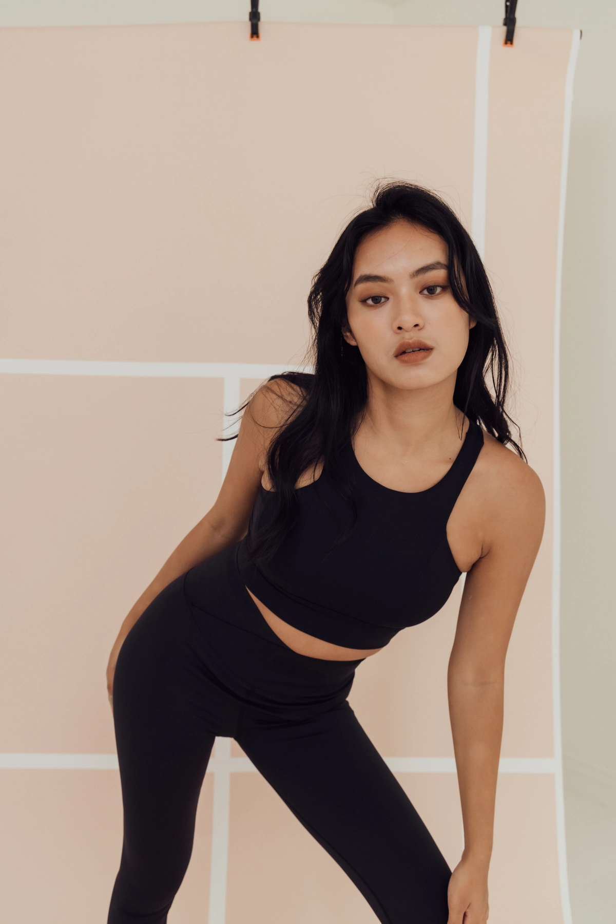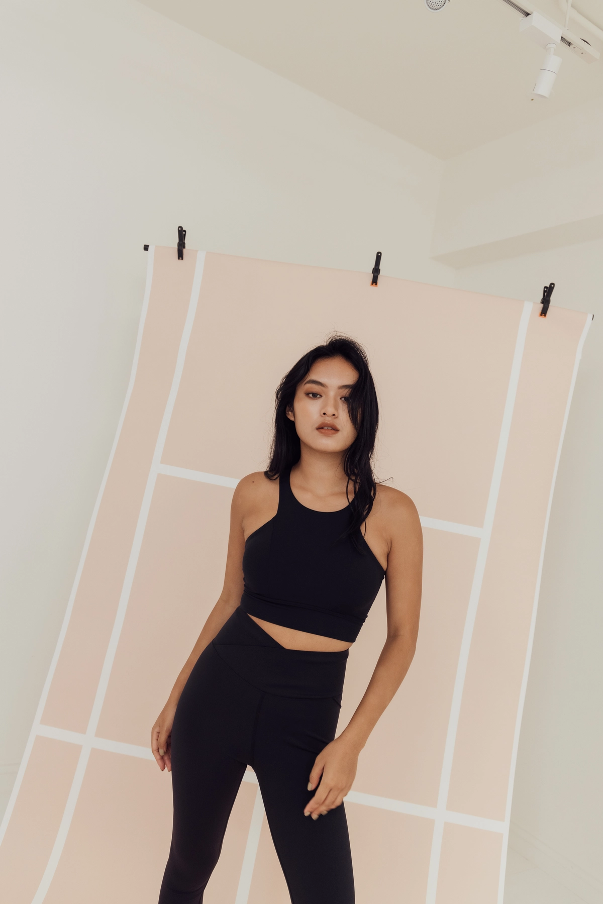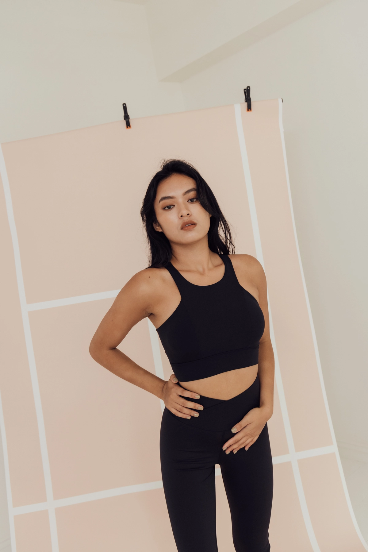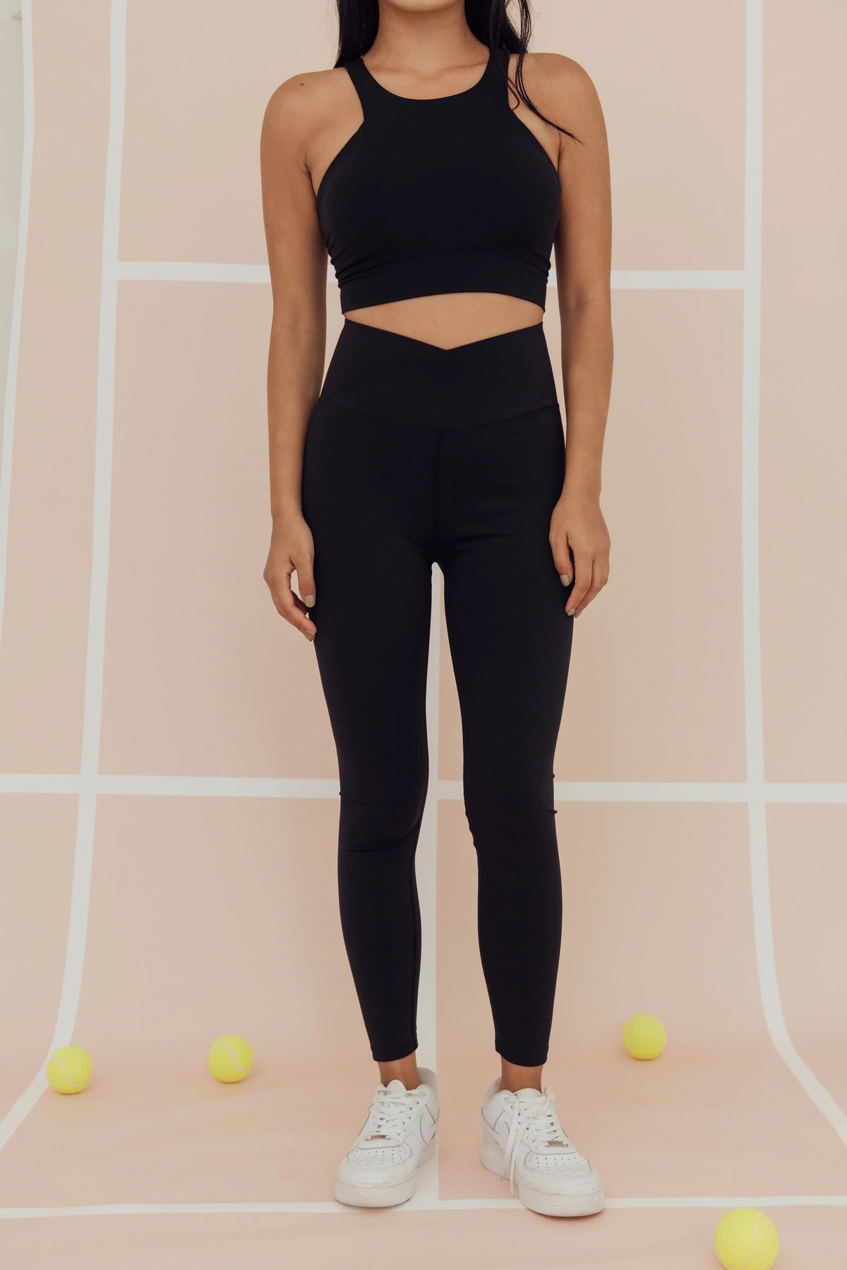 極高腰長腿交叉Leggings-黑