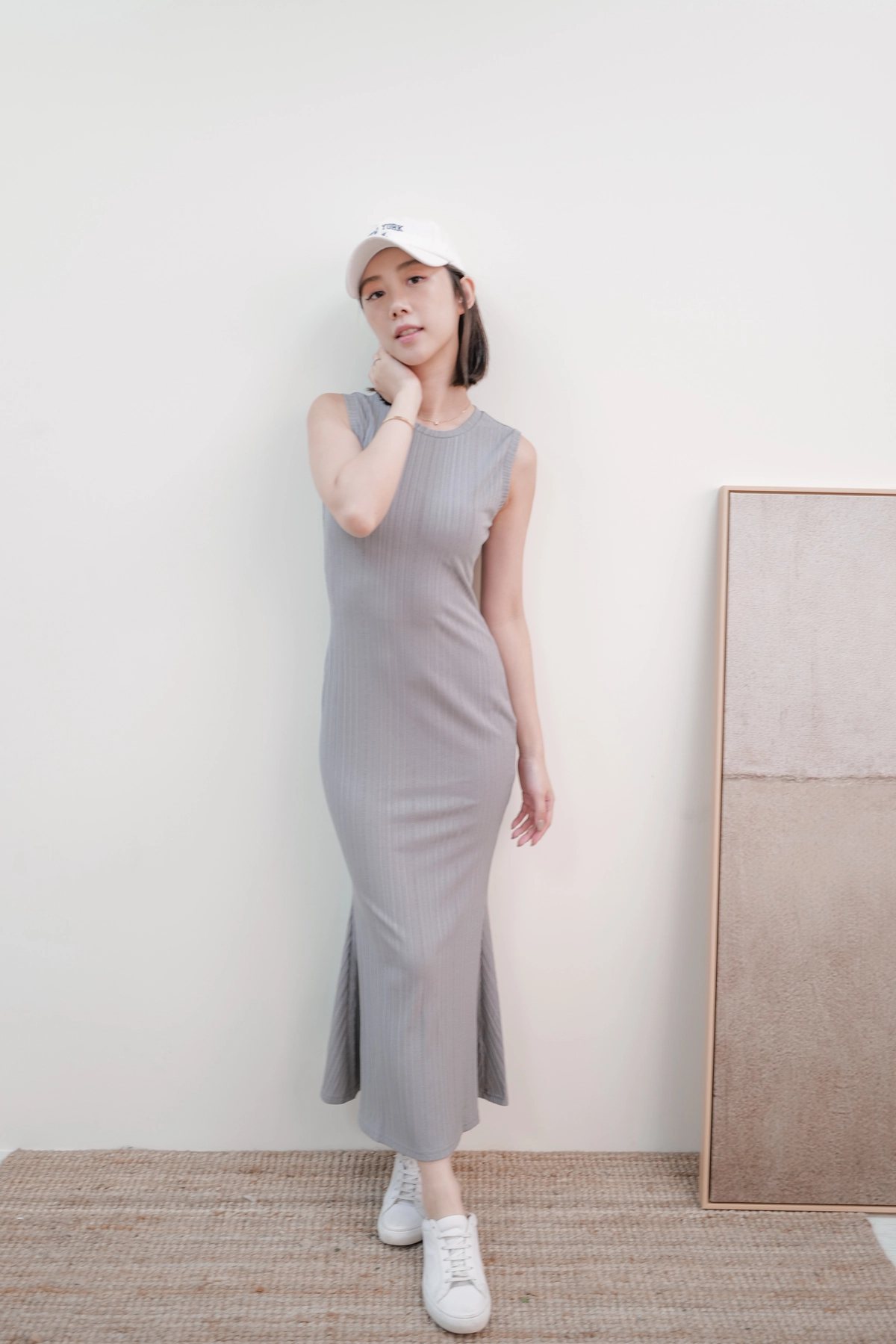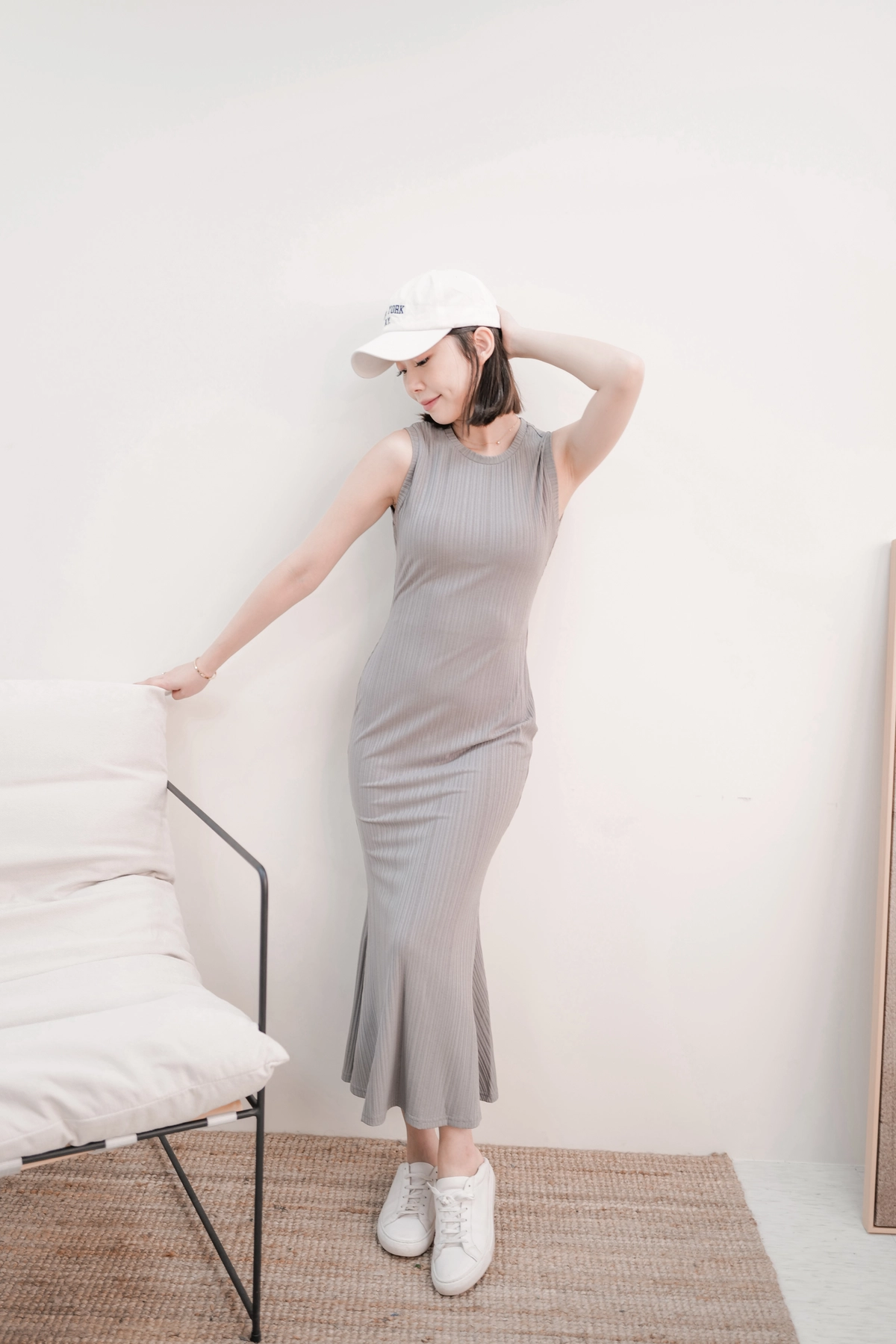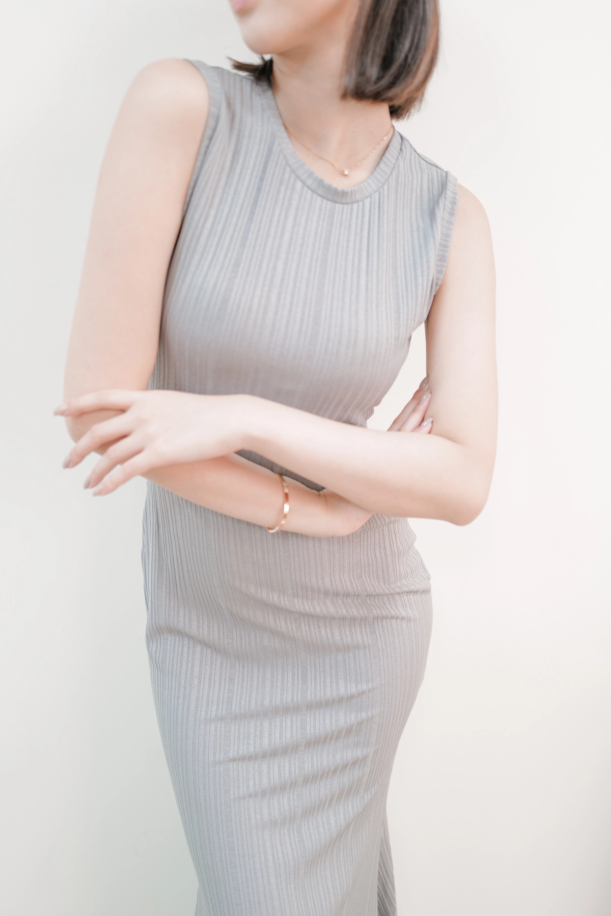 女神修身魚尾洋裝-灰