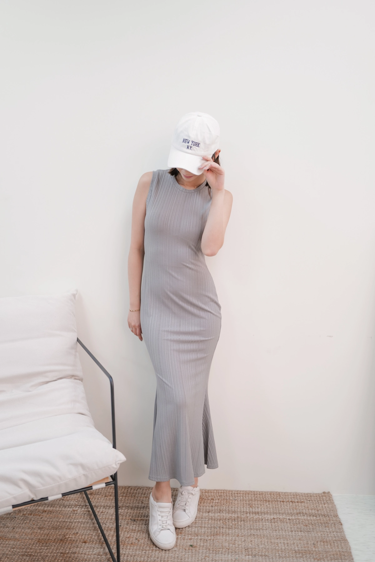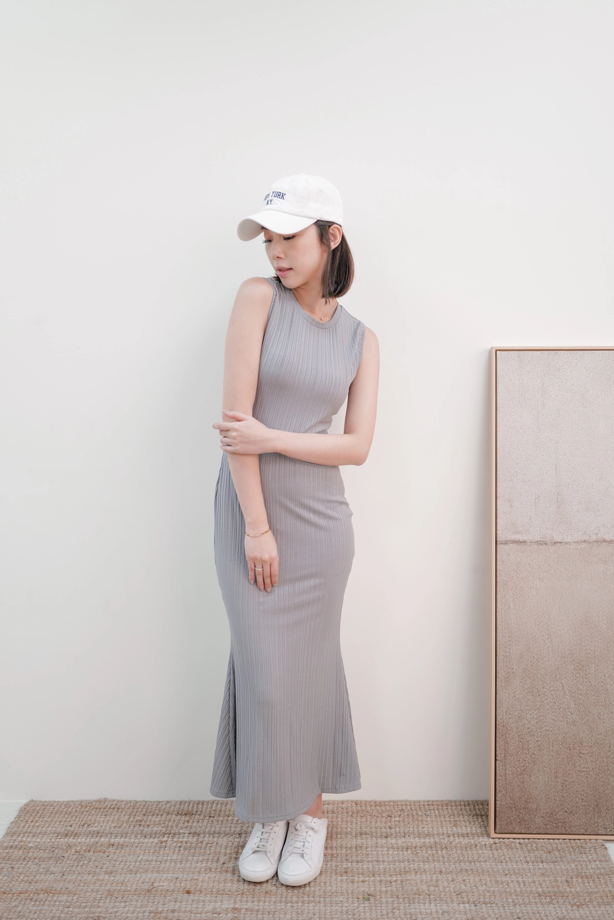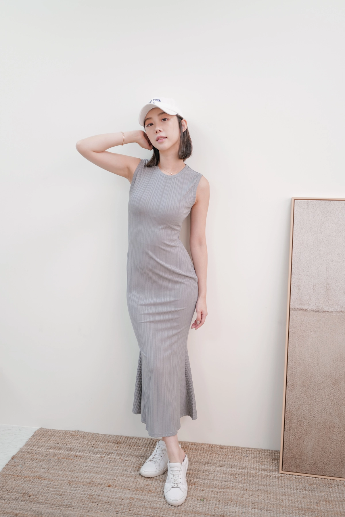 女神修身魚尾洋裝-灰