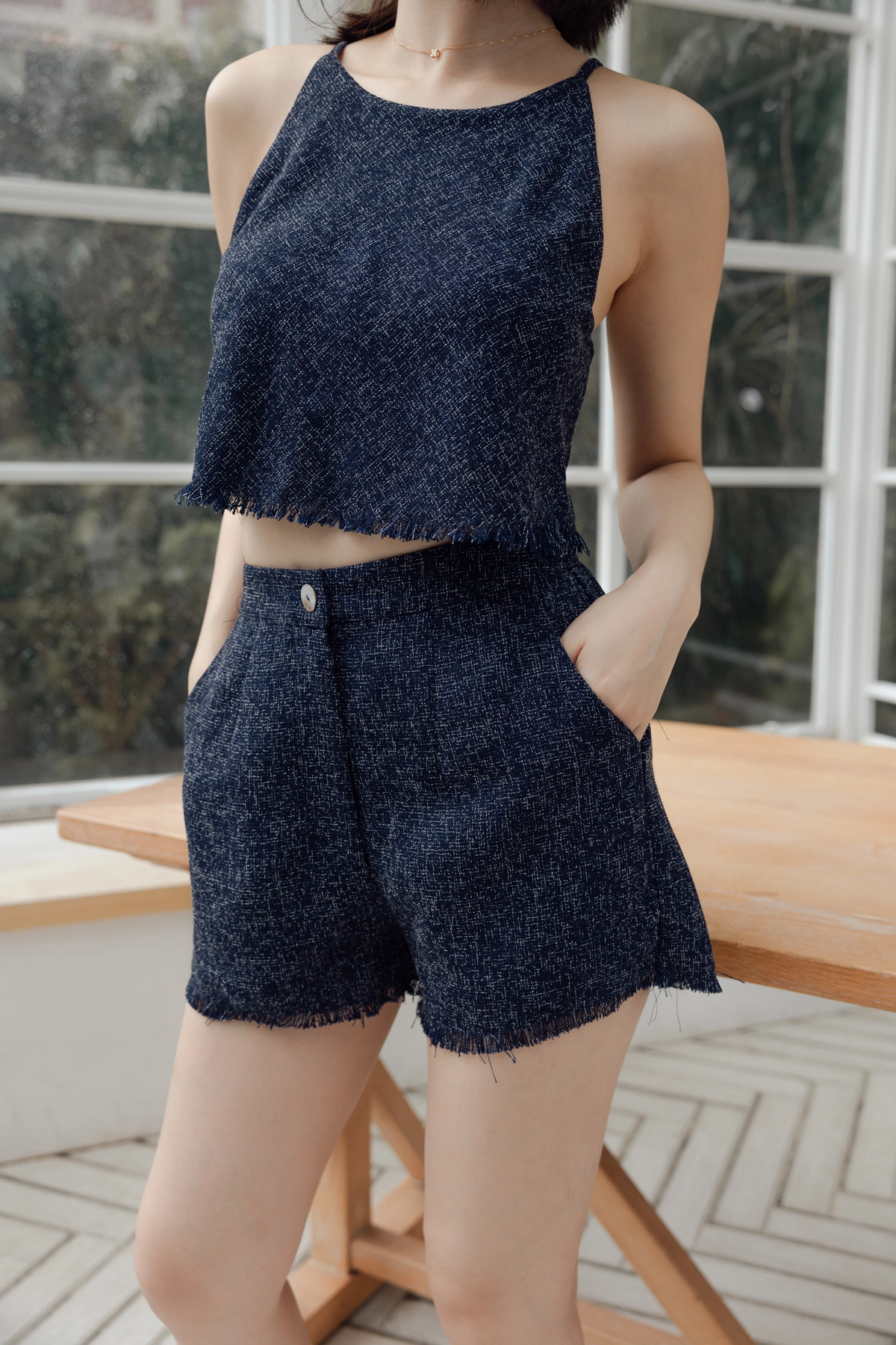 毛呢小香衣褲組Bra Set-幻影藍