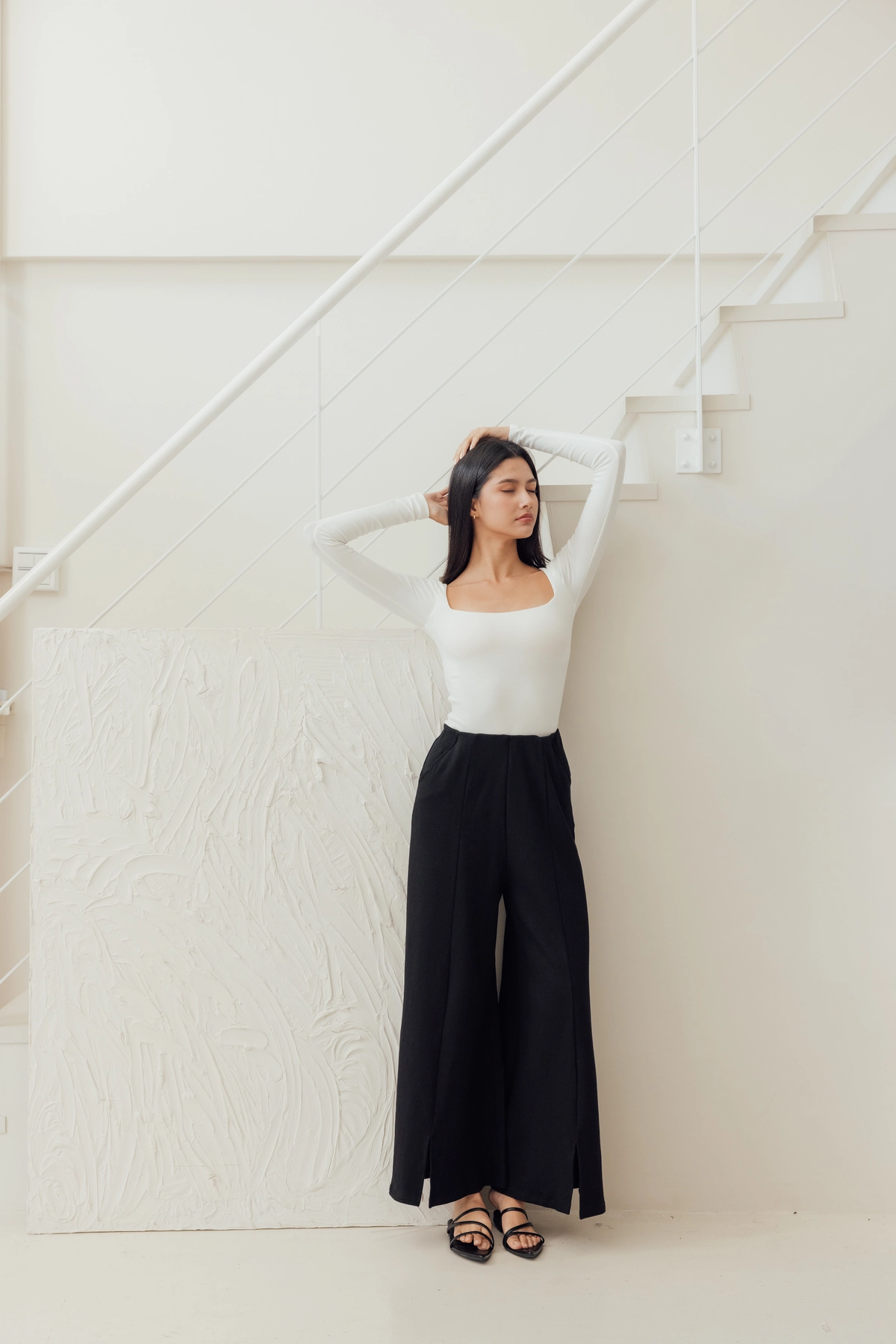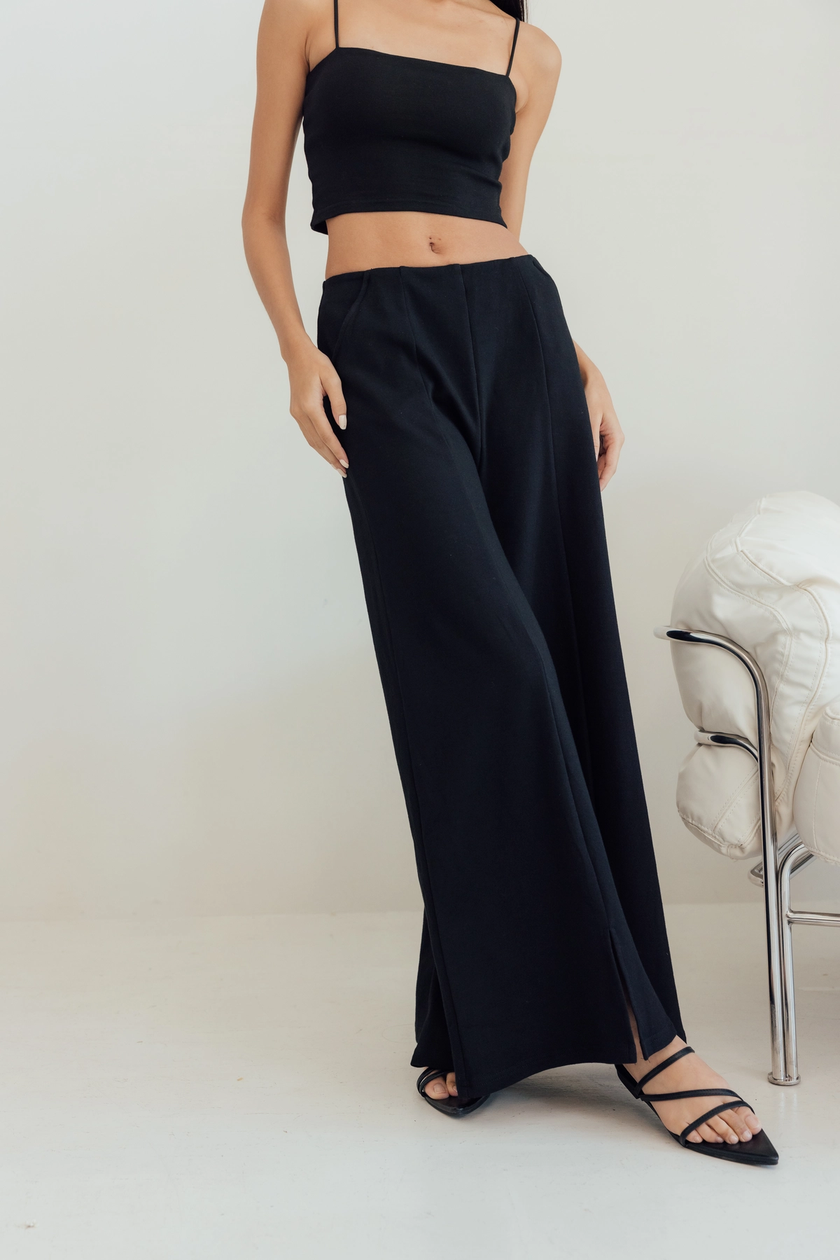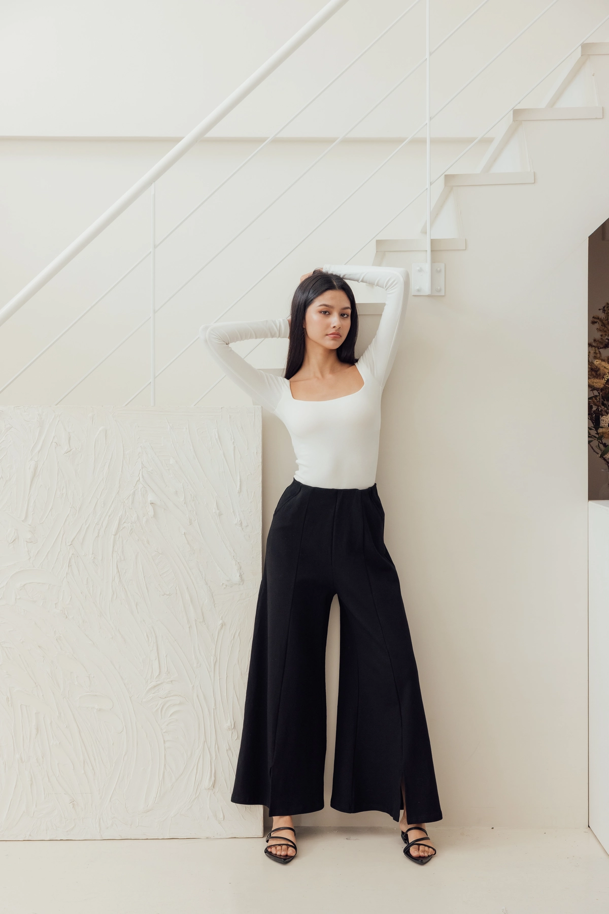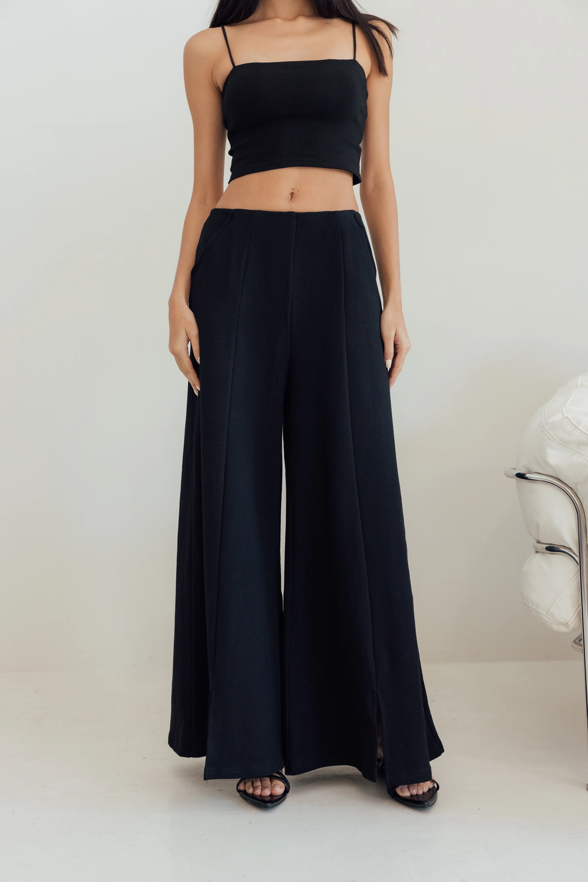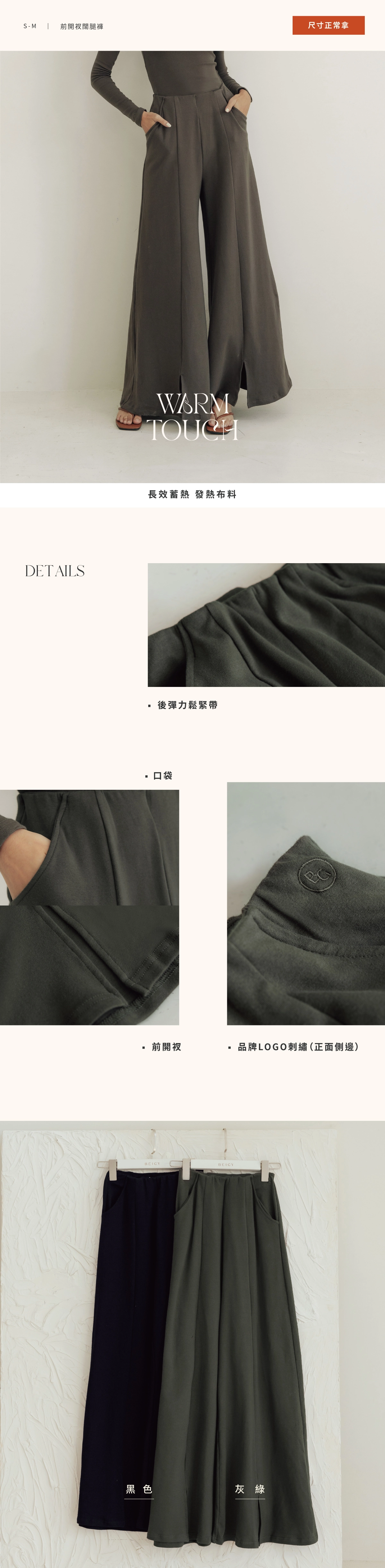 WARM TOUCH_發熱前開衩闊腿褲-黑
