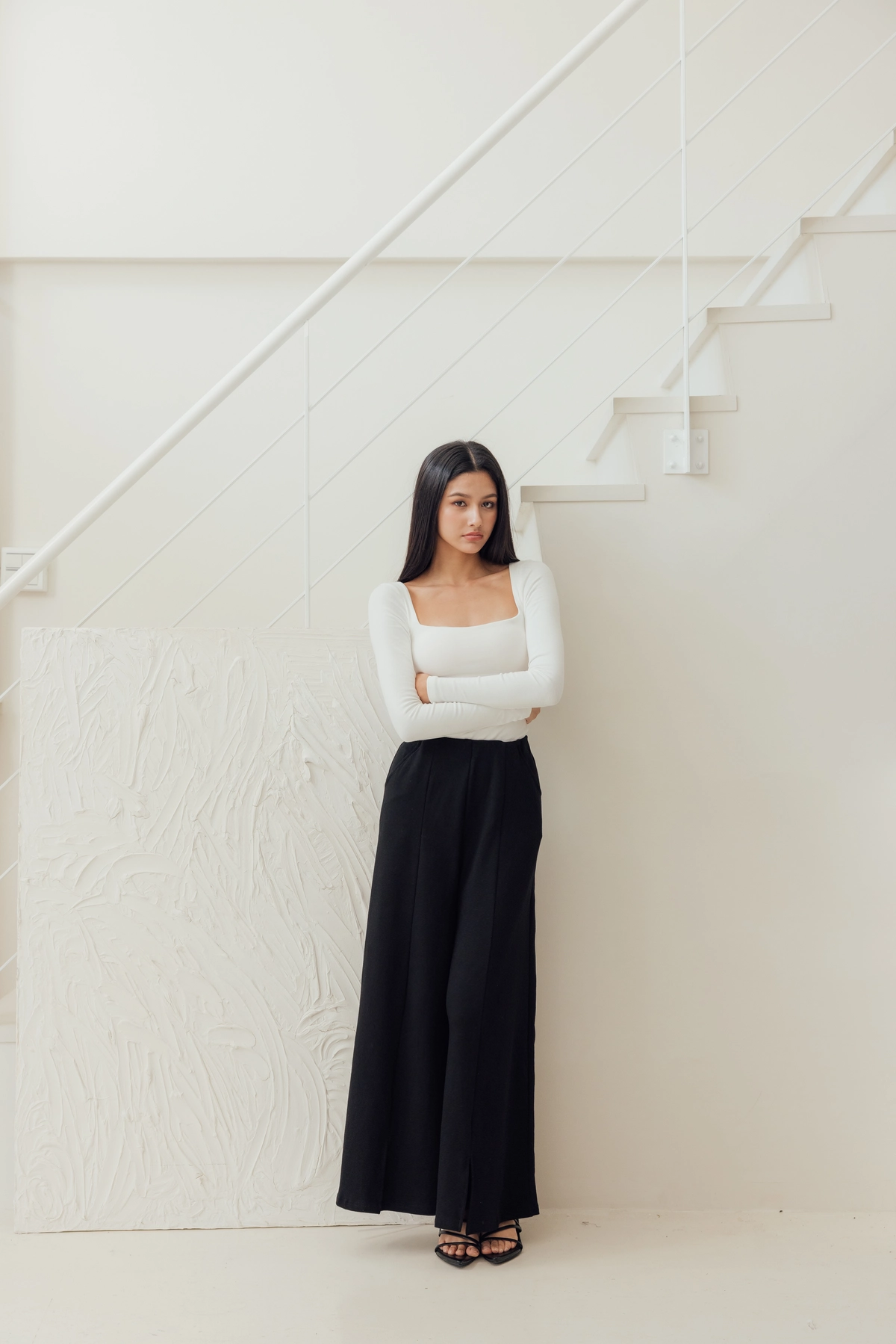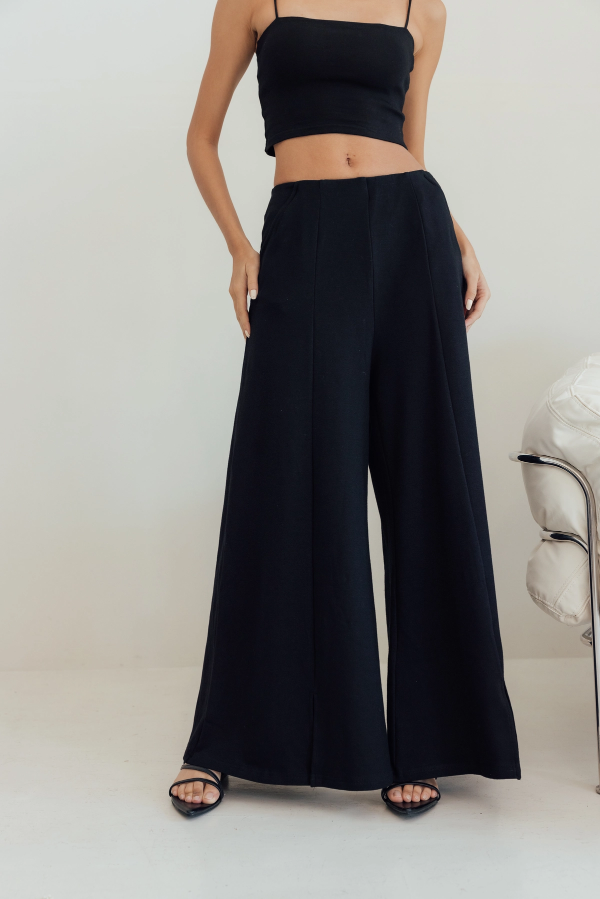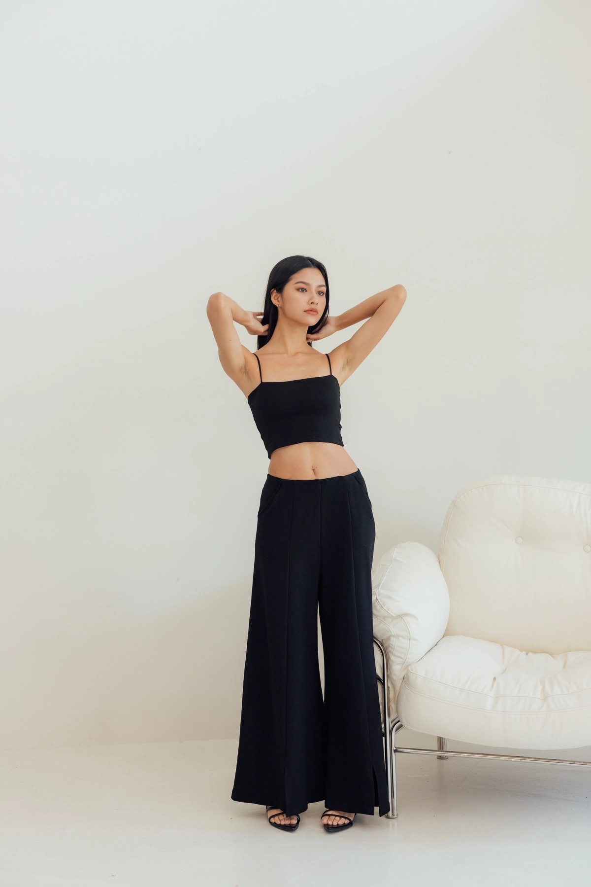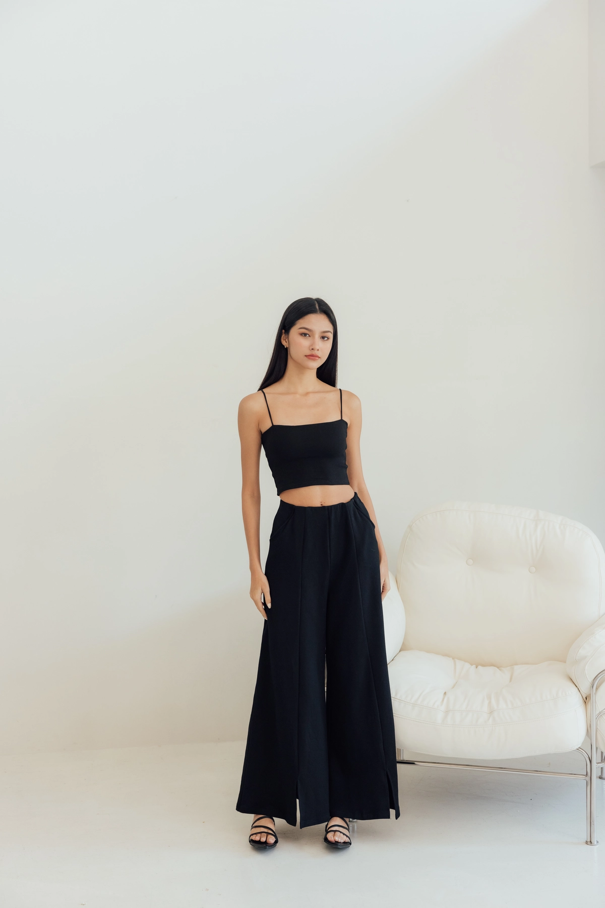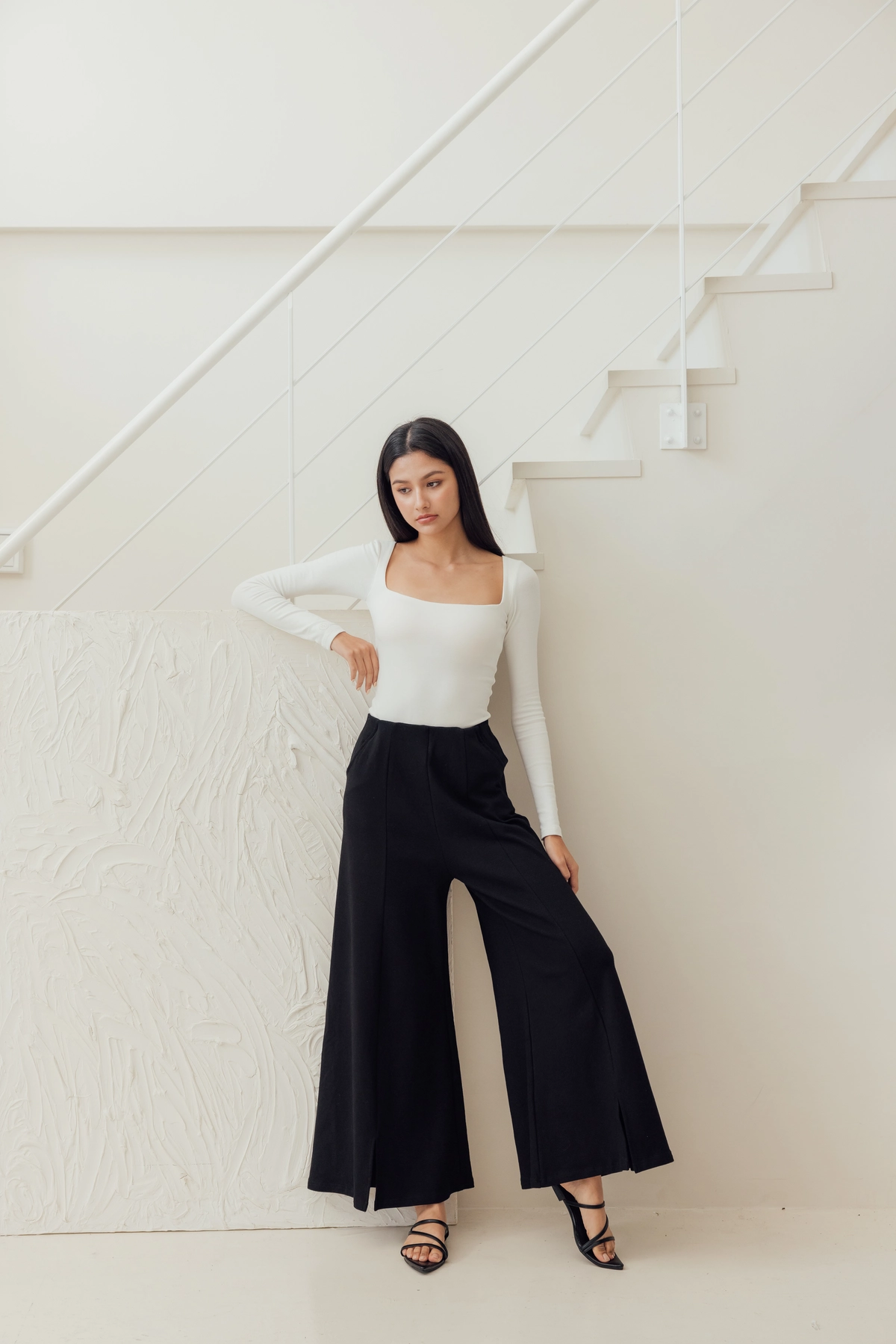 WARM TOUCH_發熱前開衩闊腿褲-黑
