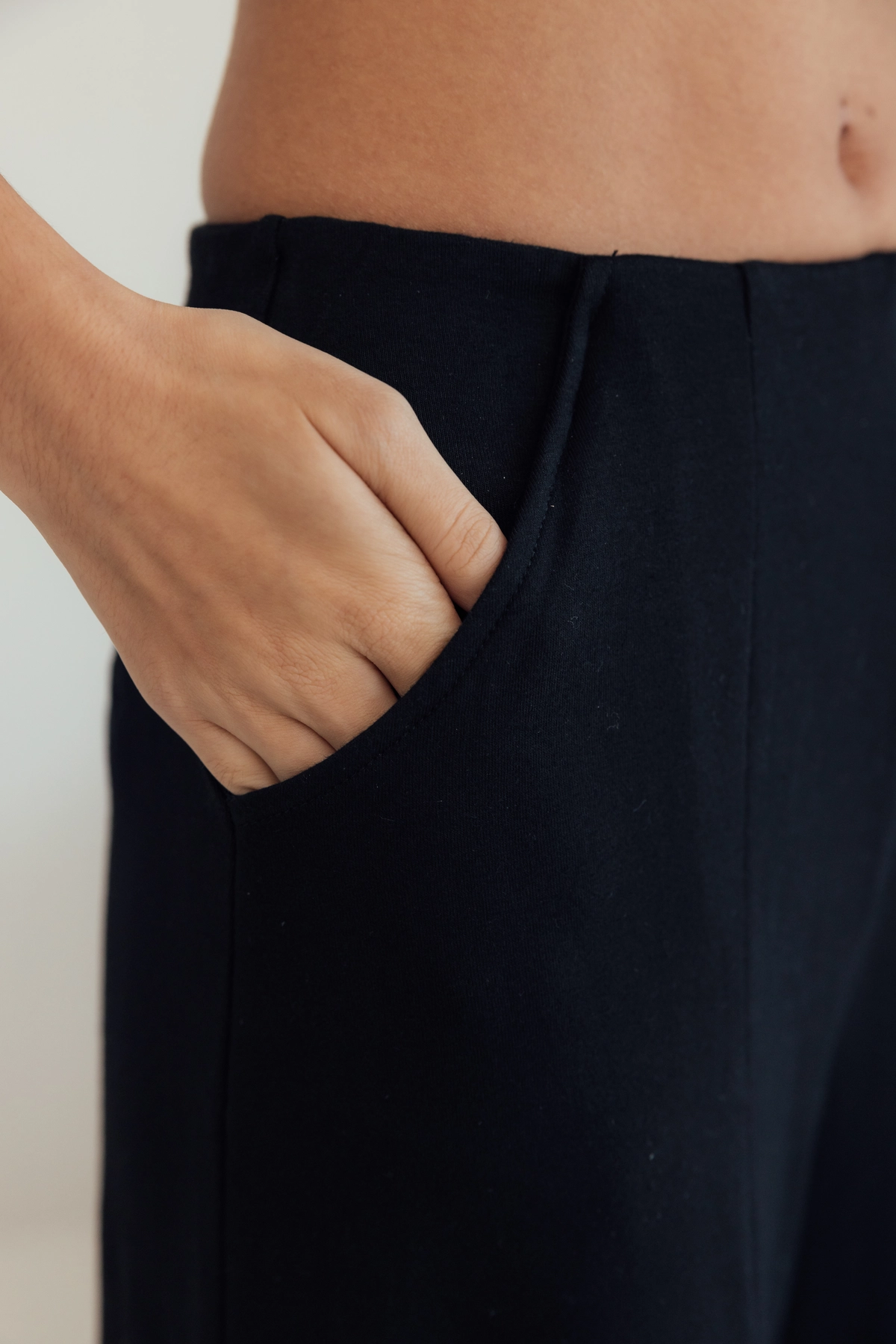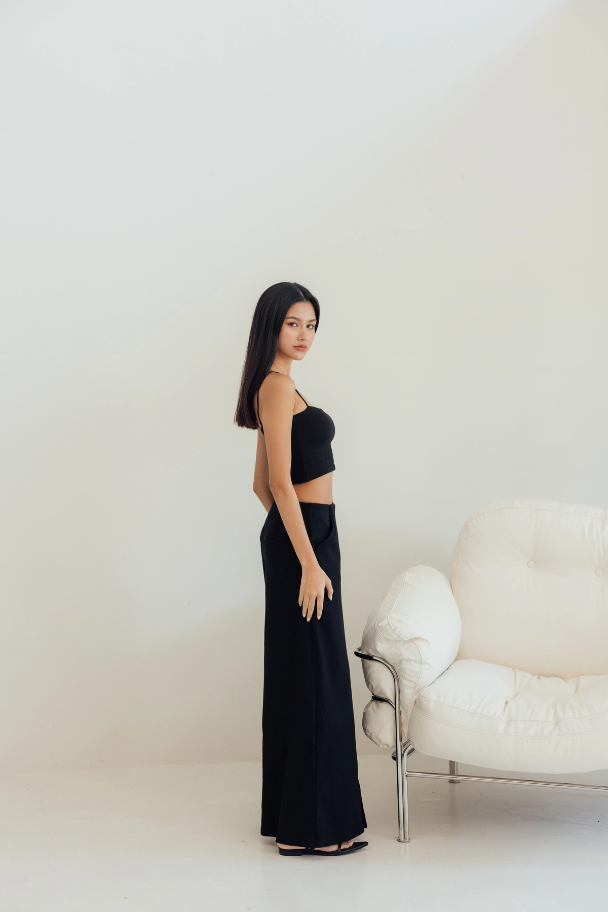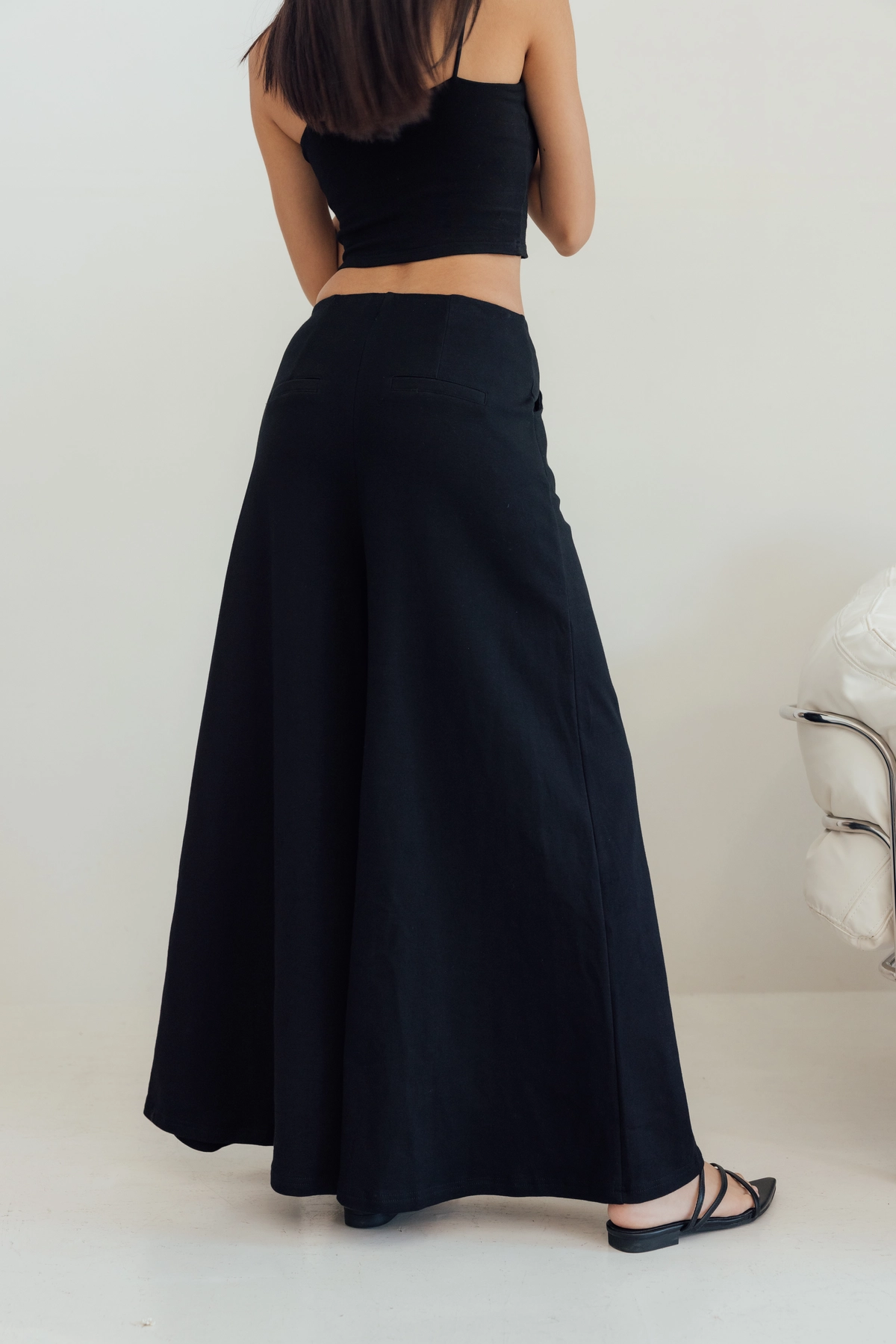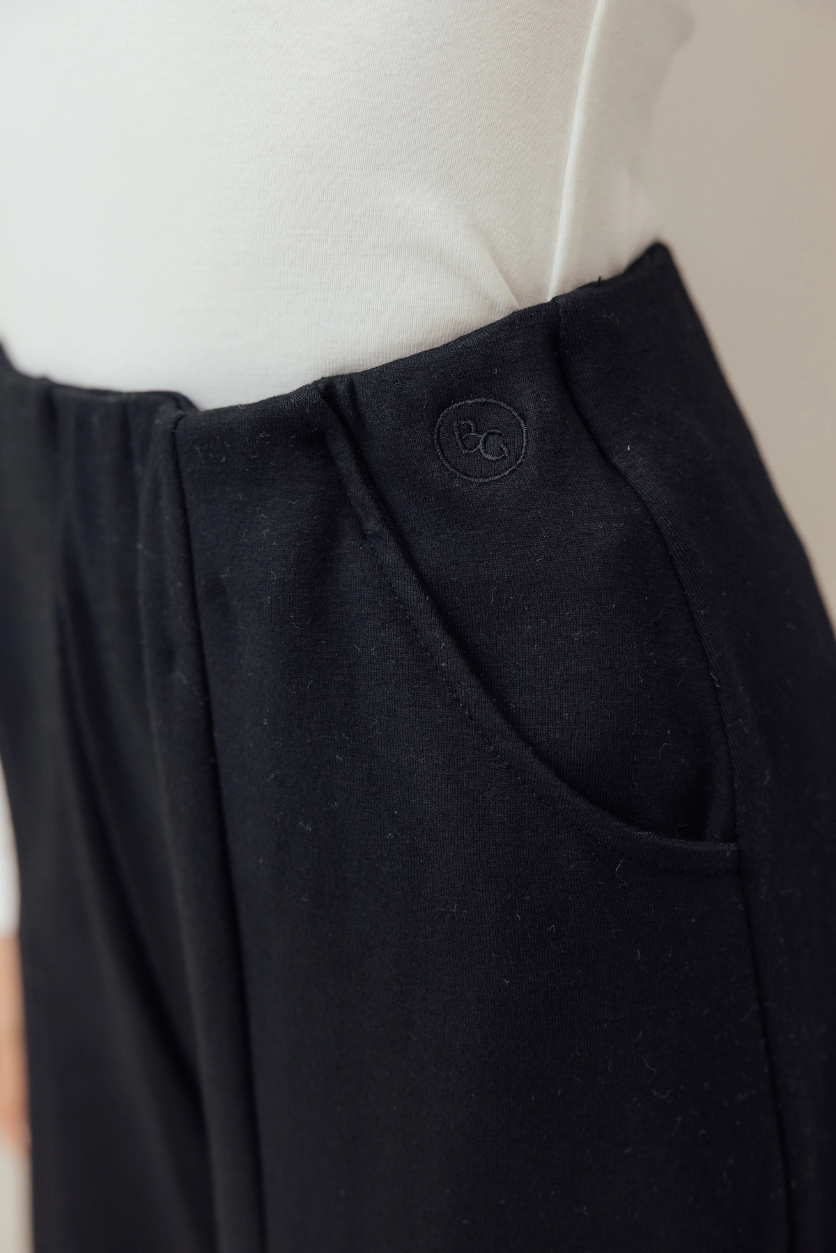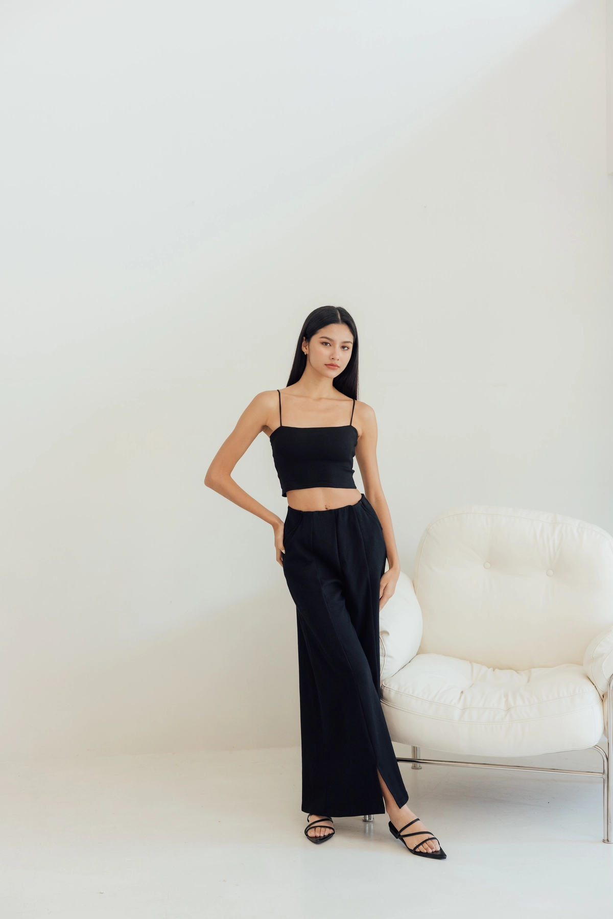 WARM TOUCH_發熱前開衩闊腿褲-黑
