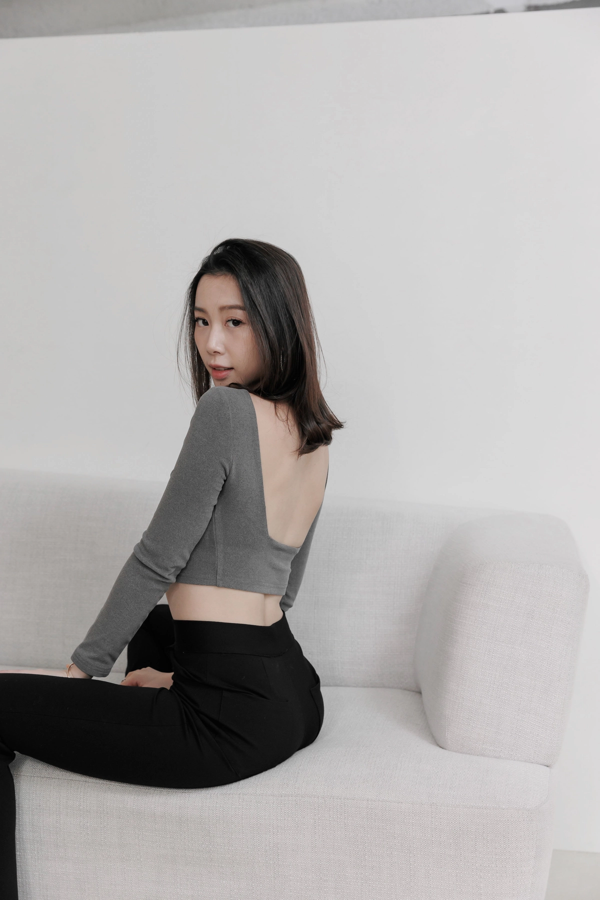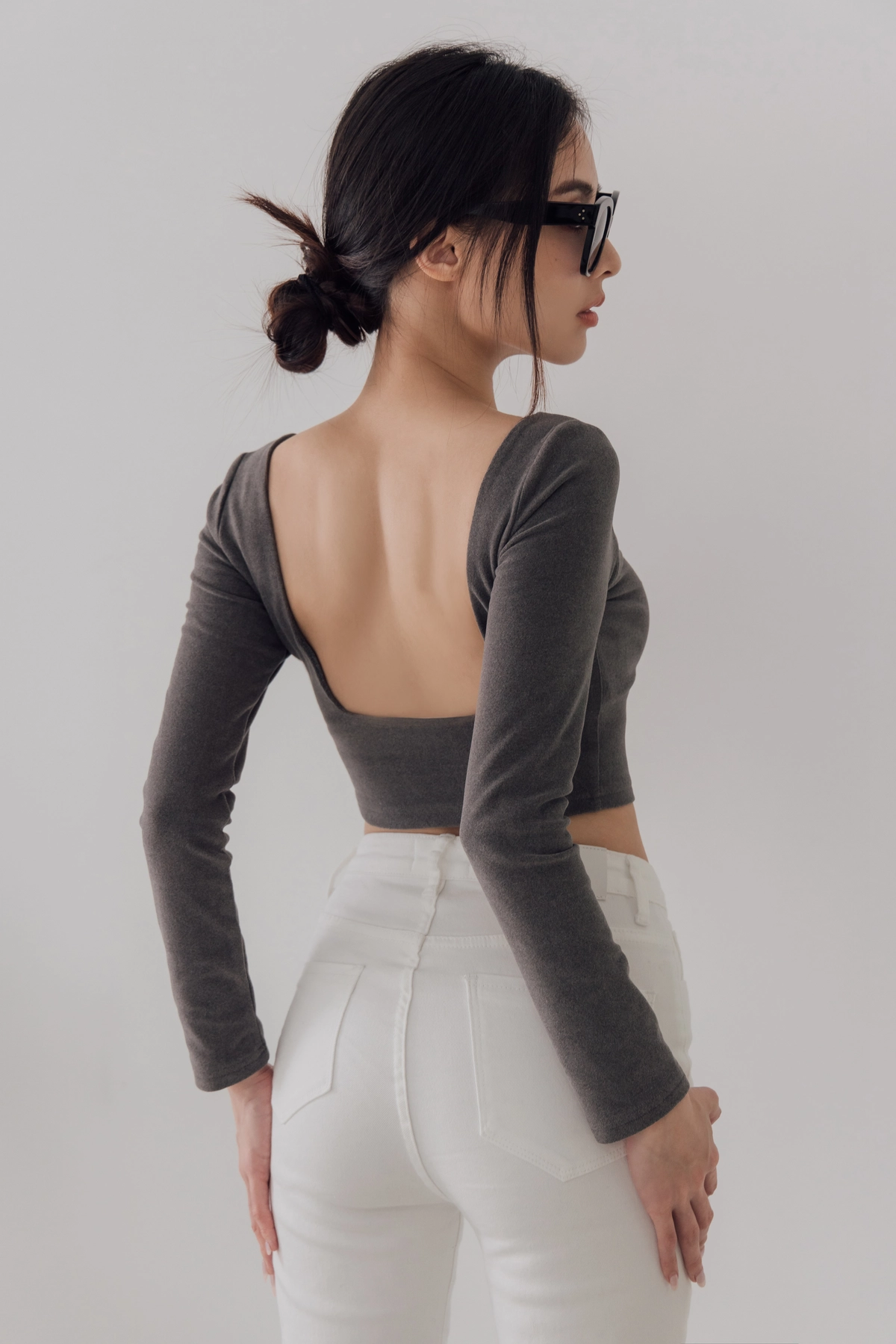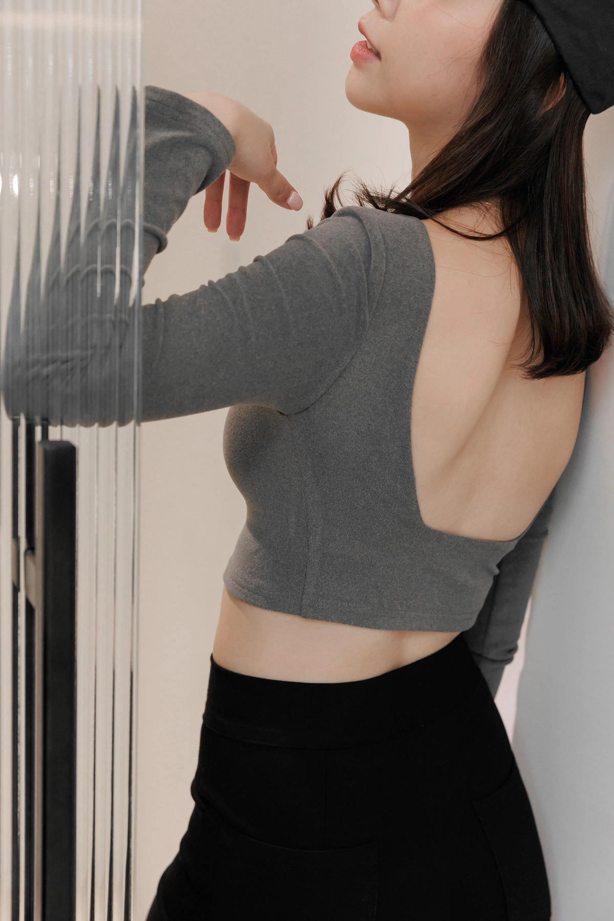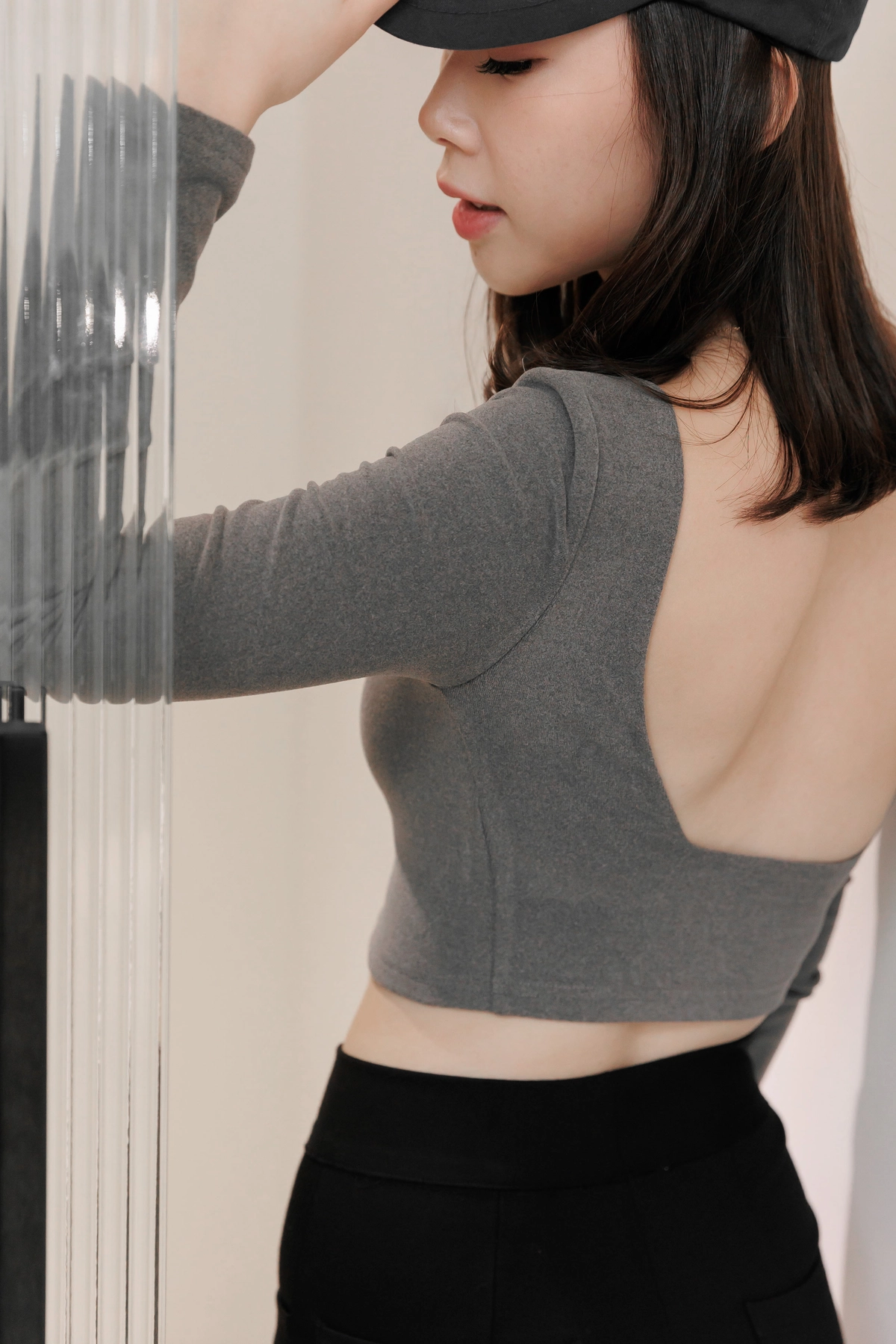日常露背後方領Bra Top-灰