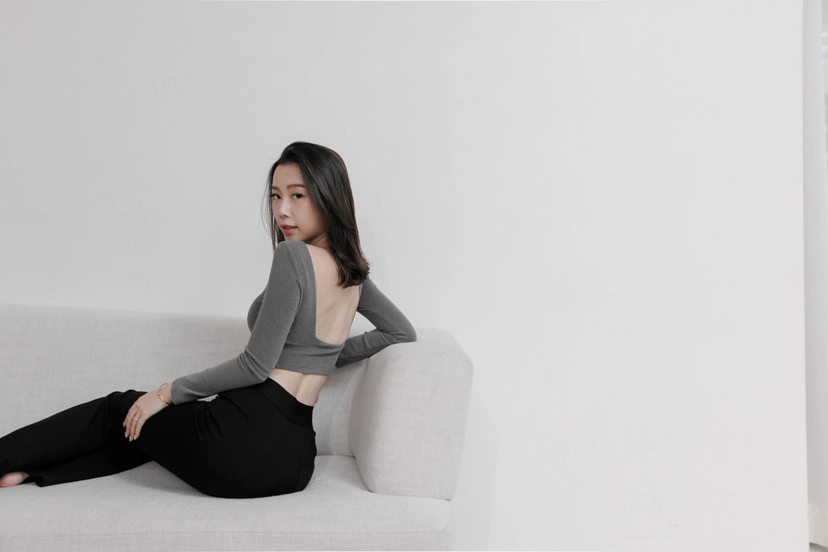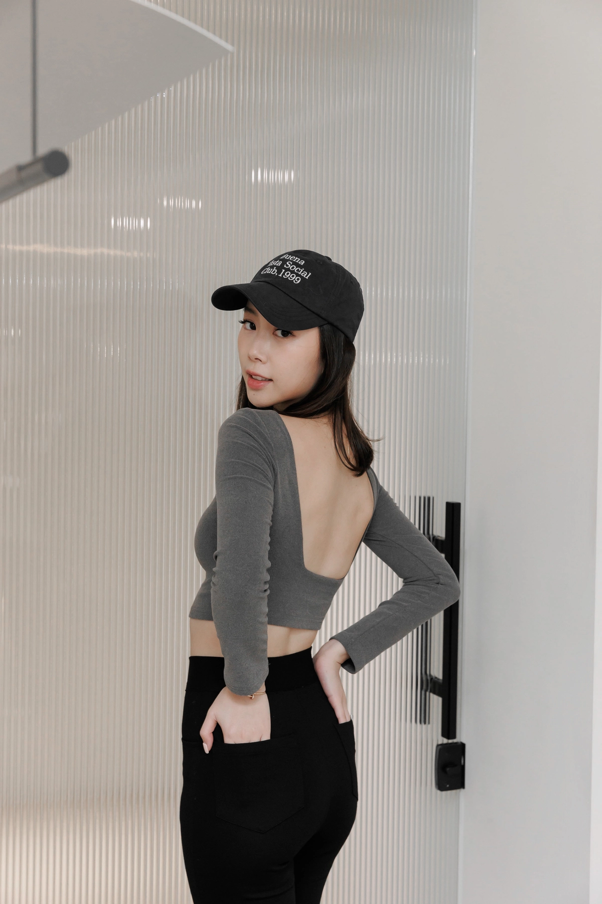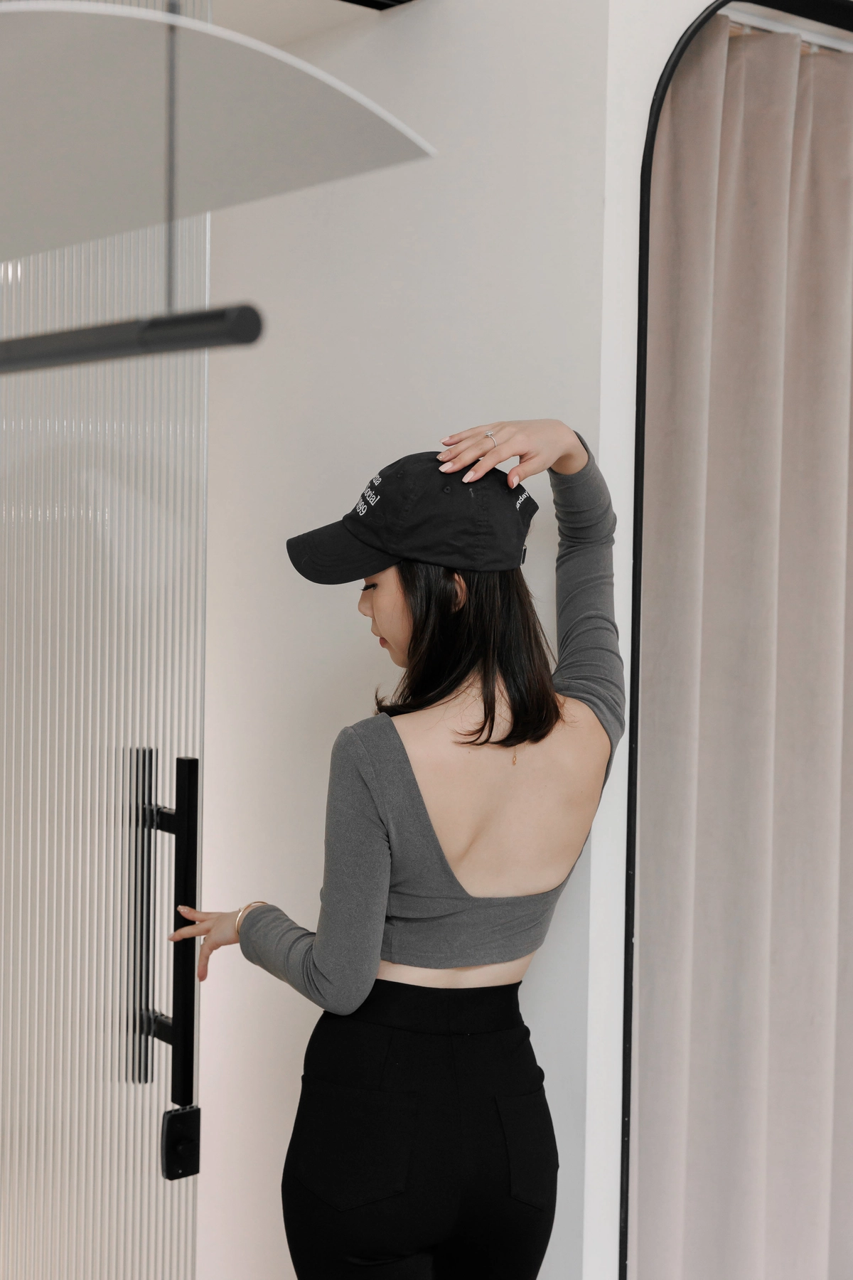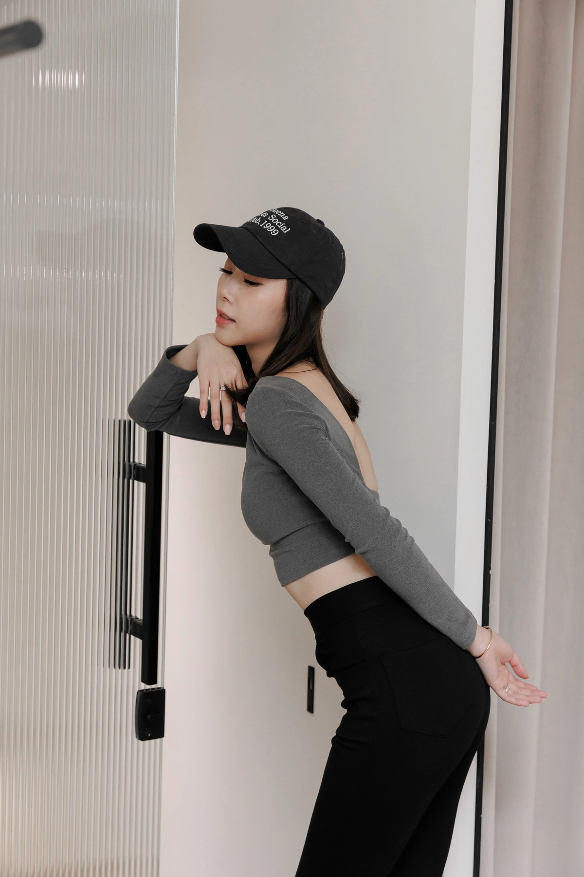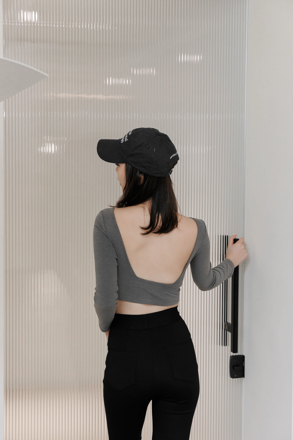 日常露背後方領Bra Top-灰