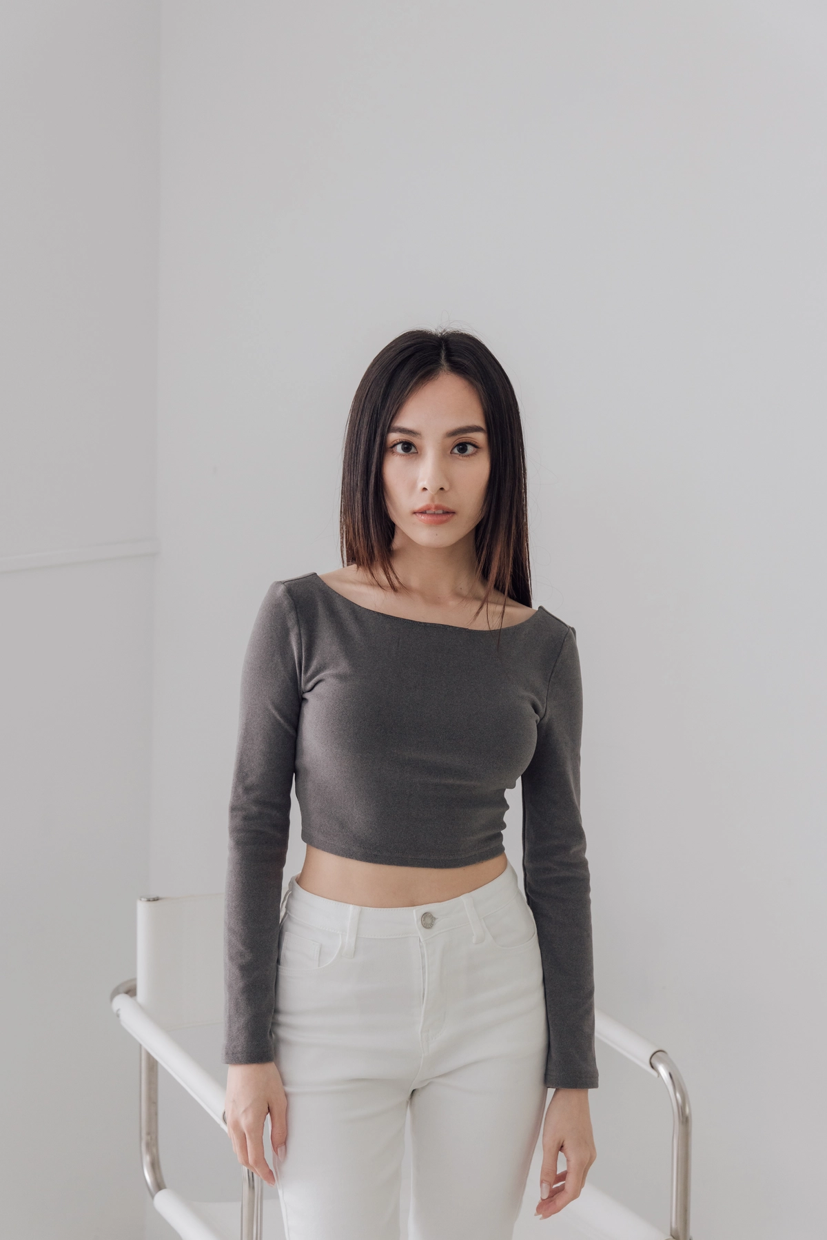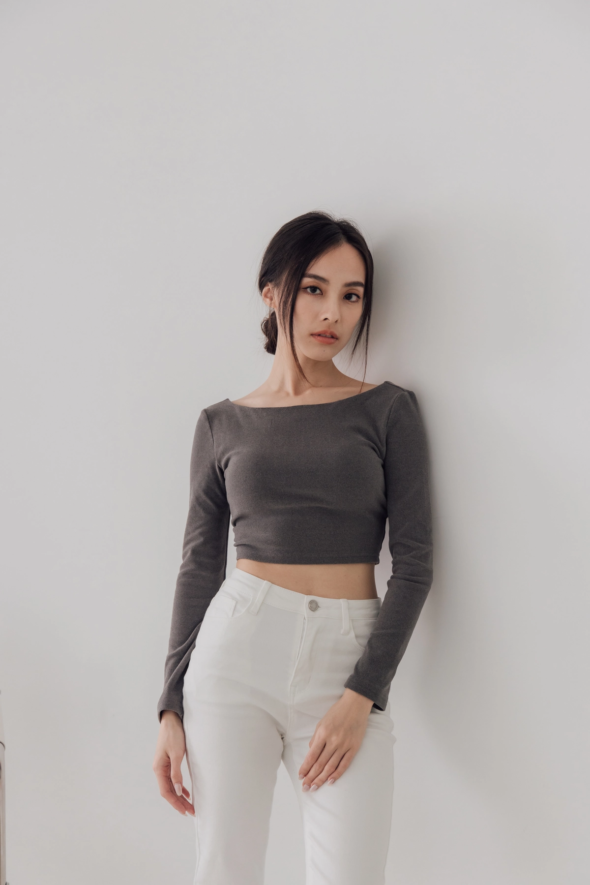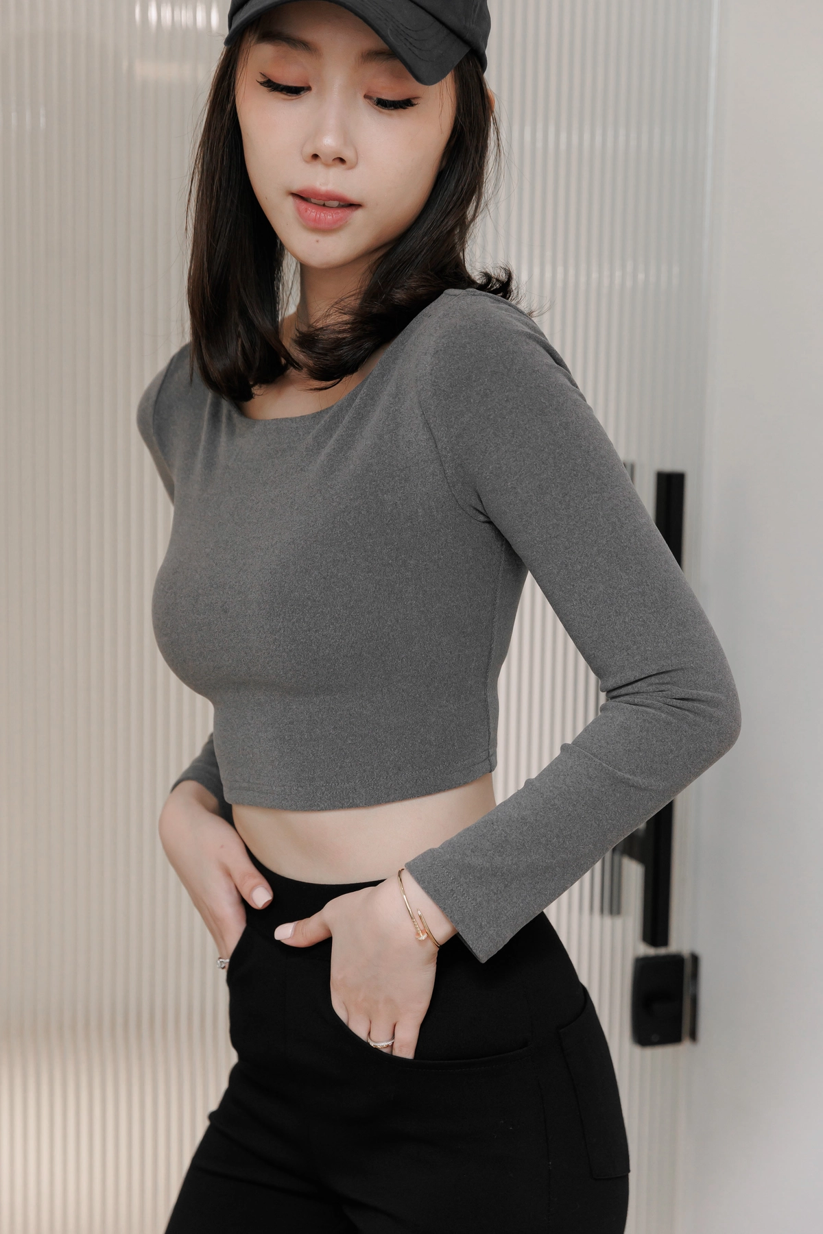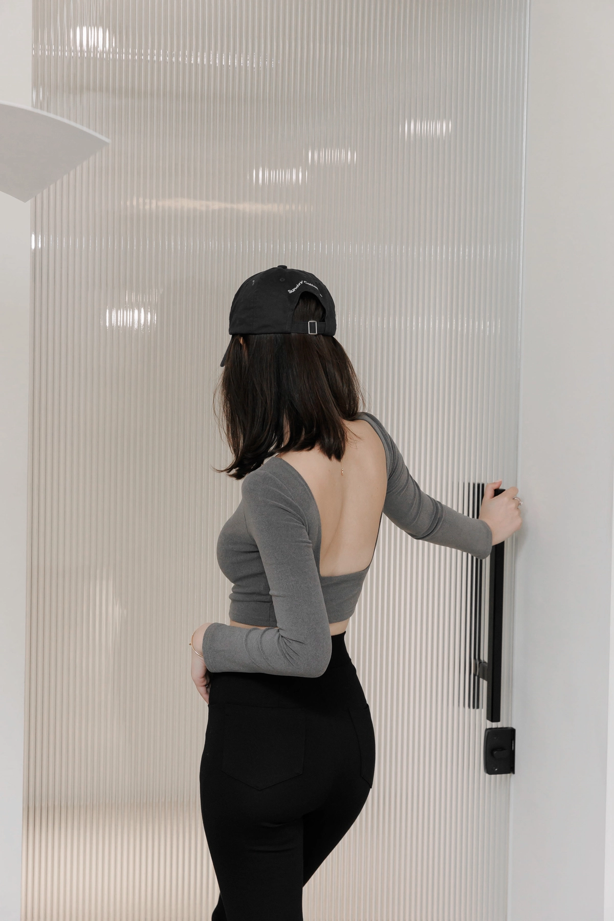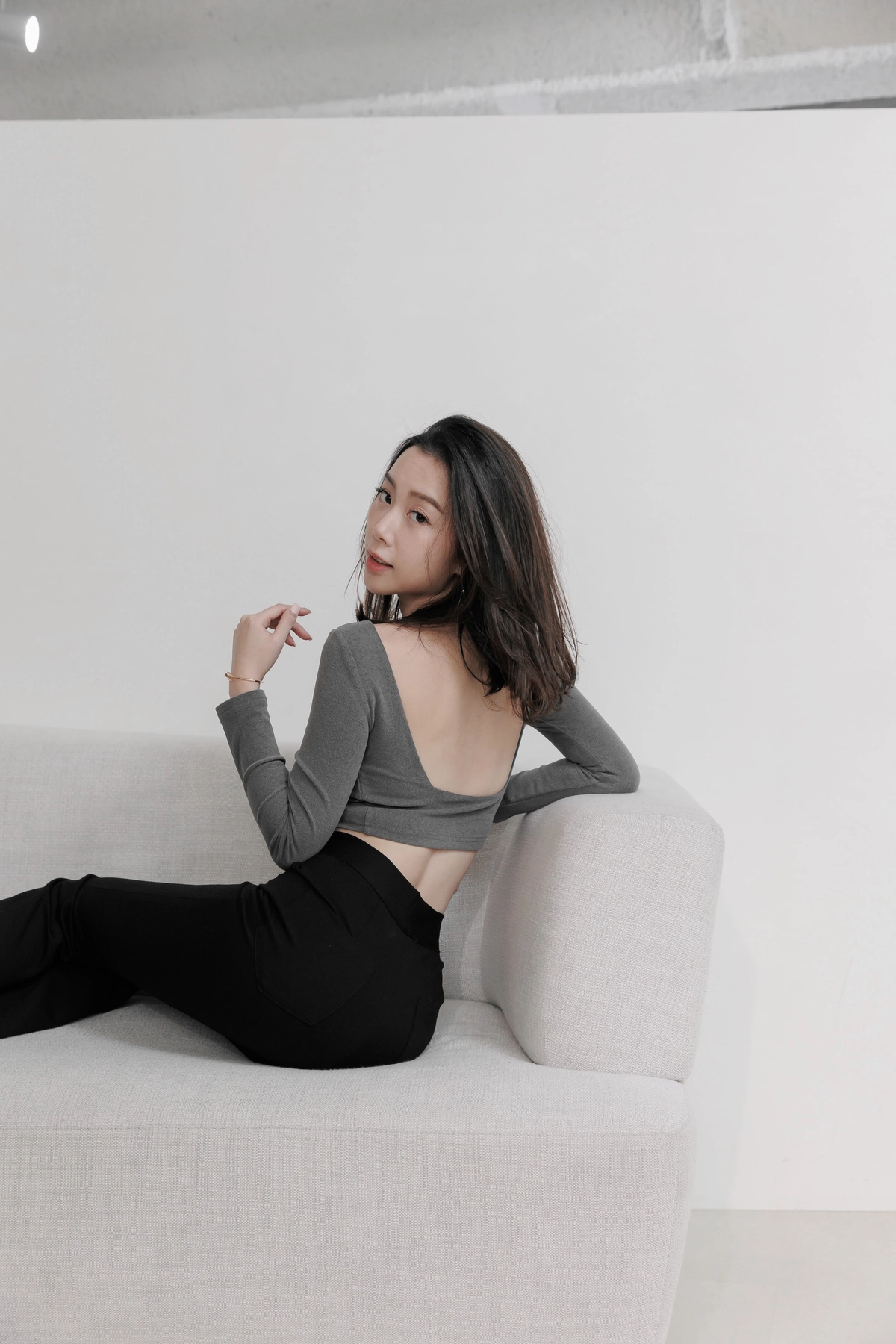 日常露背後方領Bra Top-灰