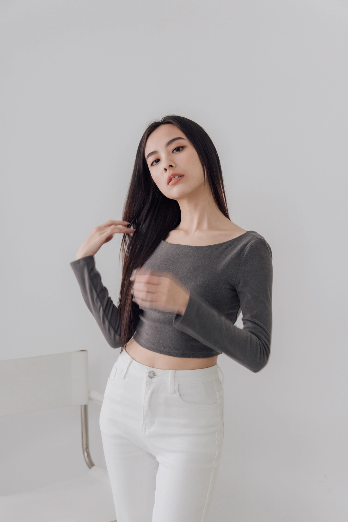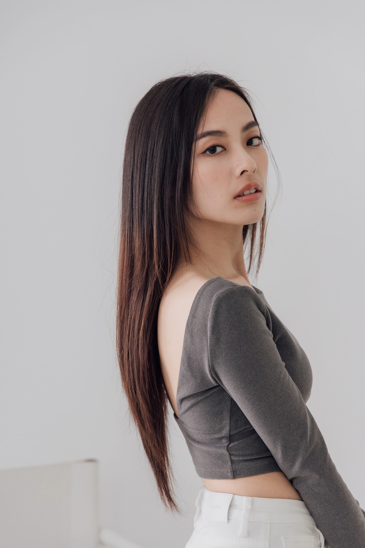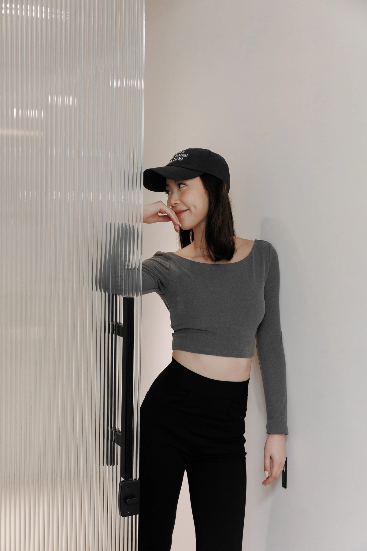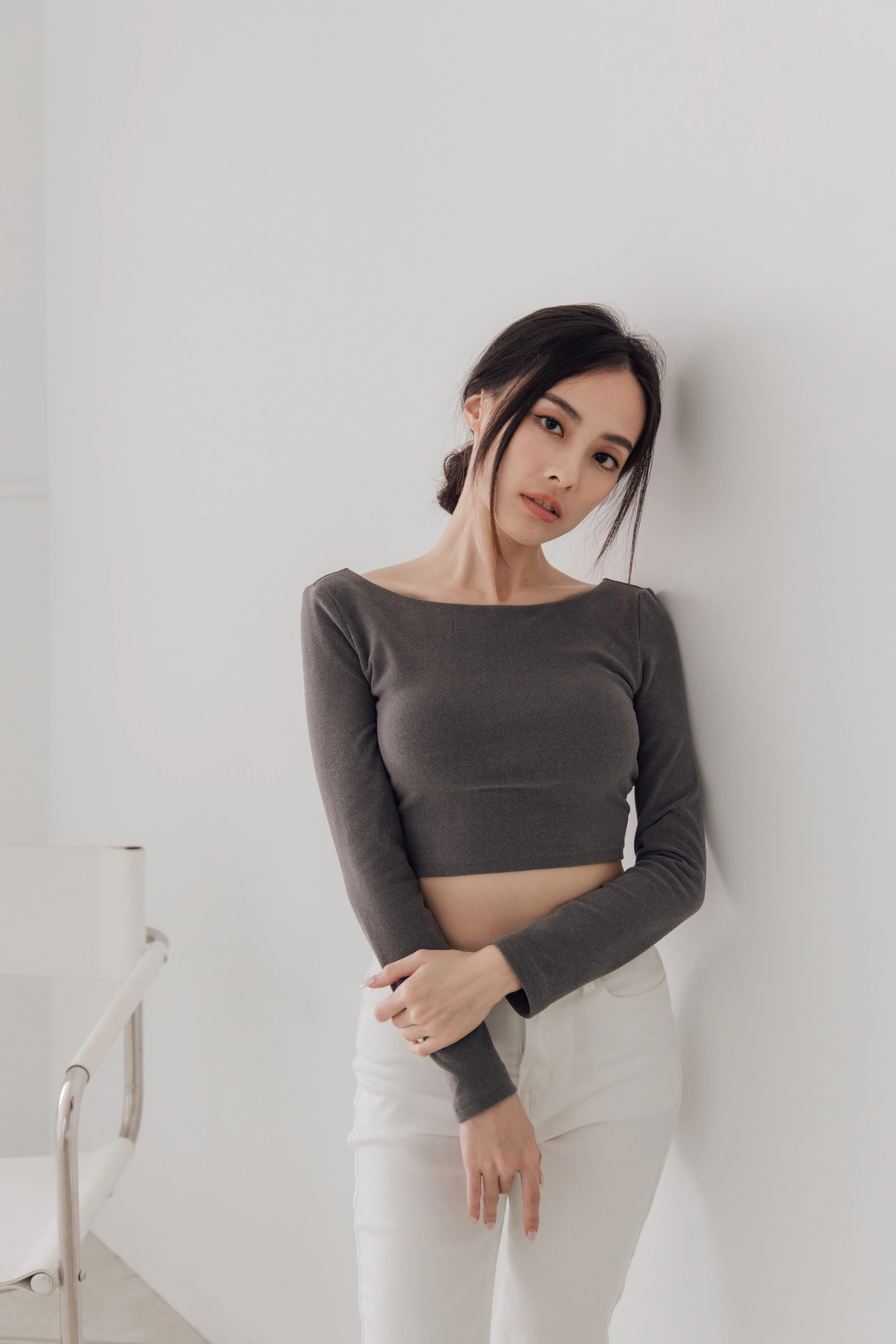 日常露背後方領Bra Top-灰