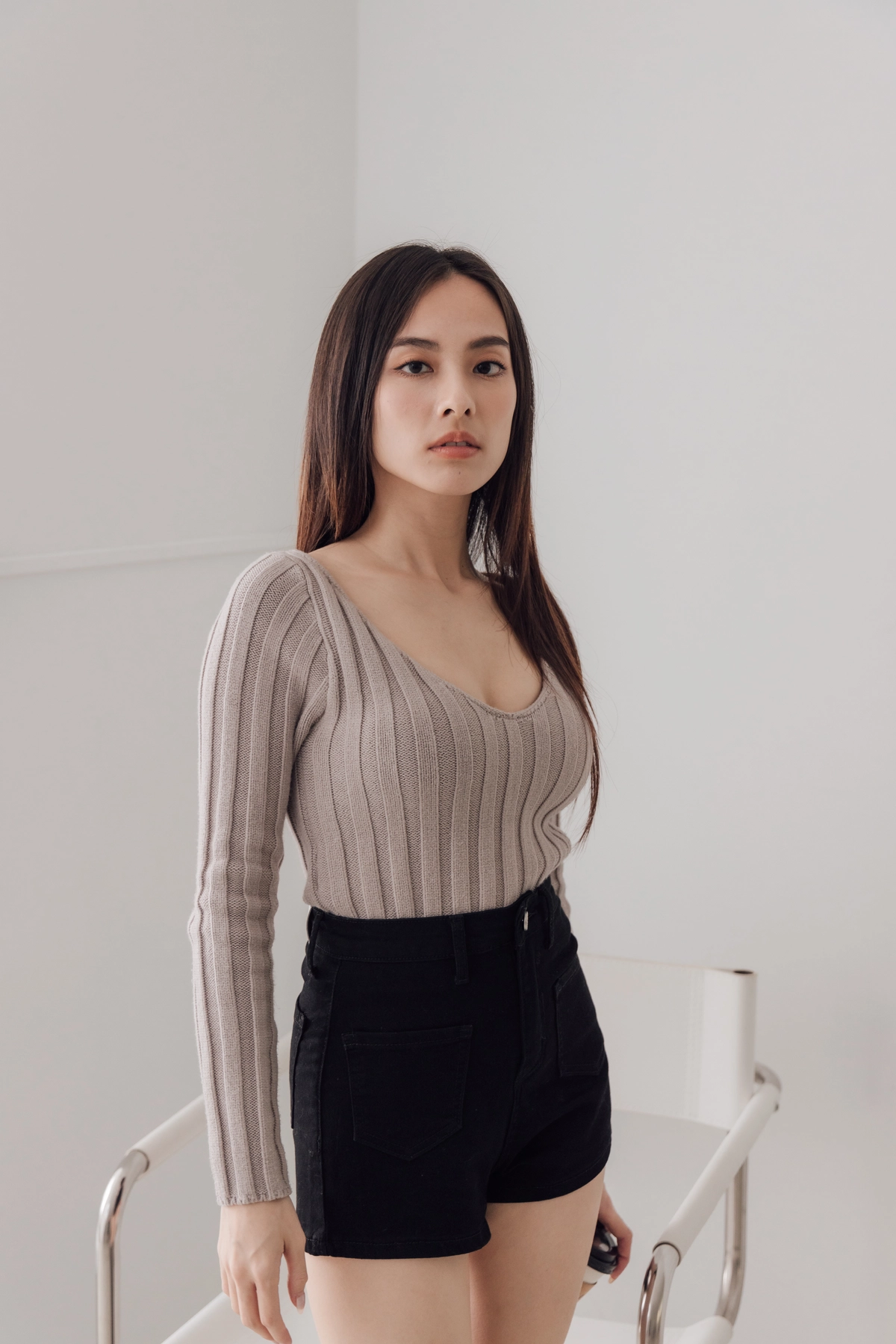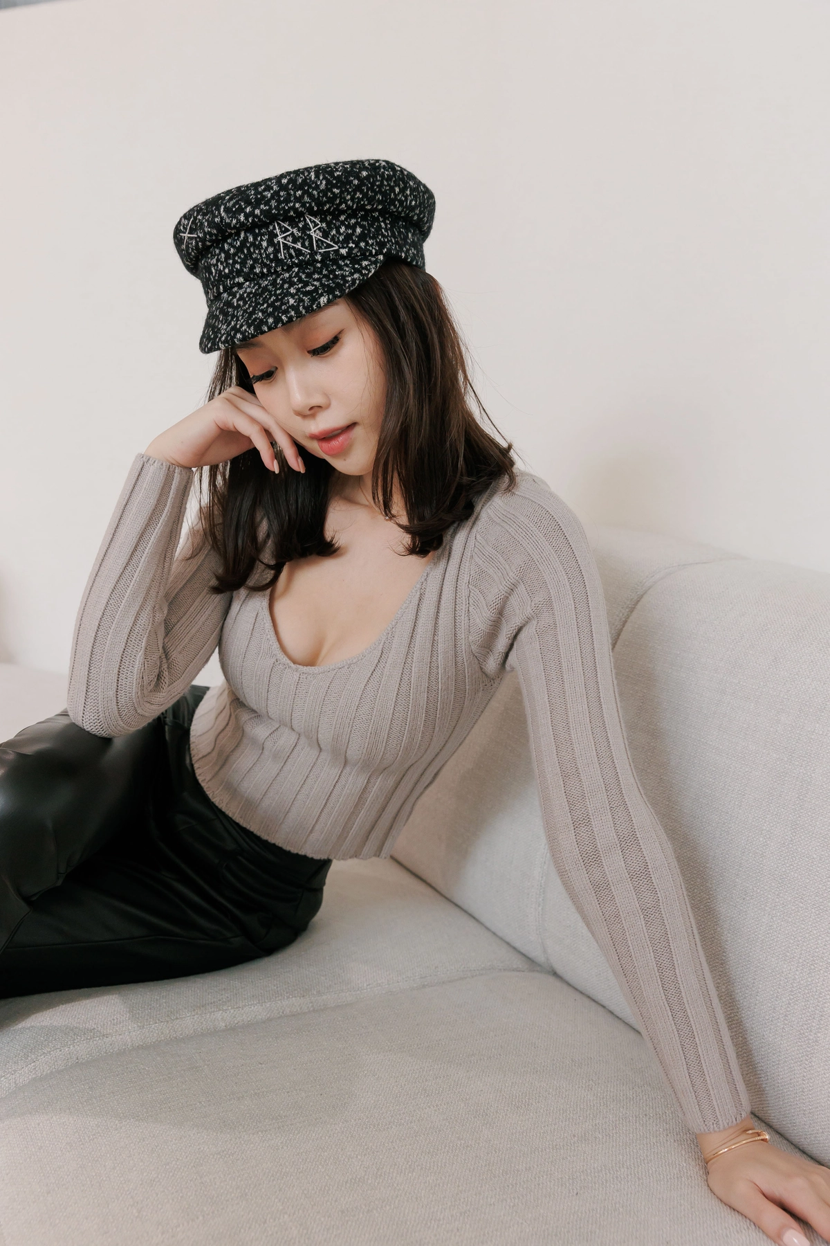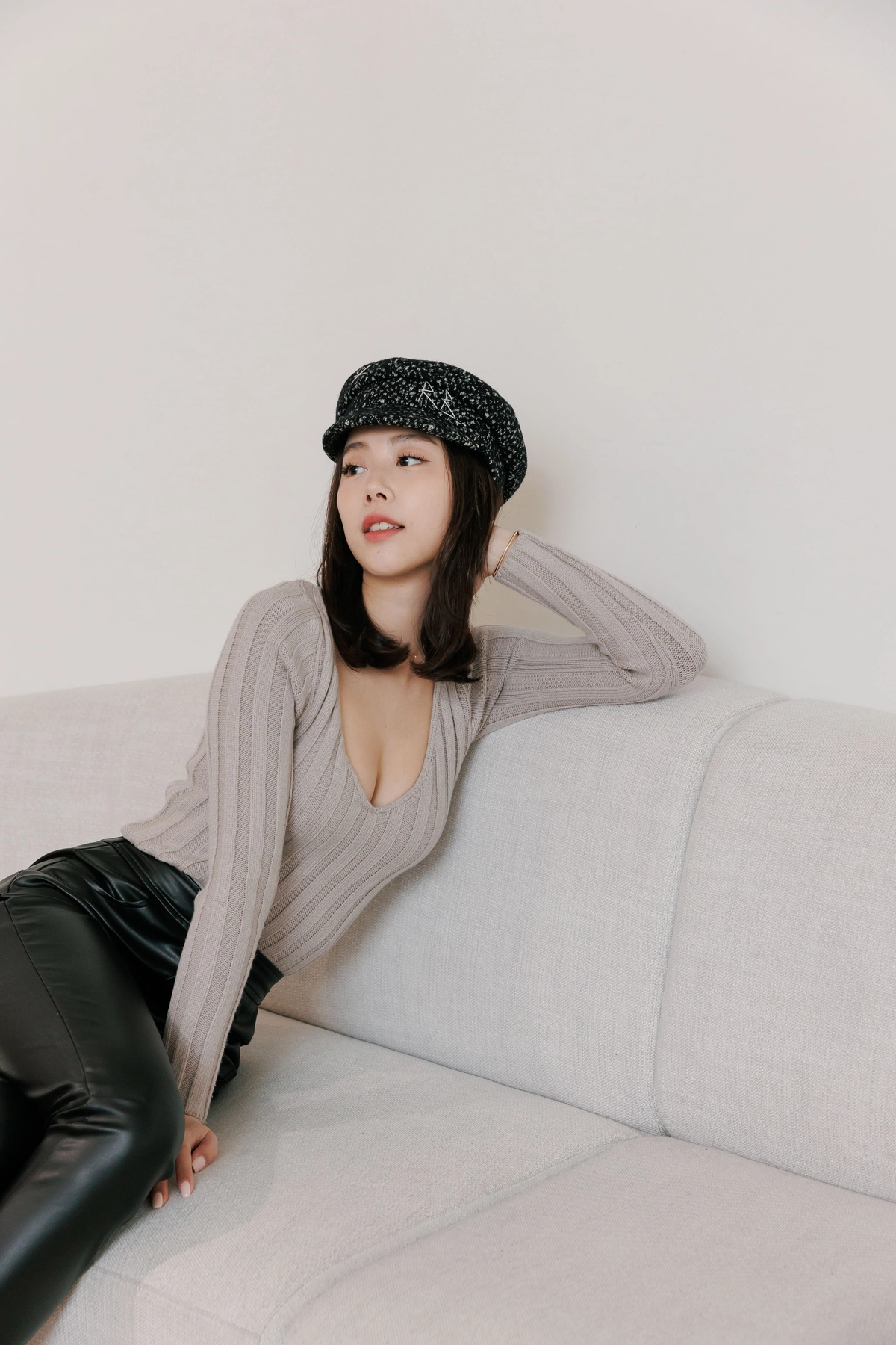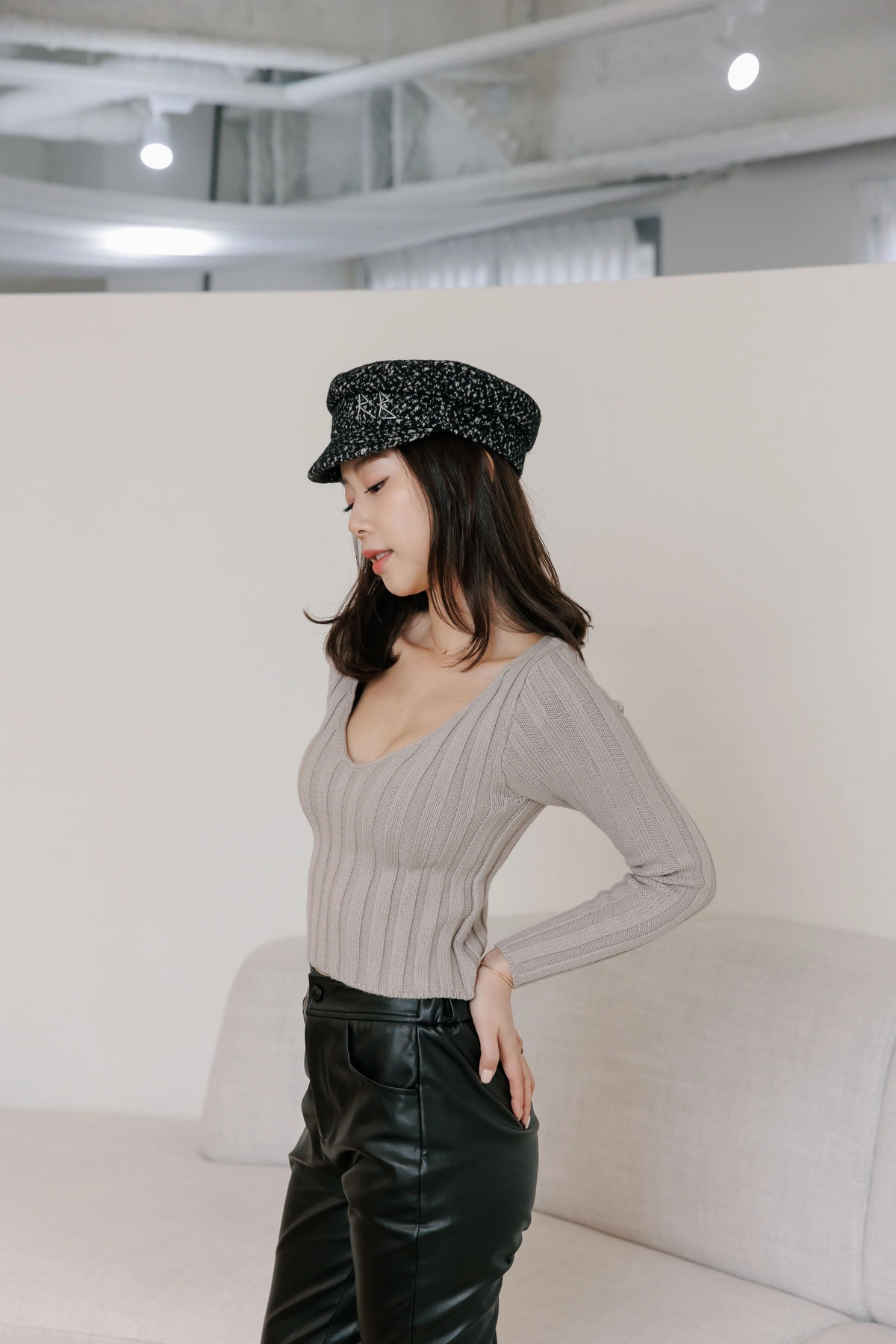 V領毛織Bra Top-灰