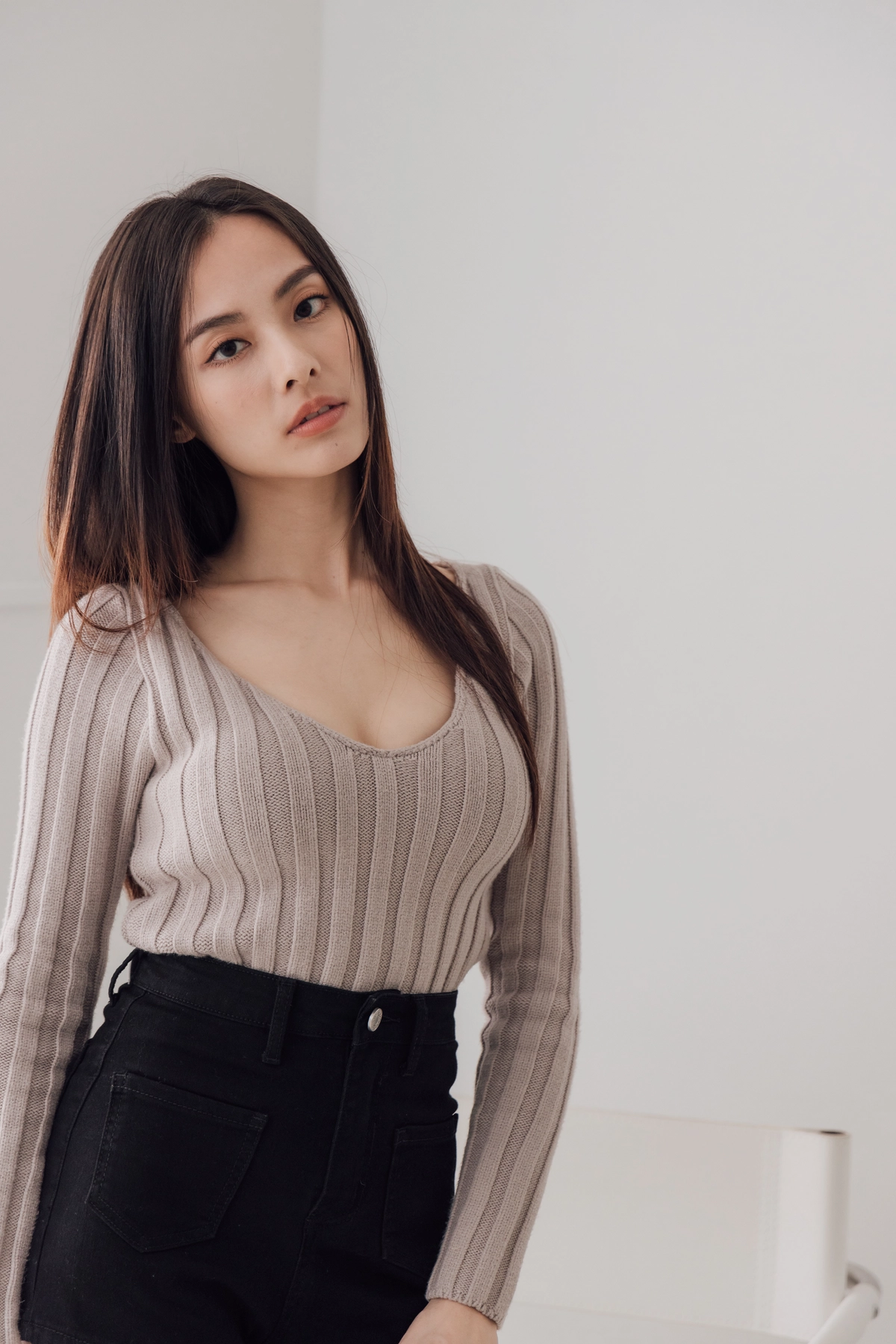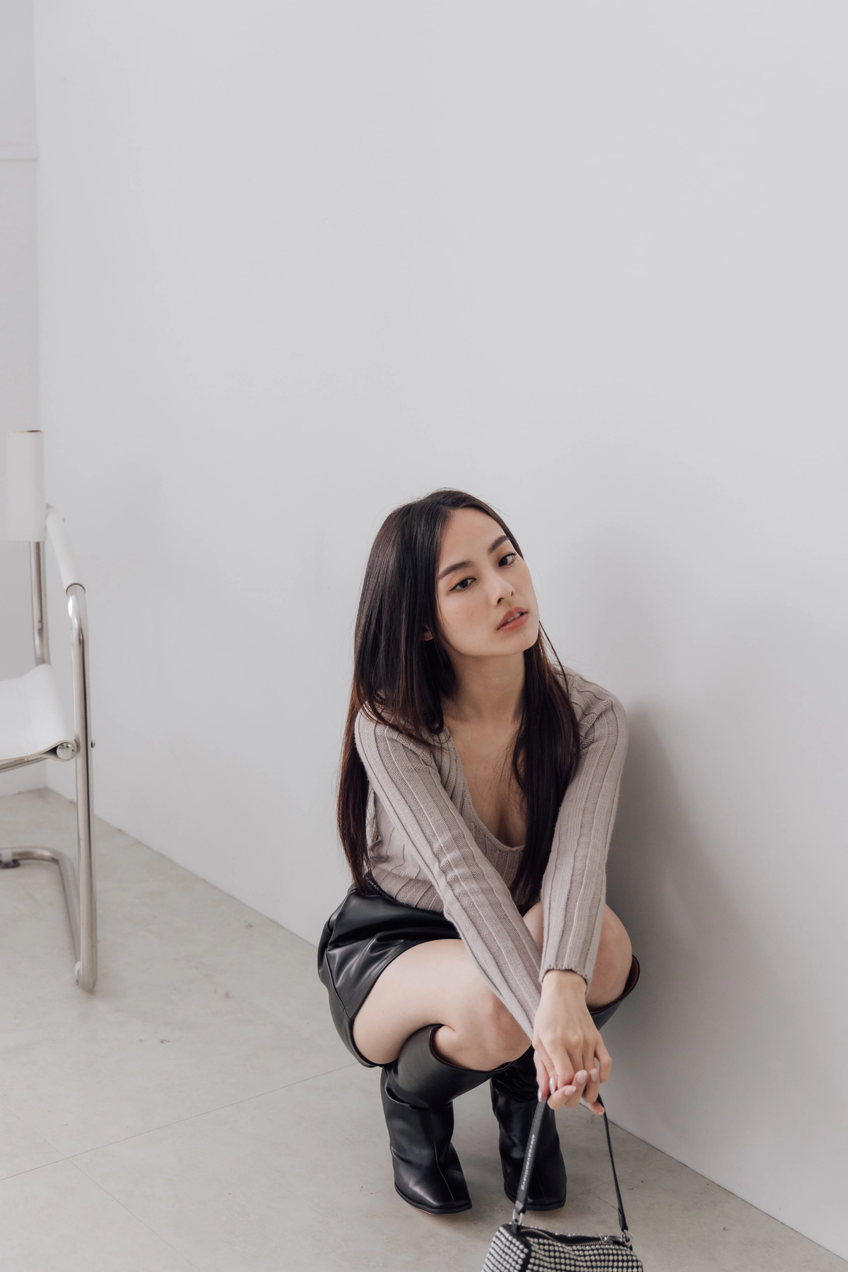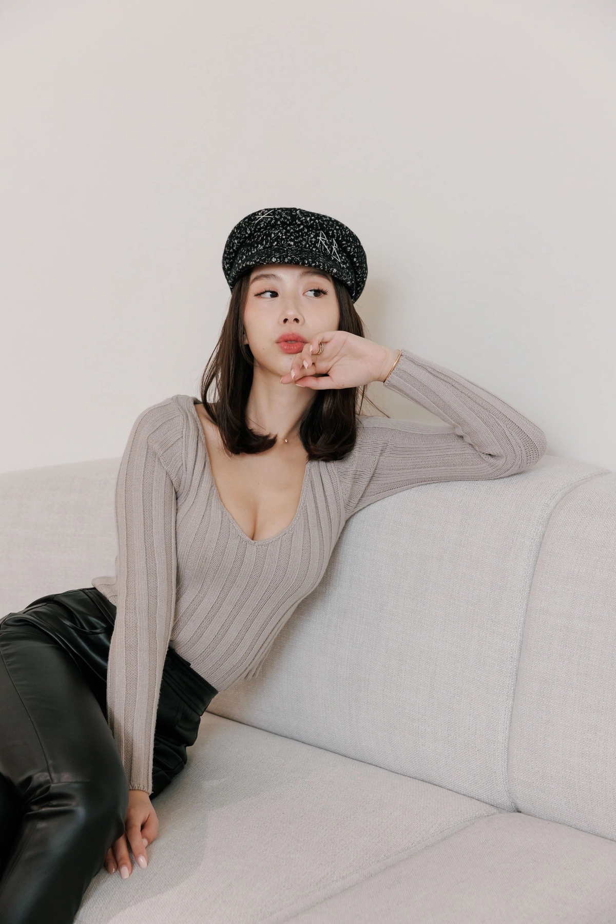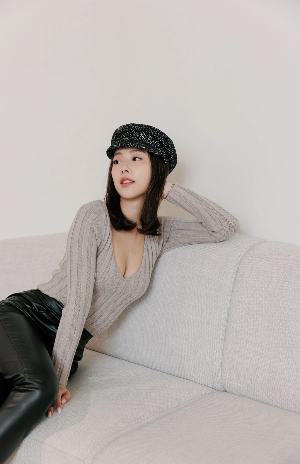 V領毛織Bra Top-灰