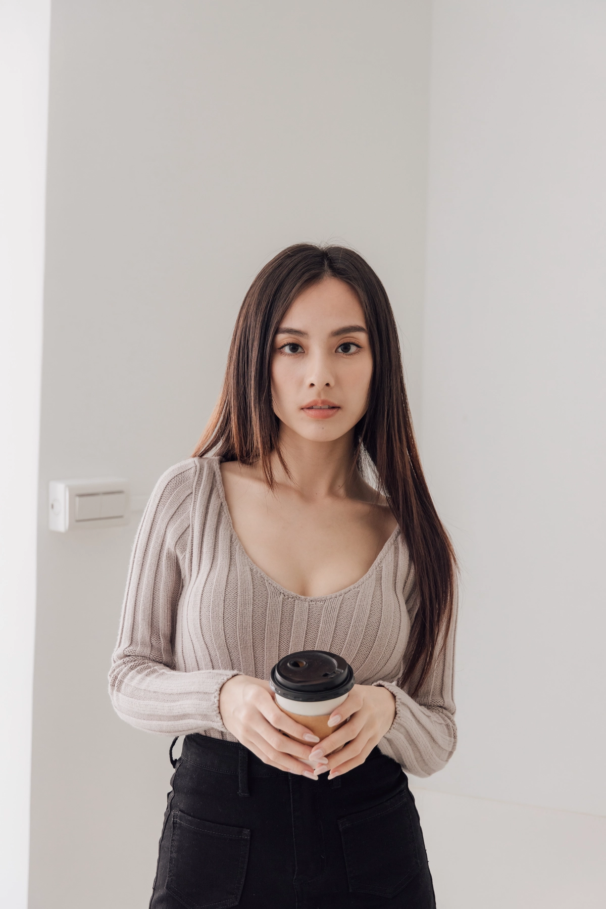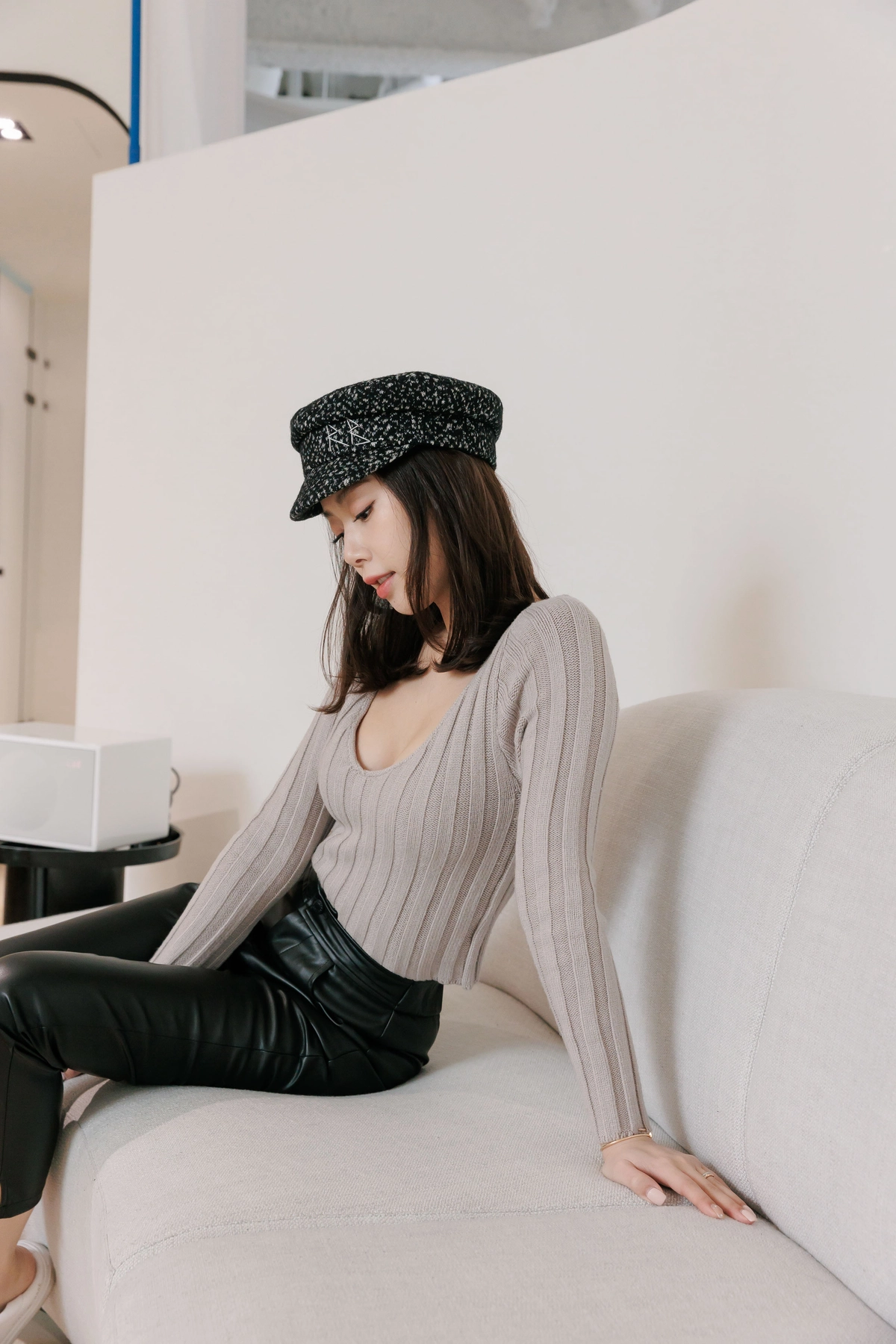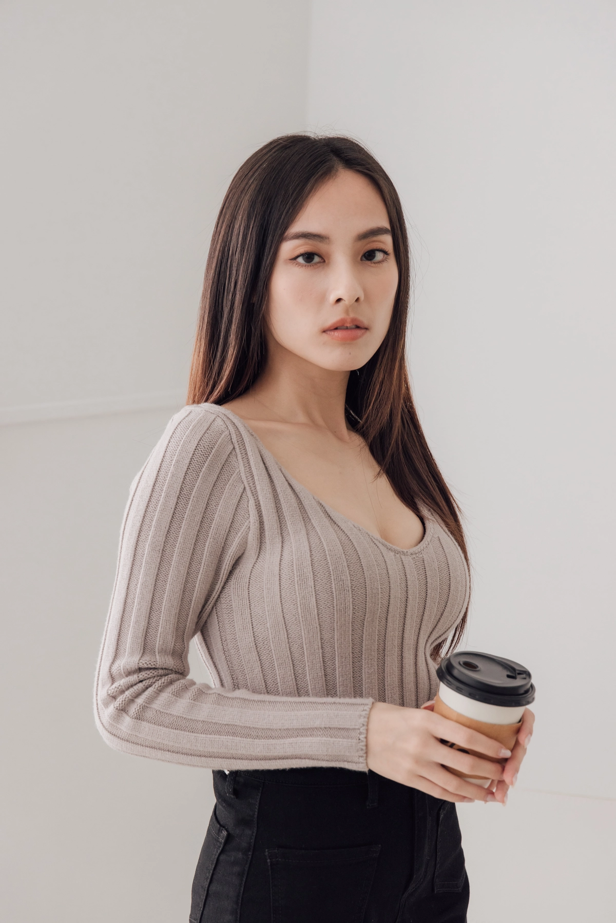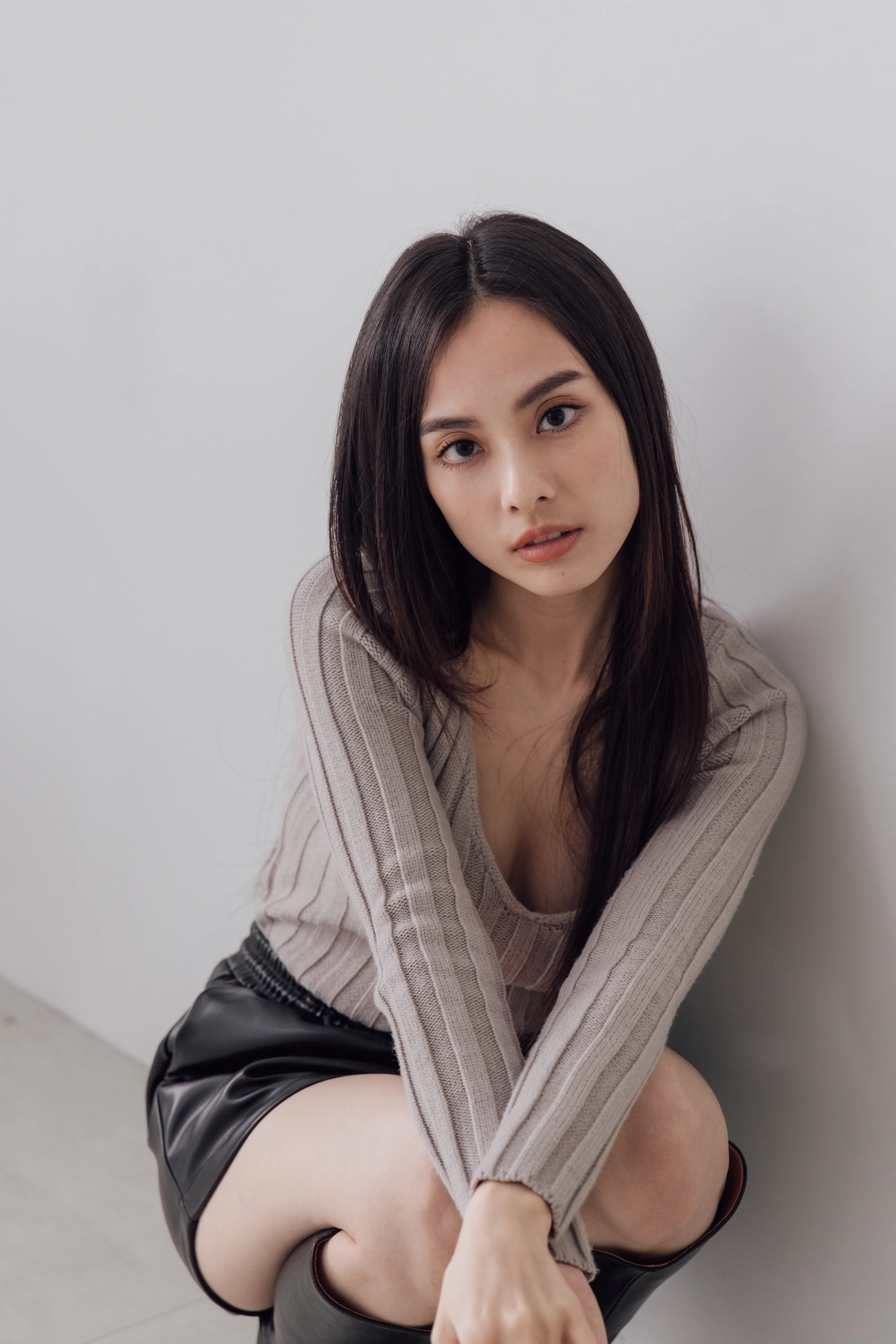 V領毛織Bra Top-灰