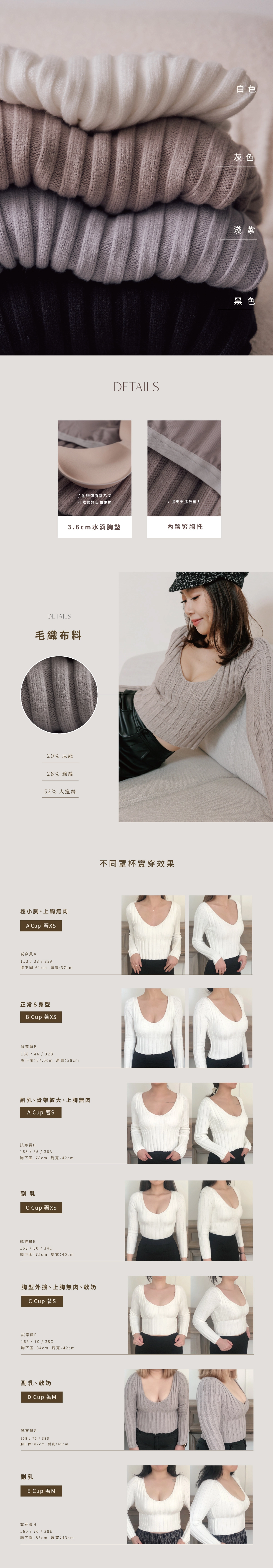 試穿員 身高/CM 體重/KG 罩杯 胸下圍/CM 穿著尺寸