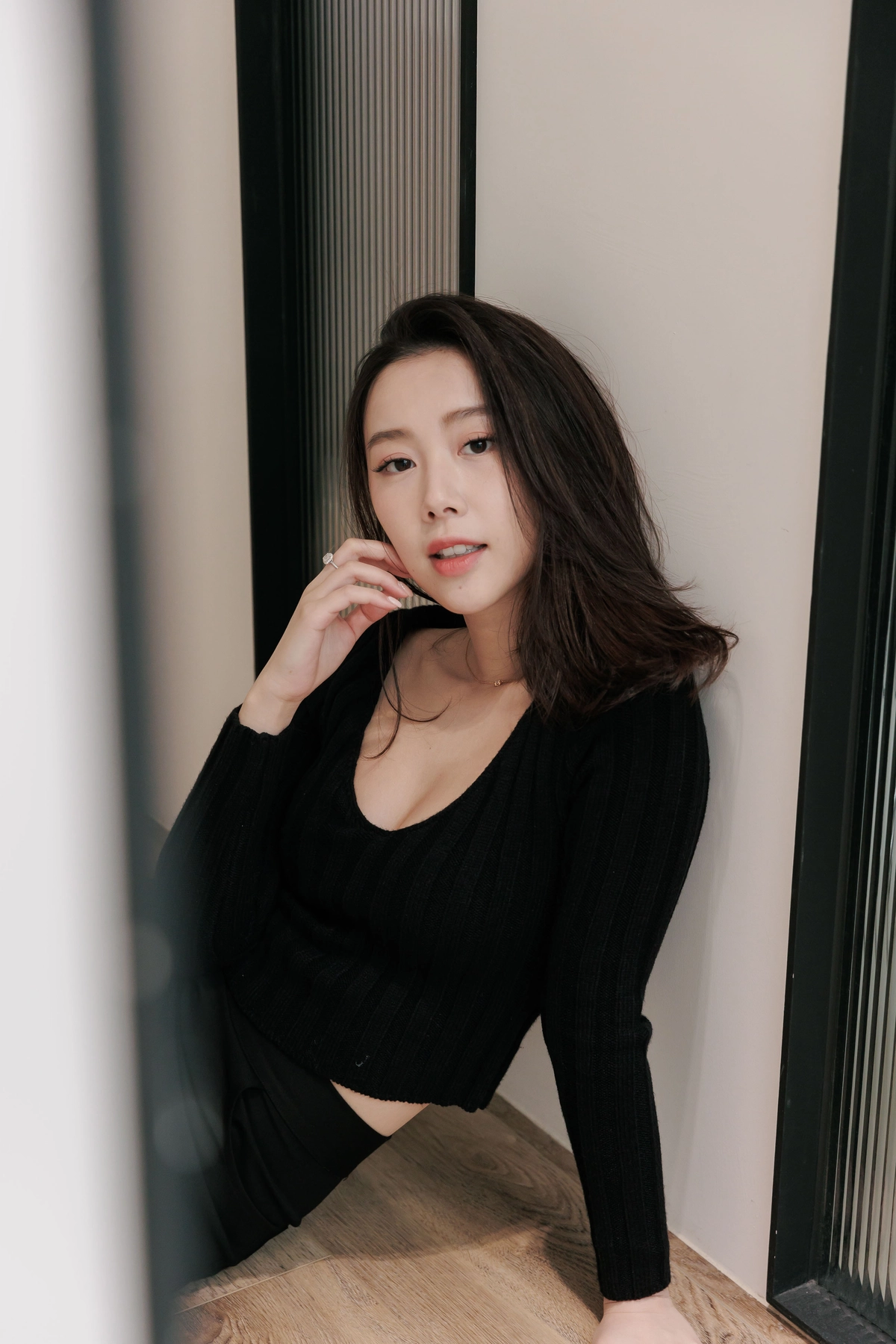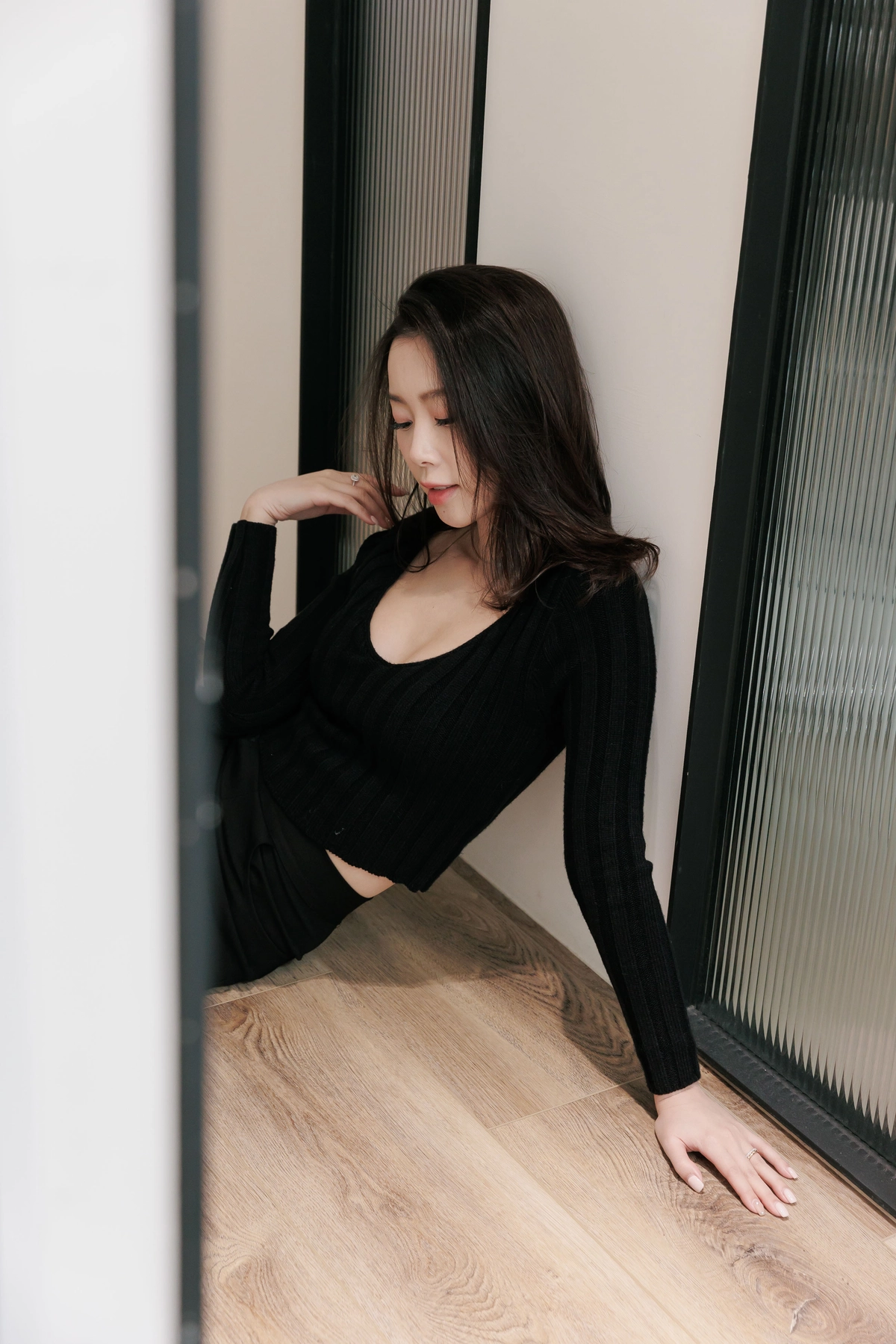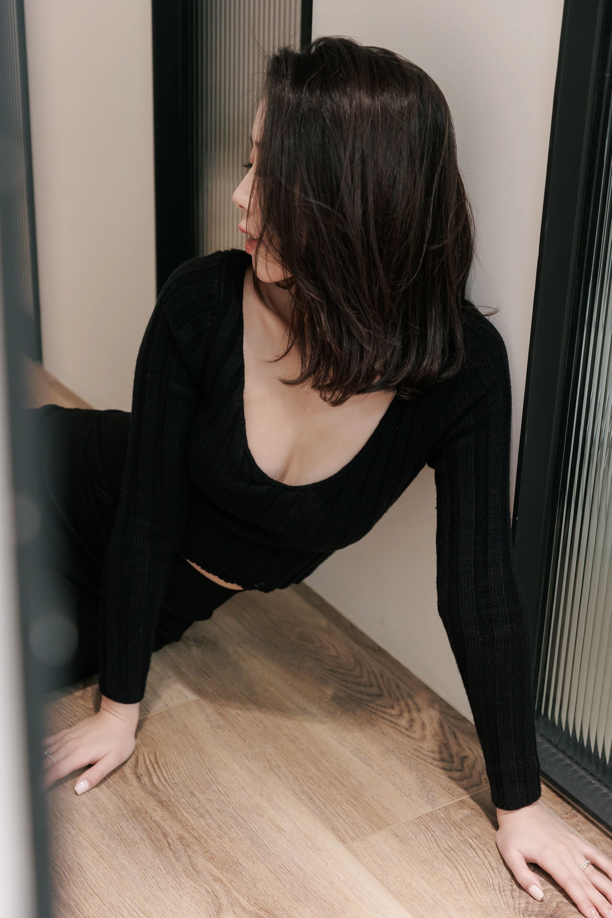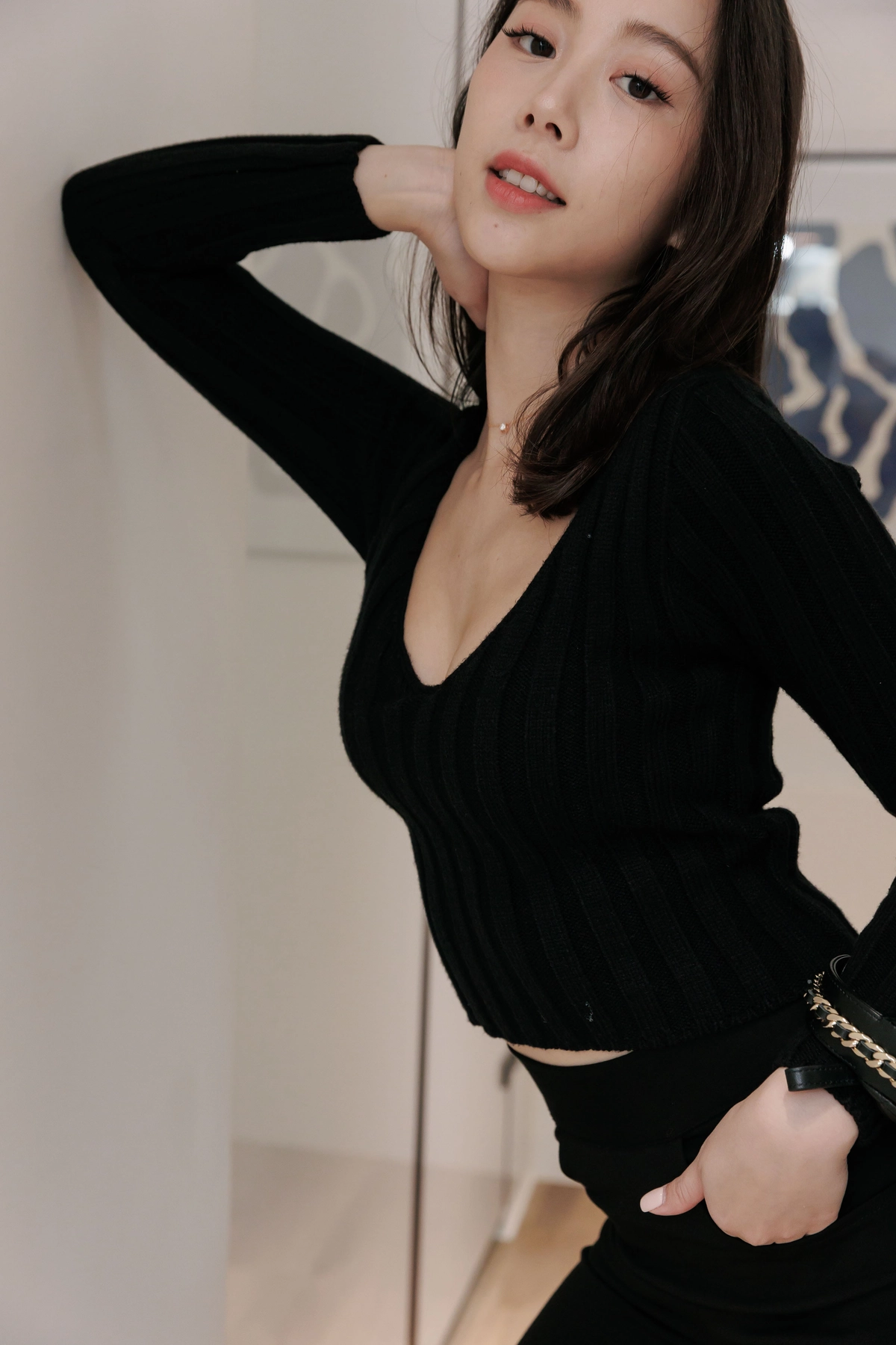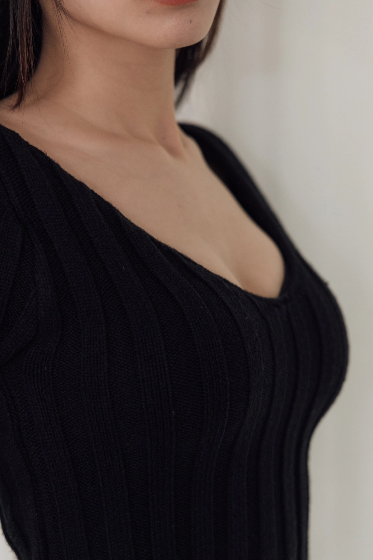 V領毛織Bra Top-黑