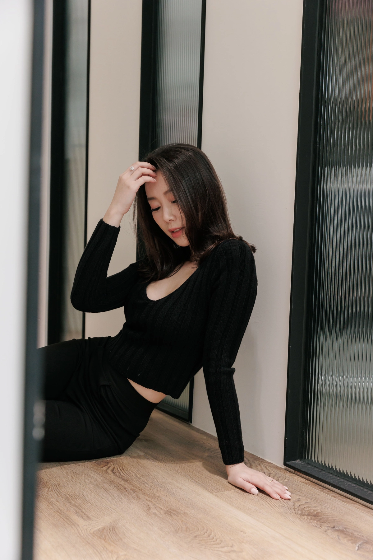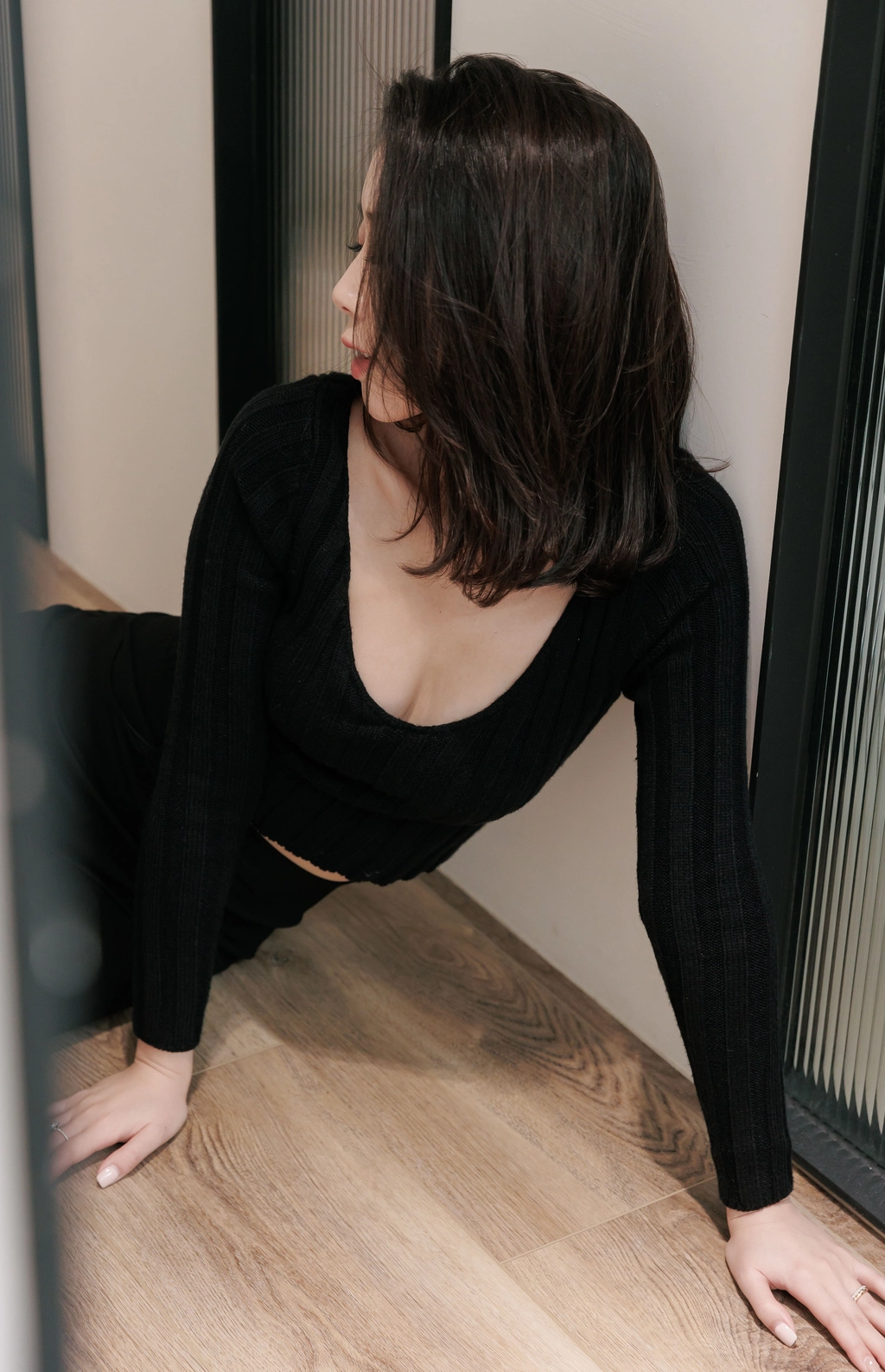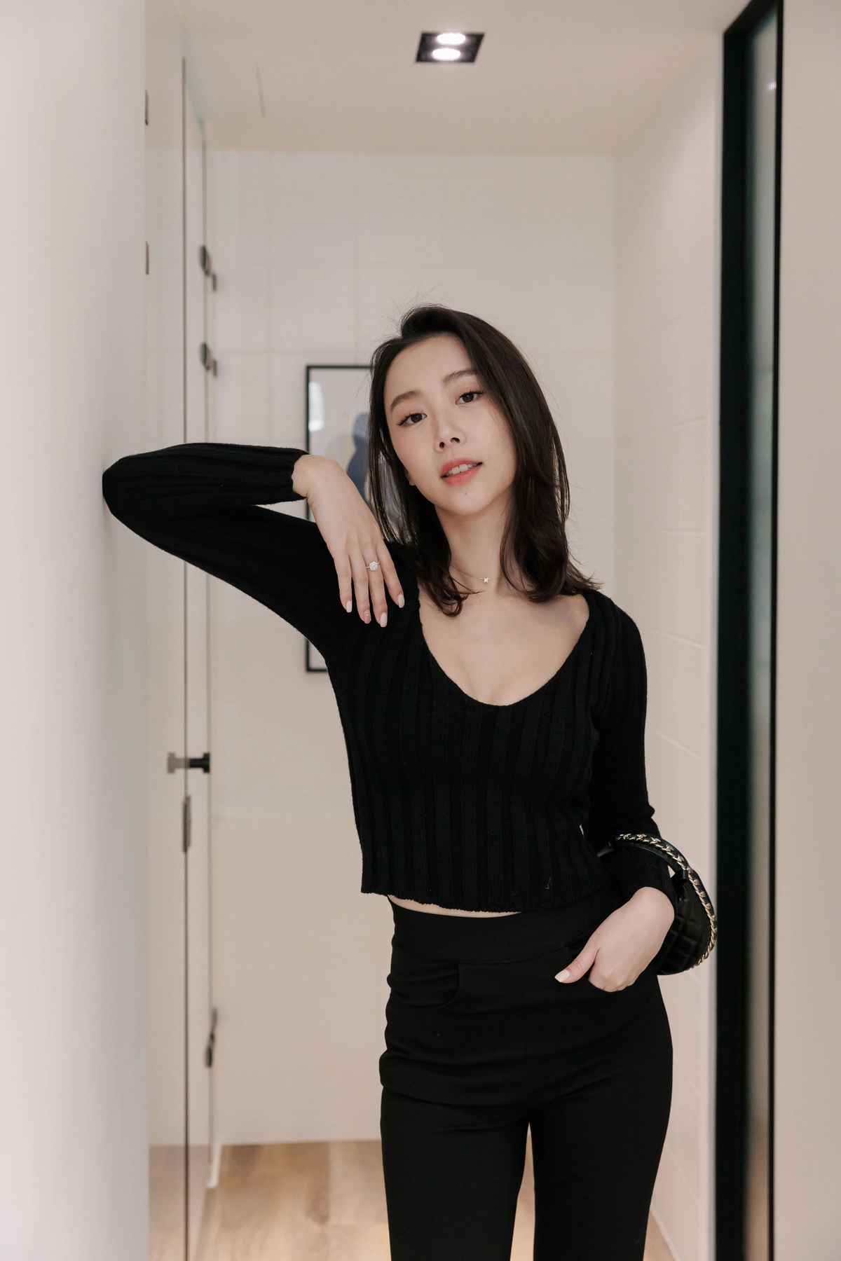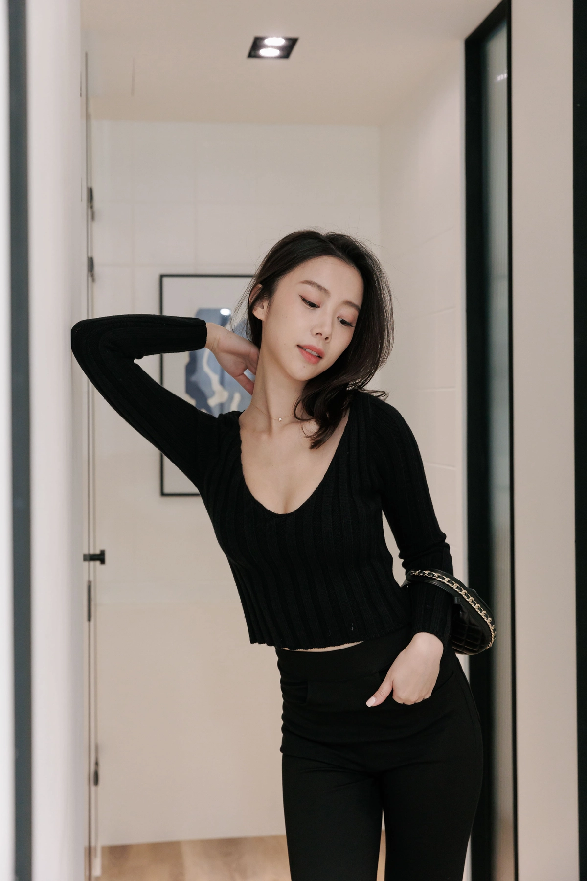 V領毛織Bra Top-黑