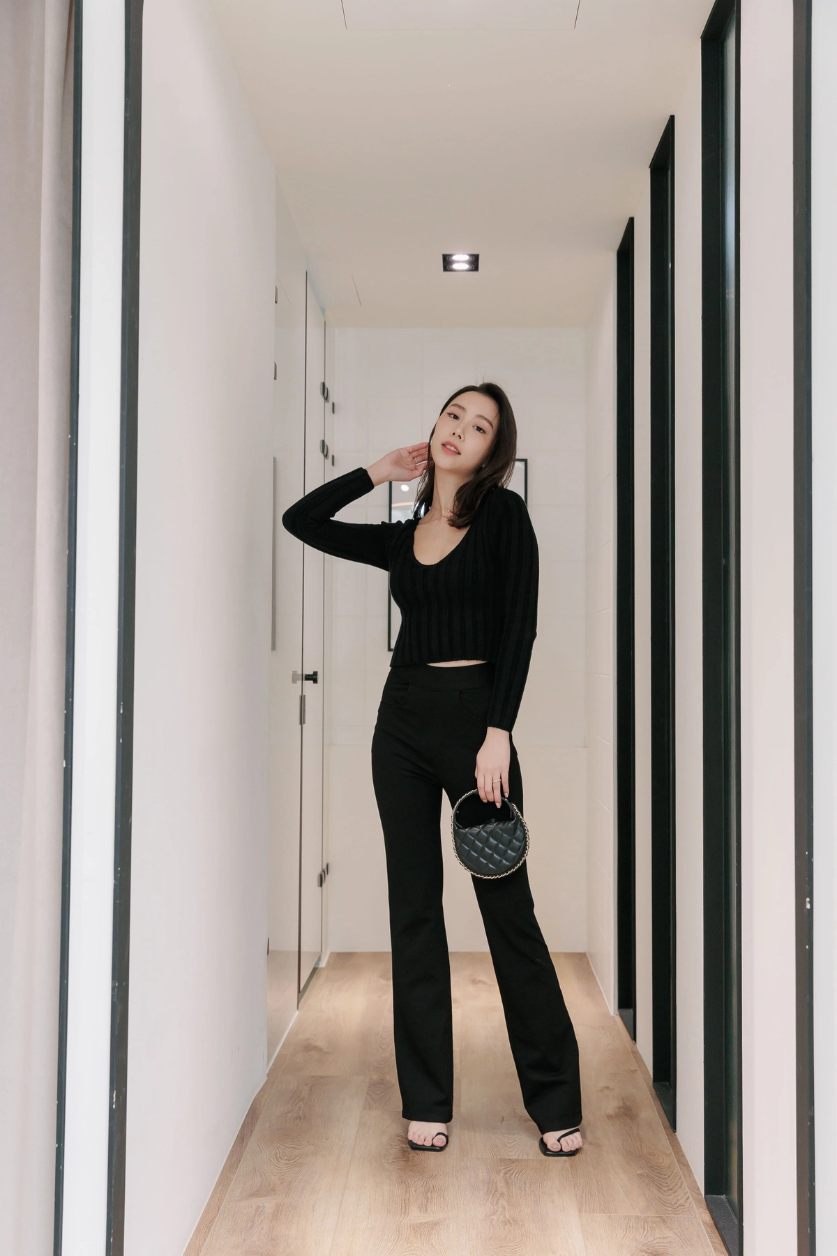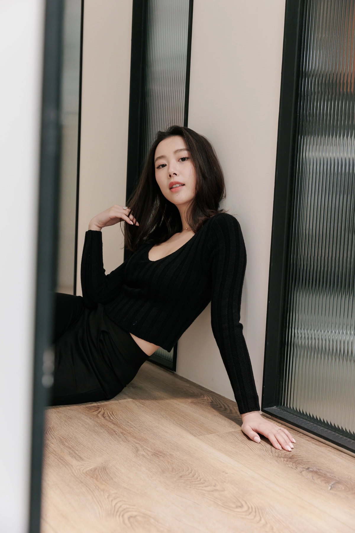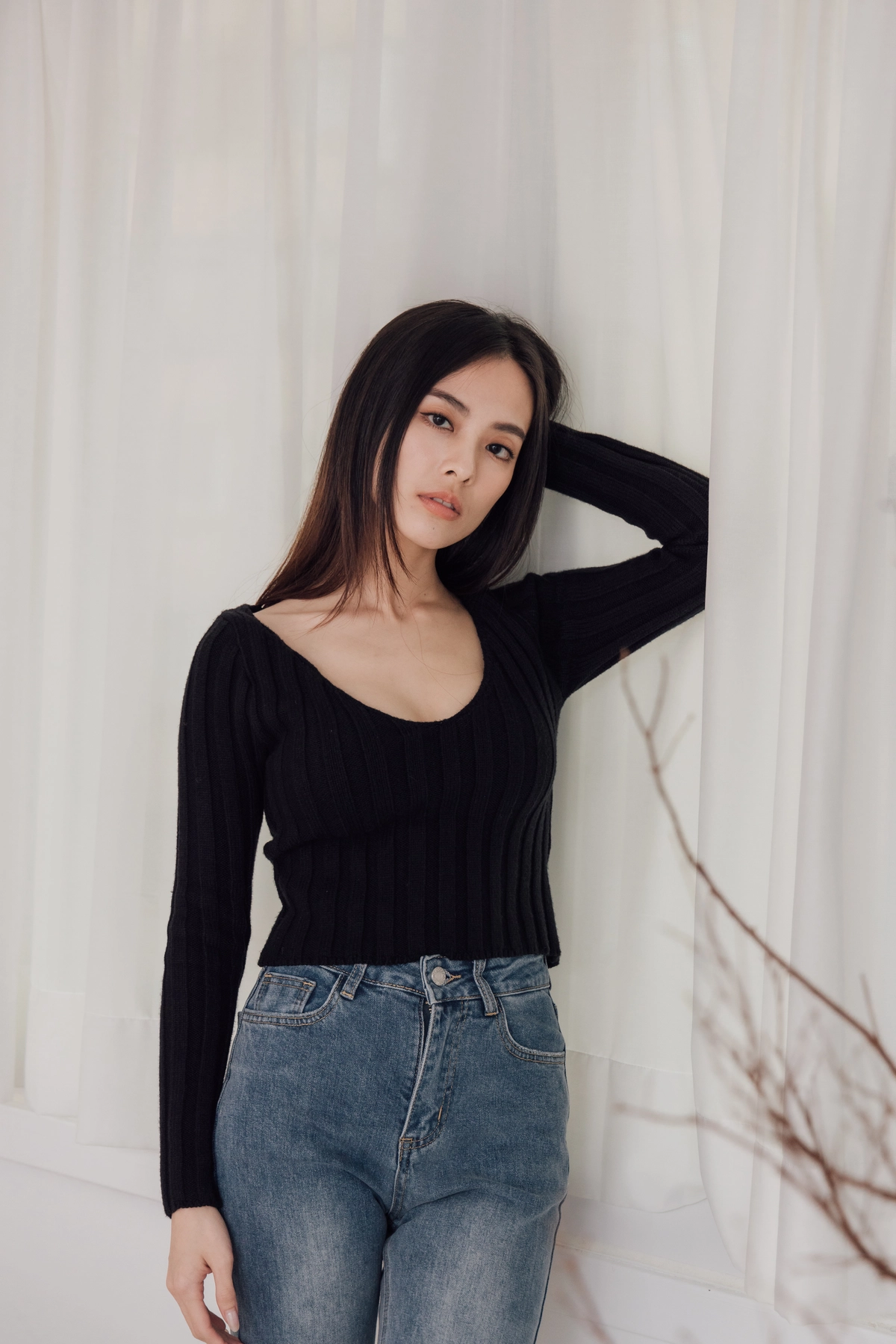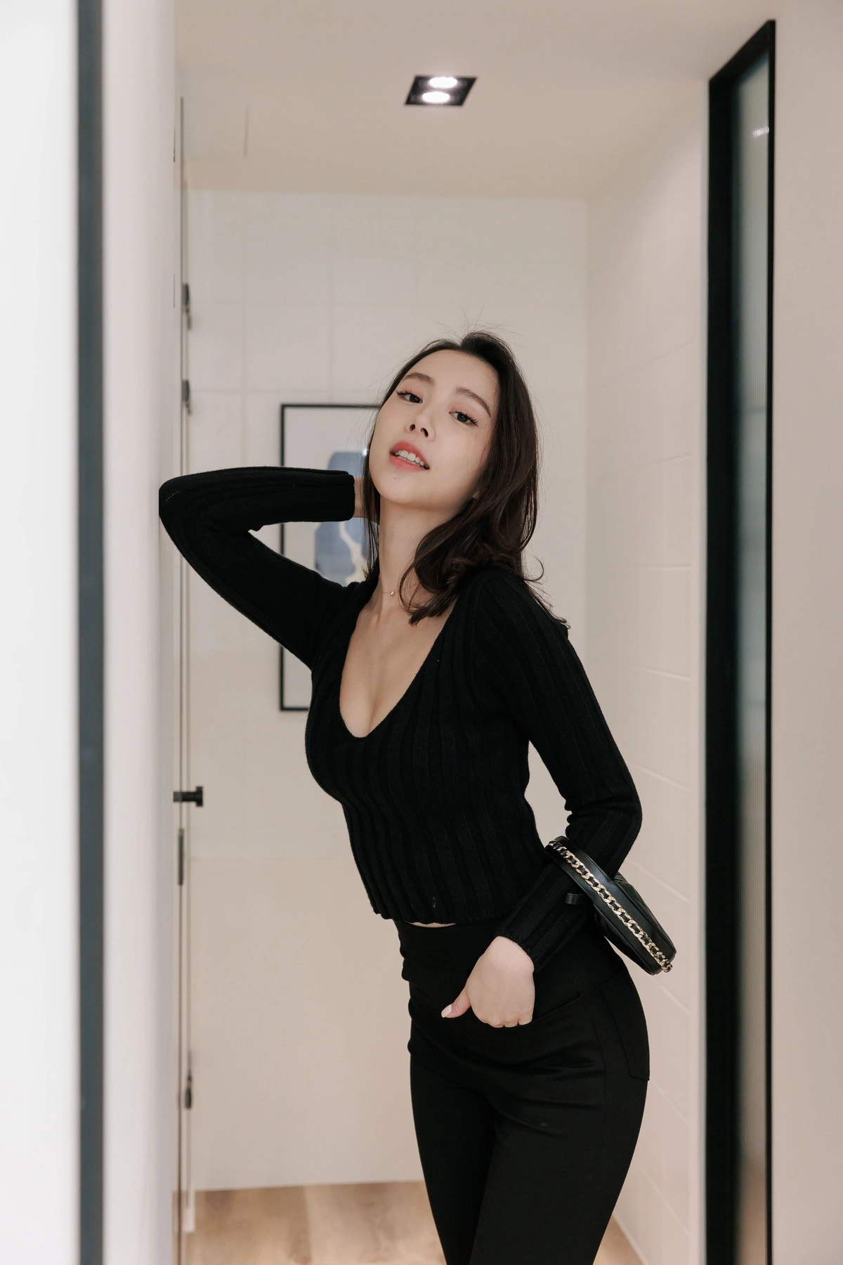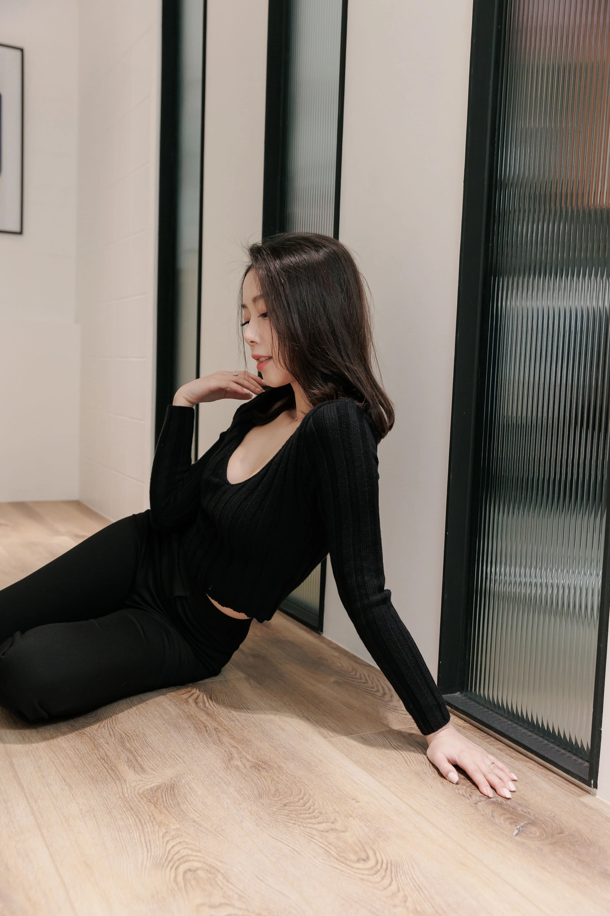 V領毛織Bra Top-黑