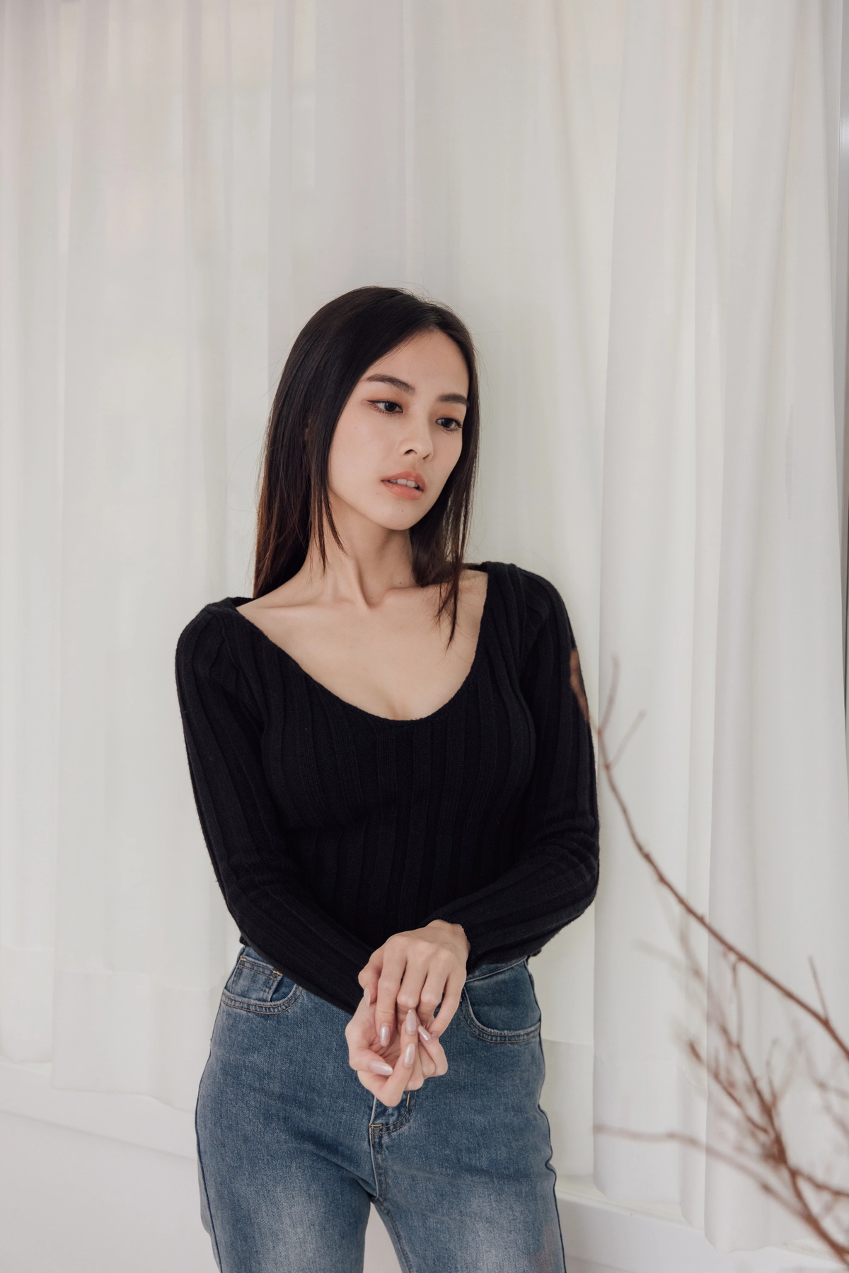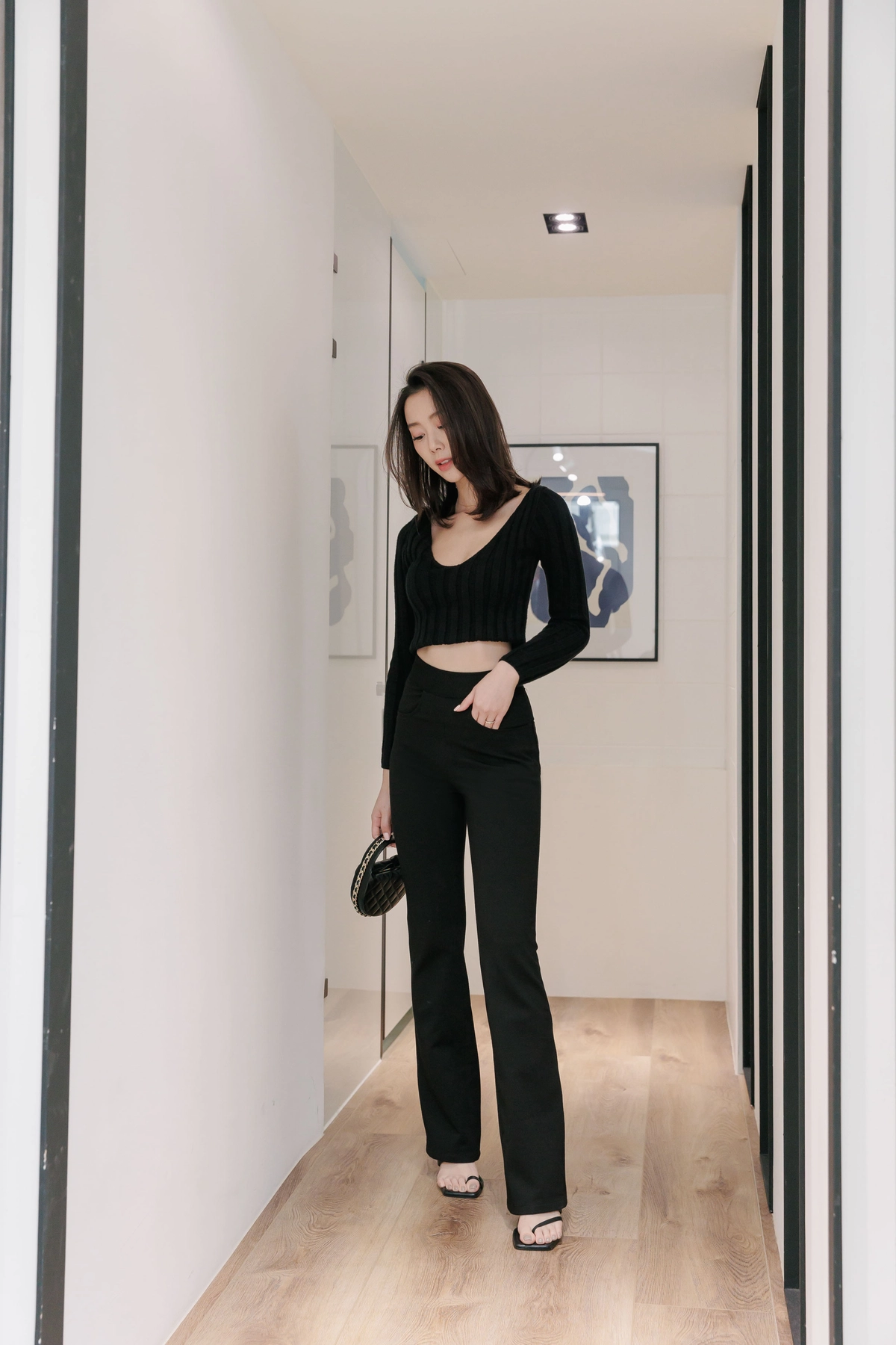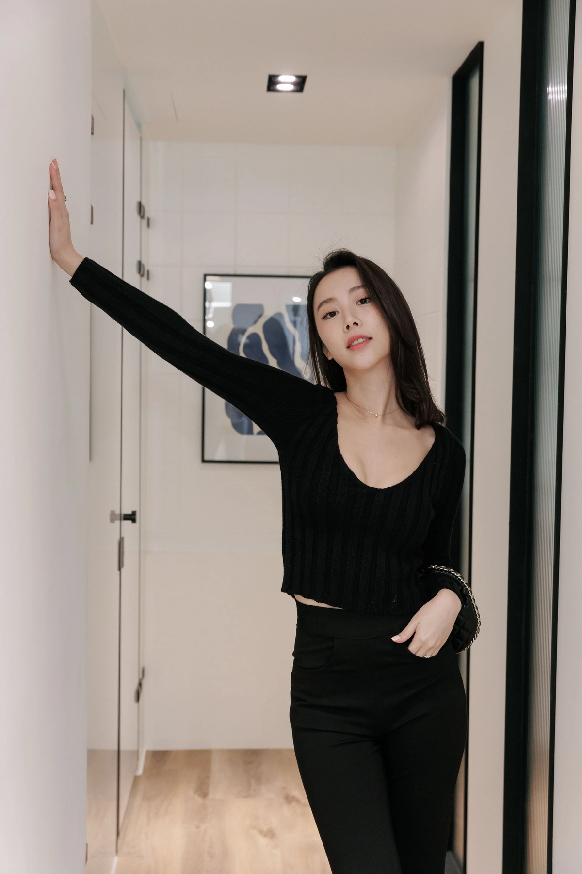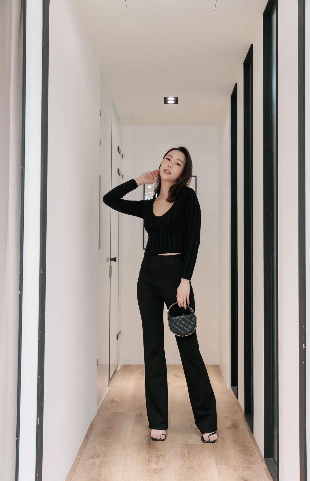 V領毛織Bra Top-黑