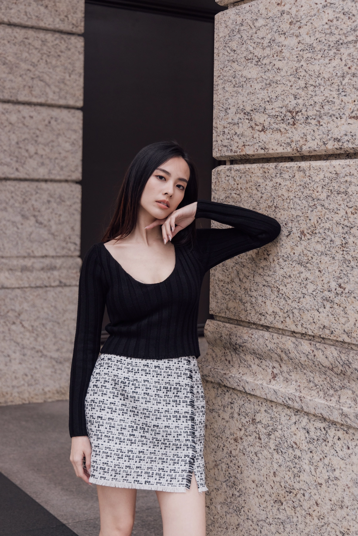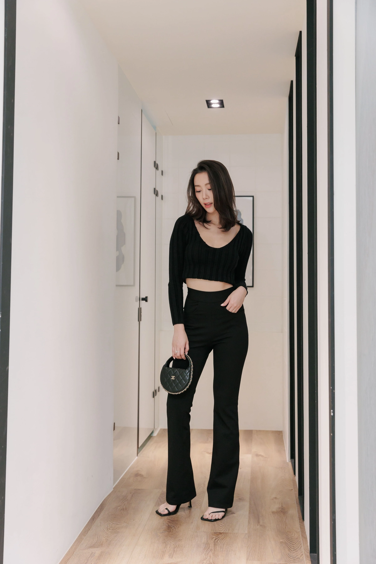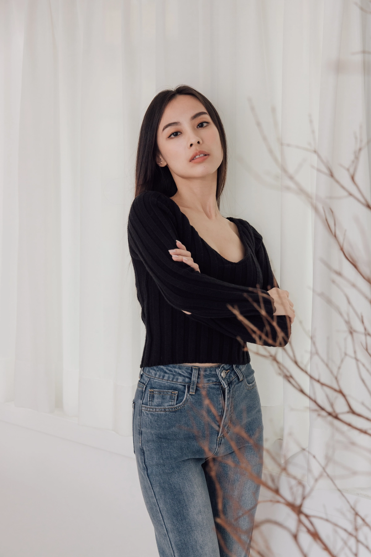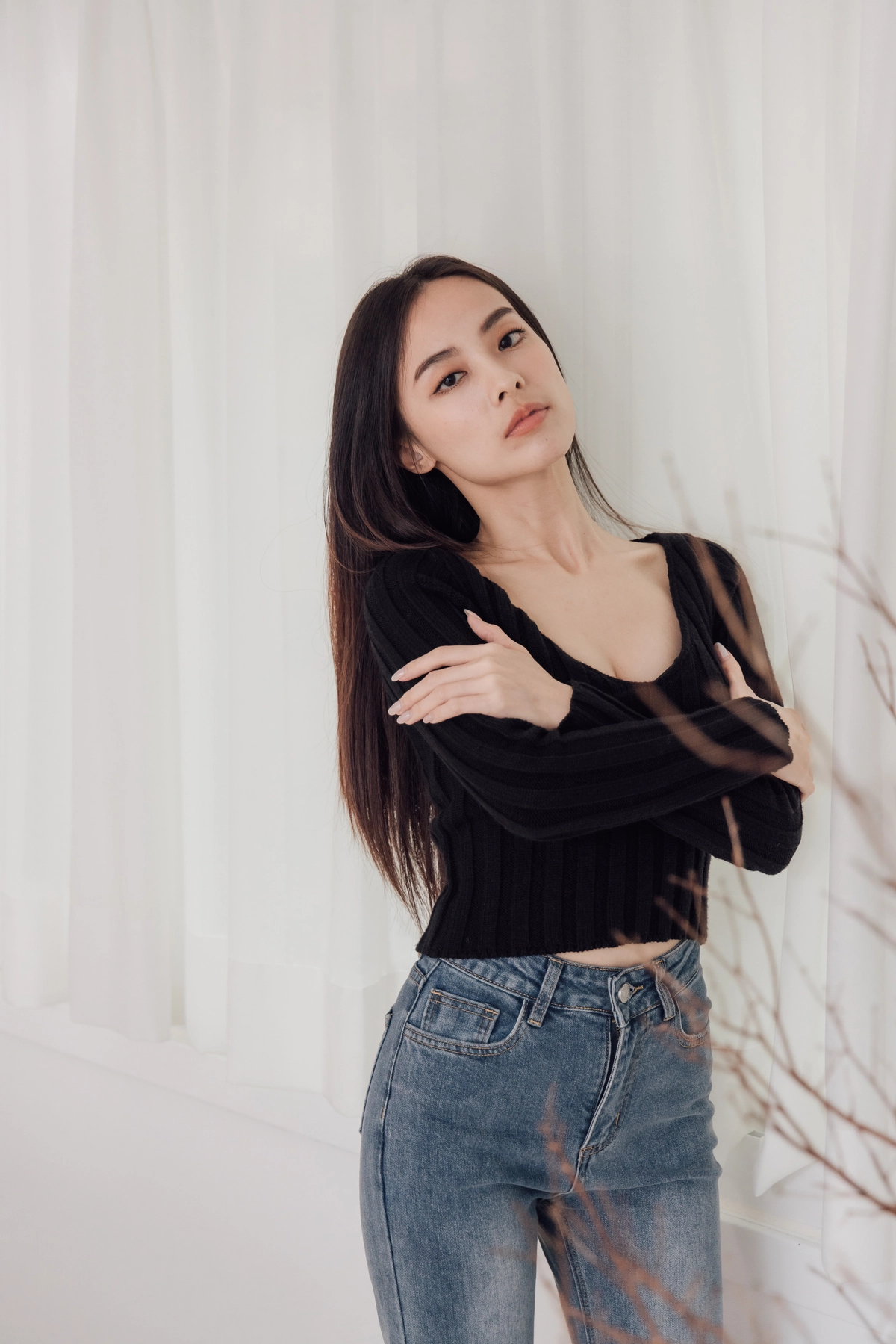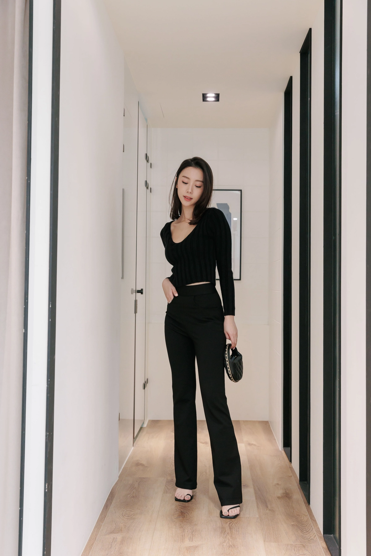 V領毛織Bra Top-黑