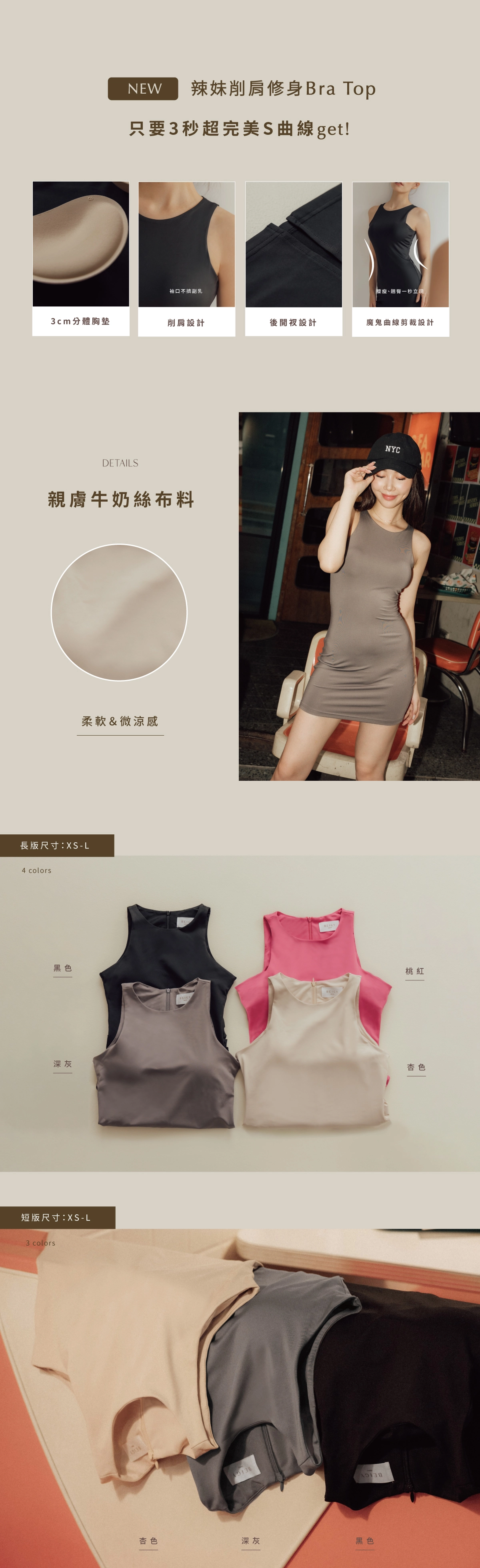 長版:黑/深灰/桃紅/杏 共四色
