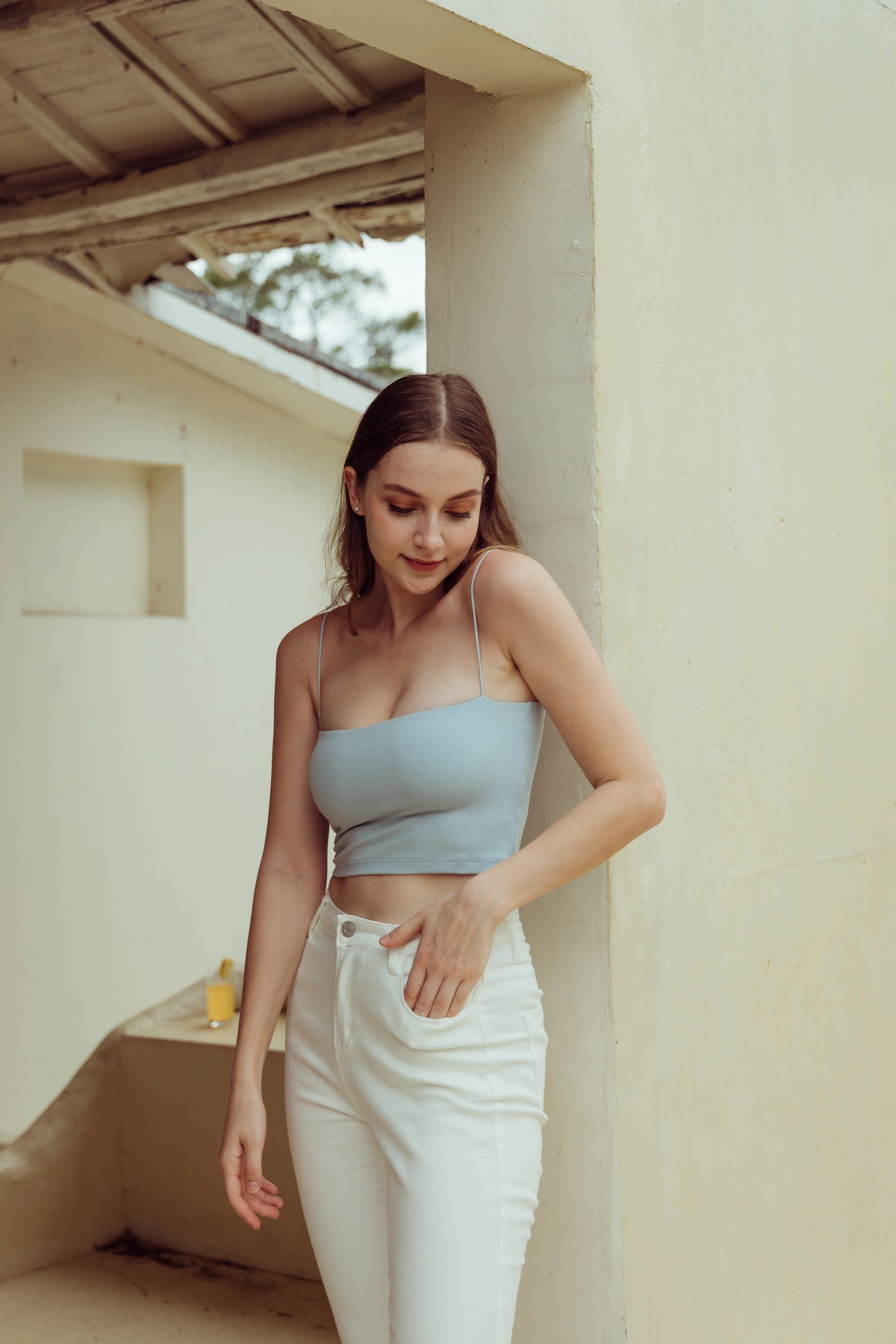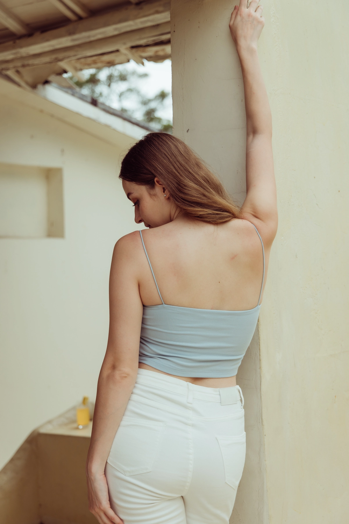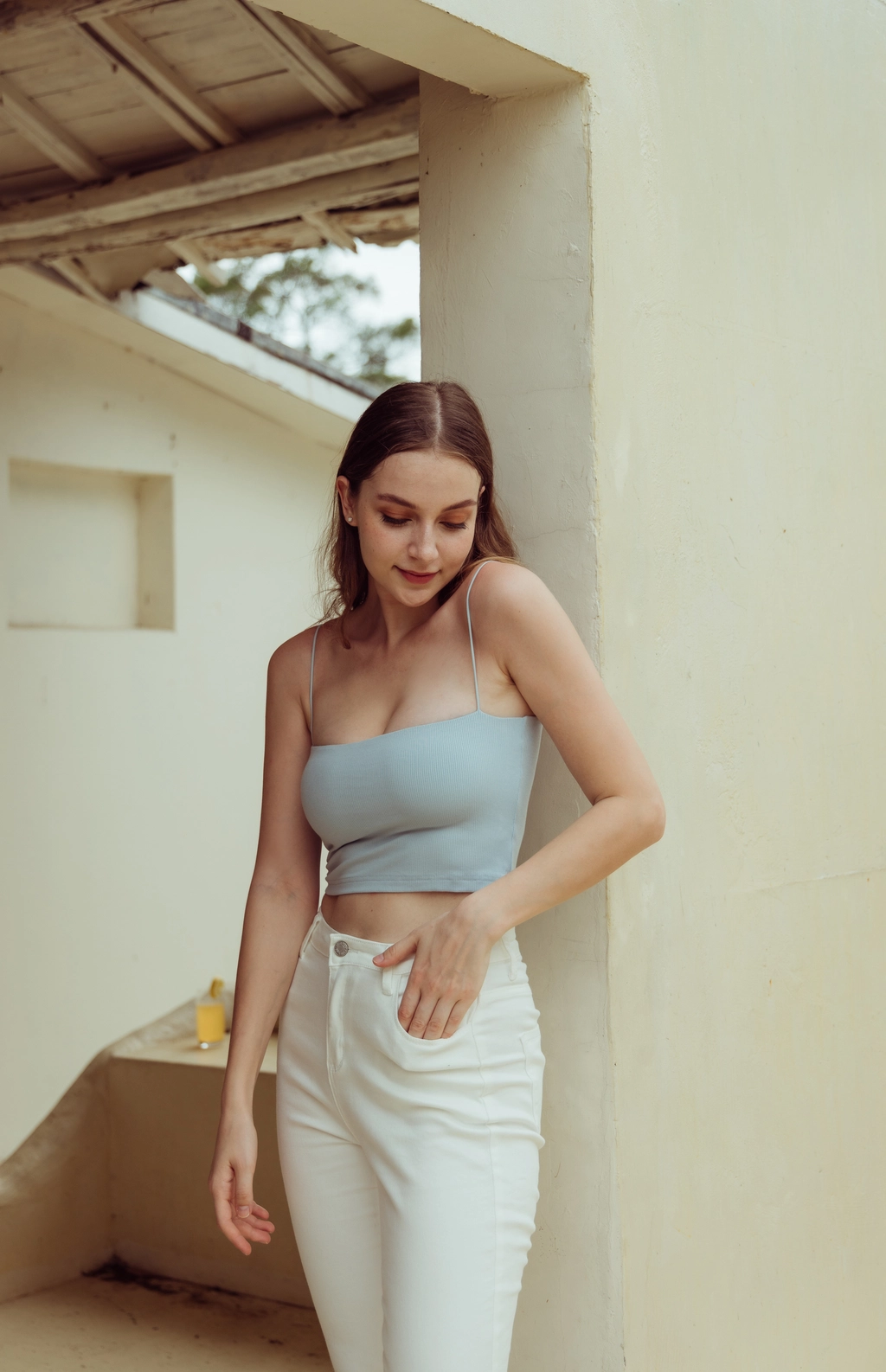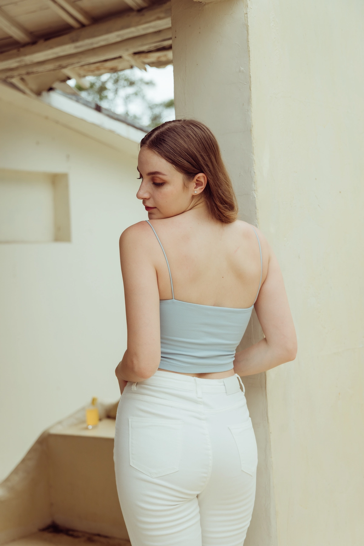 極細肩坑條平口Bra Top-寶寶藍